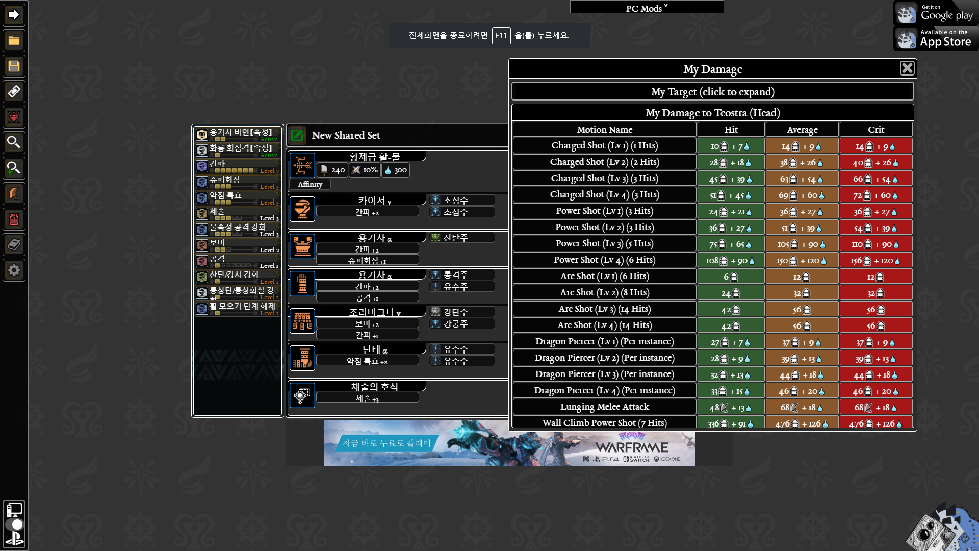 황제금 물활은 회심격이 기본 내장>기존의 리오 머리, 레우스 가슴 대신 다른 방어구로 슬롯과 스킬을 챙길 수 있게 되었습니다. 또 기본 회심이 10%나 되어서 회심 100%에 집착하지 않는다면 생존스킬들을 더 챙길 수 있게 되었죠.(회피성능, 회피거리, 체력증가, 버섯애호가 2~3 등). 마지막으로 속성해방이 필요 없어졌죠.