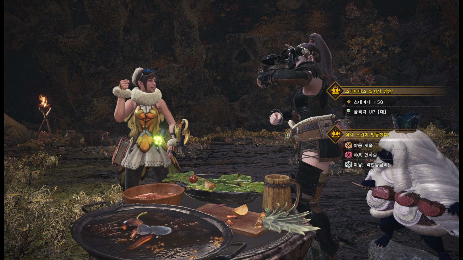 두번째 시도 때는 식사권을 써서 쌍검용 식사(야옹체술+공격력 대)를 먹은 후에 퀘스트를 수주했습니다.