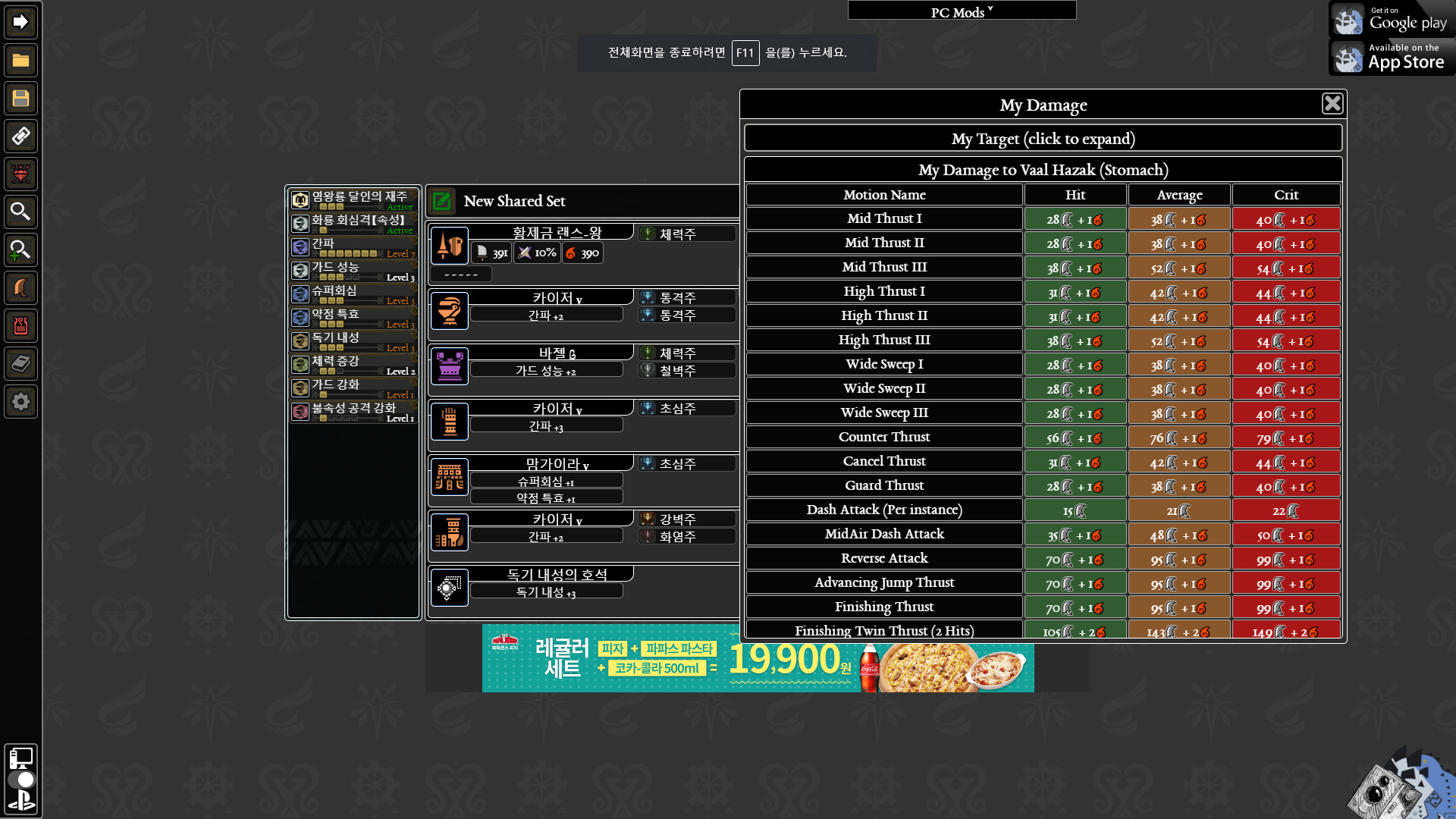물론 이 커스텀보다 더 강한 커스텀도 있습니다. 독기내성과 체력증강을 빼고 회심과 기초공격력, 슈퍼회심, 불속강을 더 챙길 수 있겠죠. 그렇지만 저는 극딜 커스텀보다는 현실적인(?) 커스텀이 좋습니다. 여기서 유틸을 포기한다고 하더라도 슈회당 2~6이상 데미지 증가, 공격력을 4로 채우면 3이나 5정도 올라가서 평타 증가량은 10이하일겁니다.