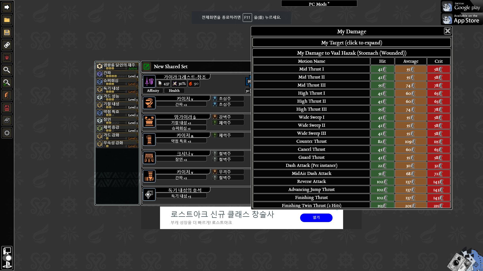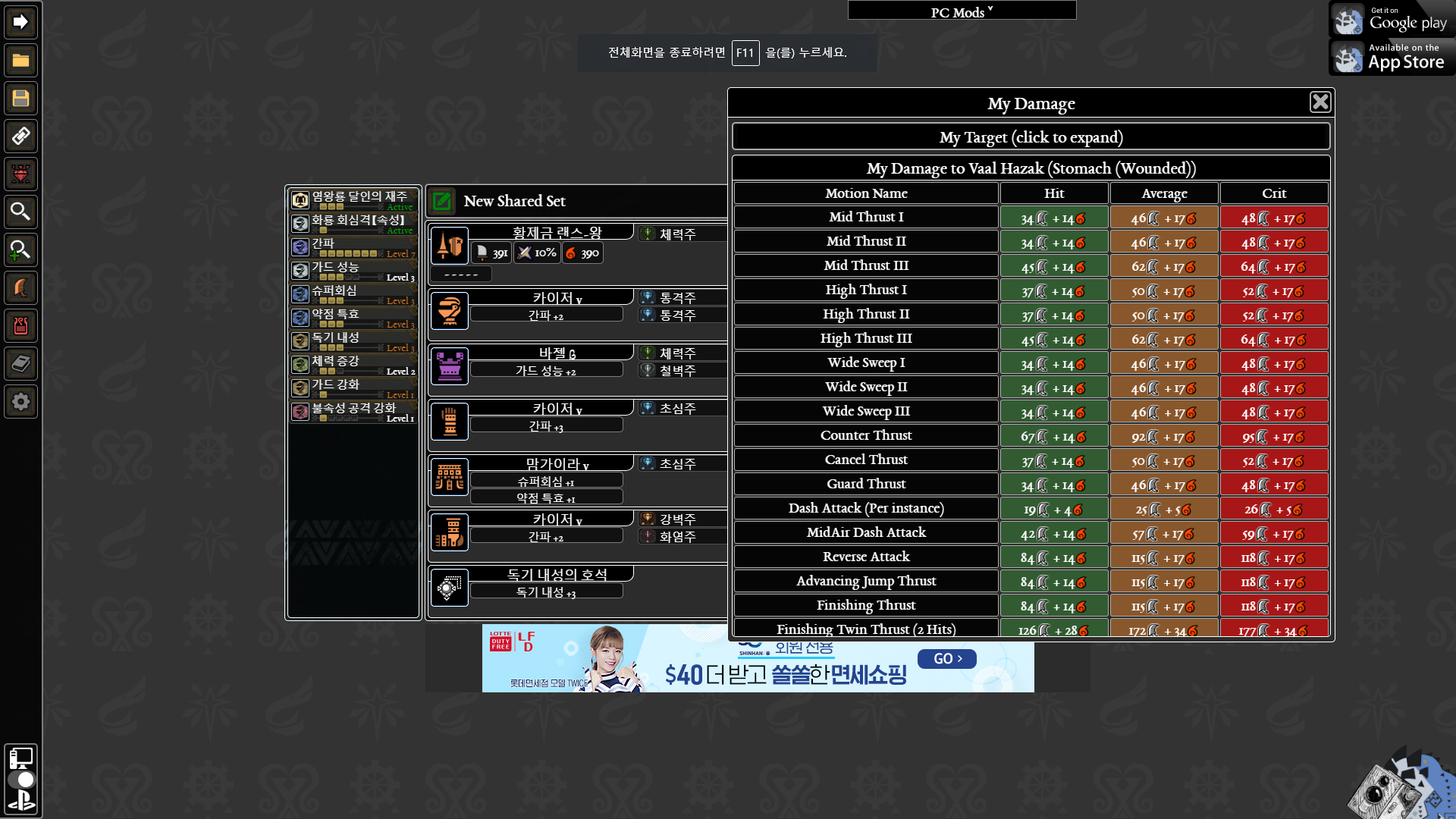 참조, 왕랜스 체력주만 뺀 세팅으로 각각 4판씩 더 해봤지만 커스텀이고 뭐고 가장 중요한건 운빨입니다.