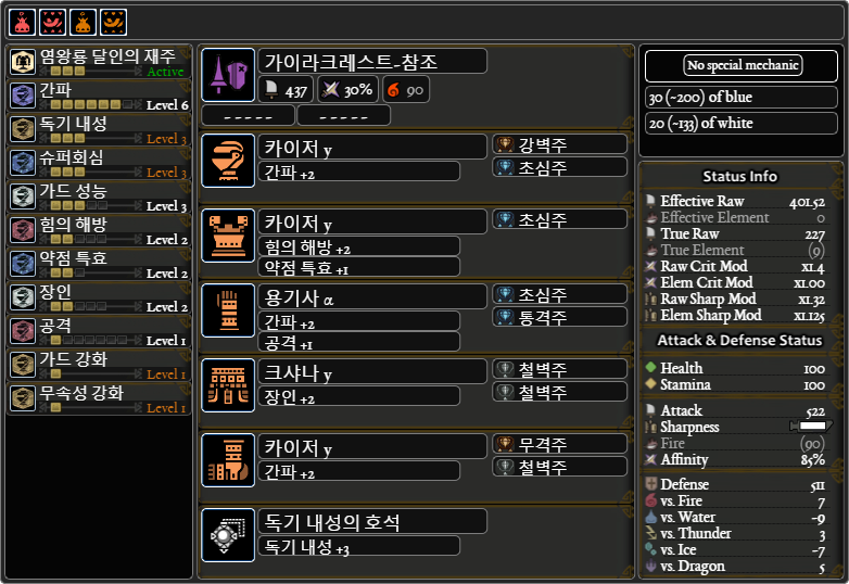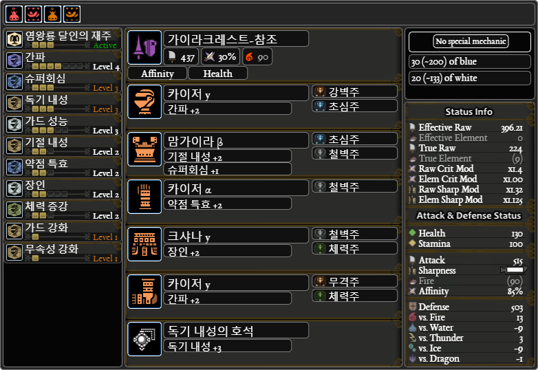 ###일반적으로는 쓰이는 가성3, 가드강화1, 독기내성3, 체력주2를 추가한 커스텀 비교짤을 추가했습니다.