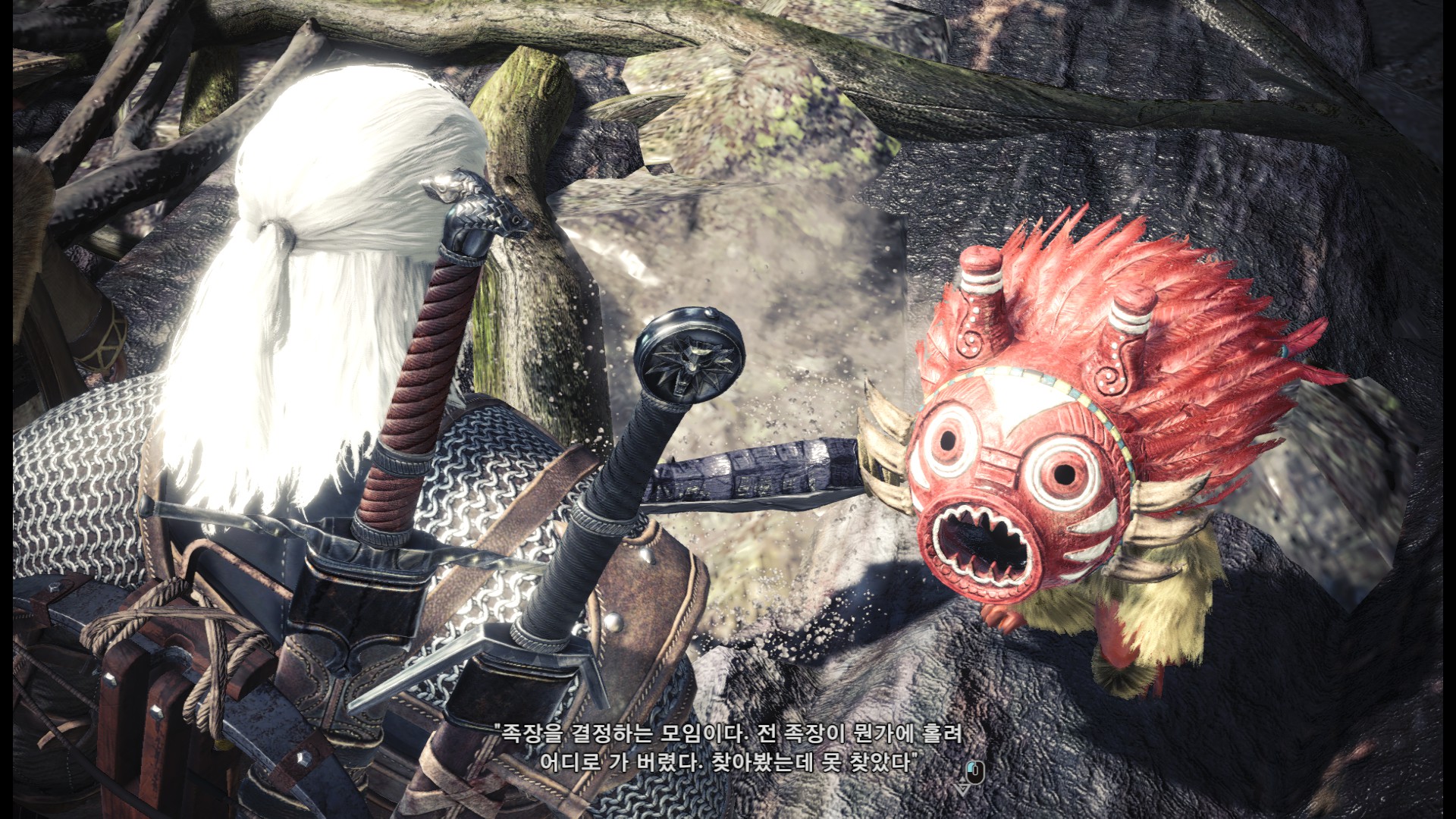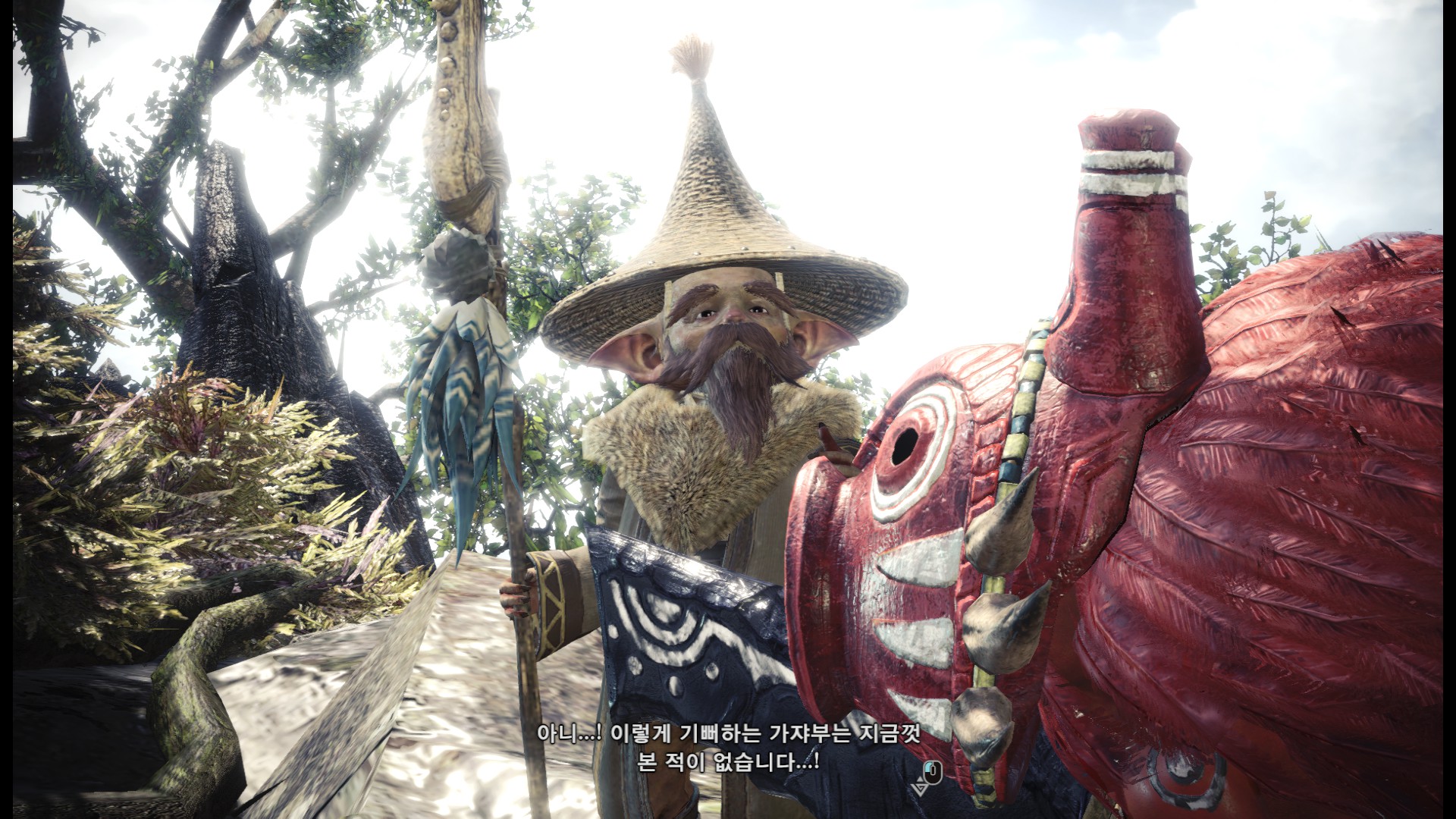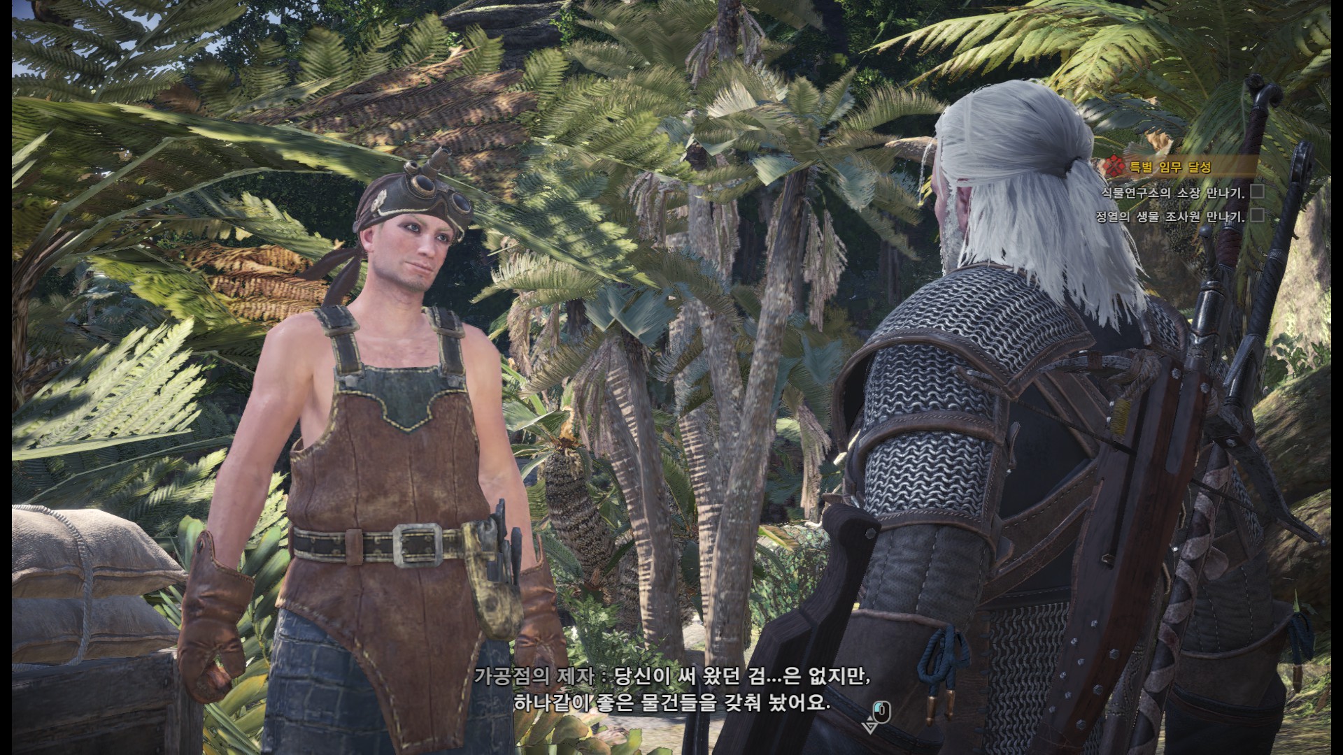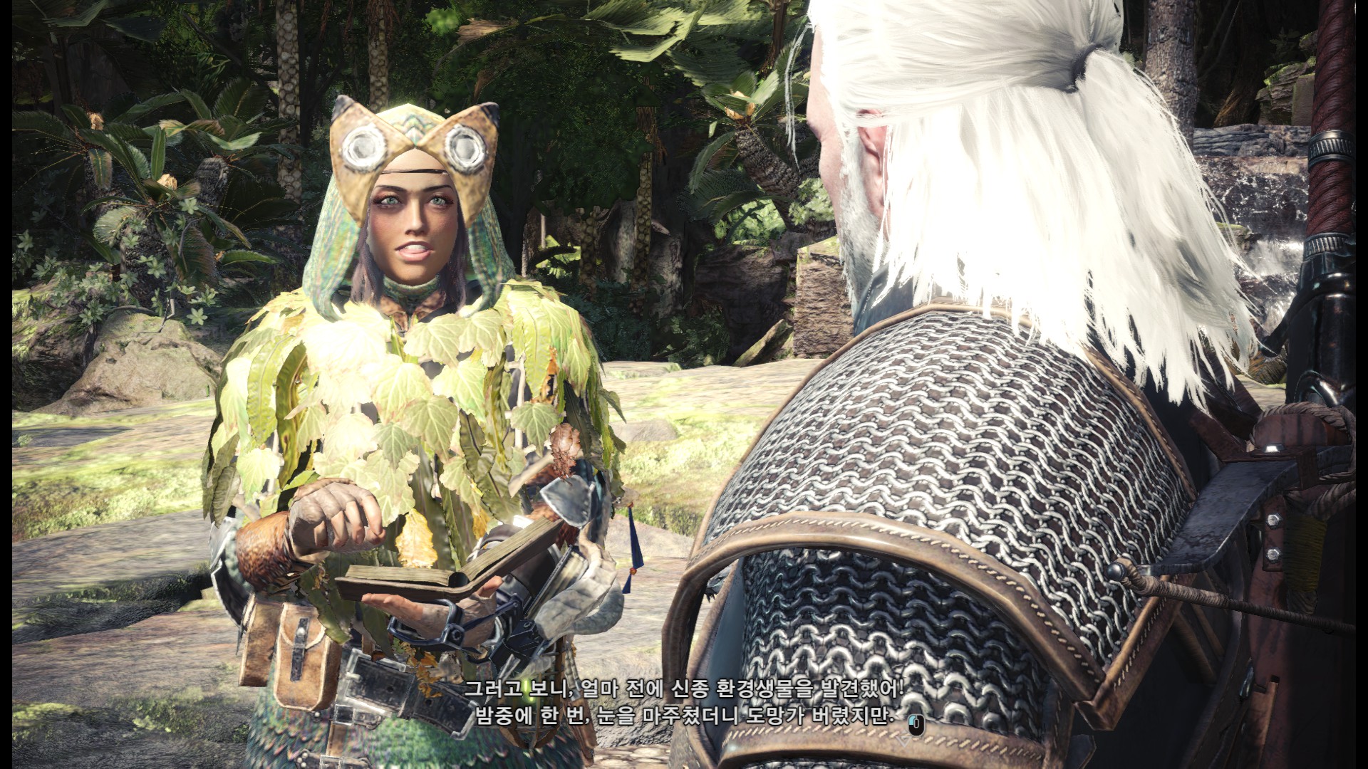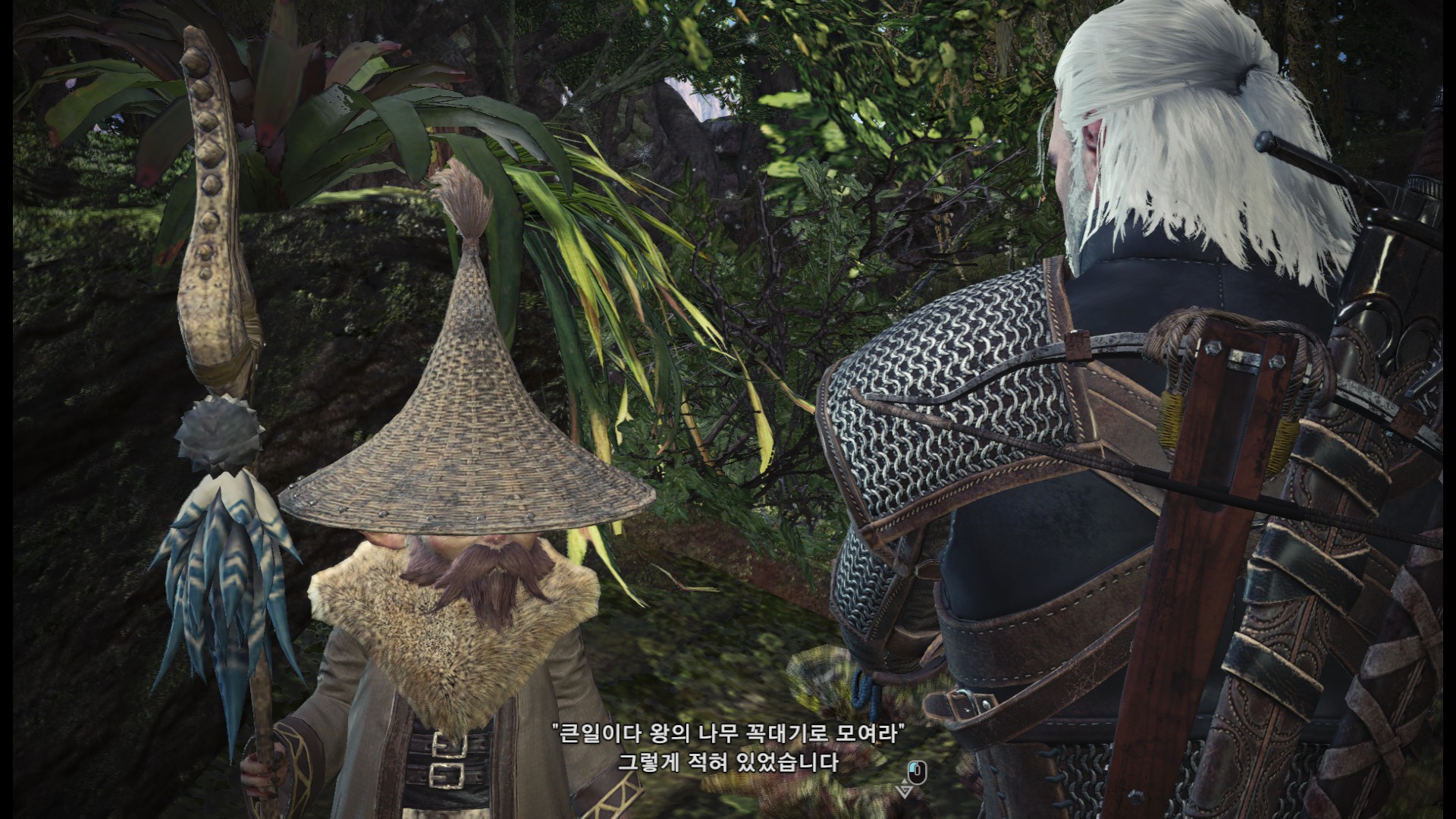 표식을 다 조사한 후에는 올라가서 수인족과 대화를 합니다.