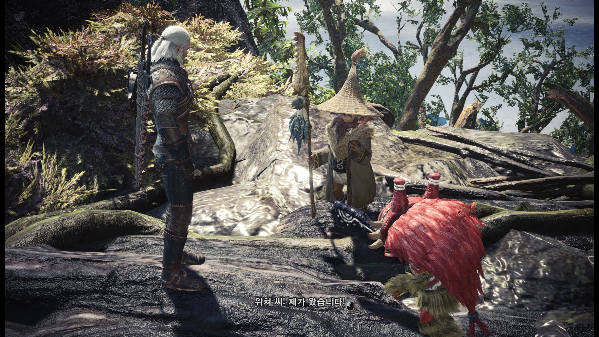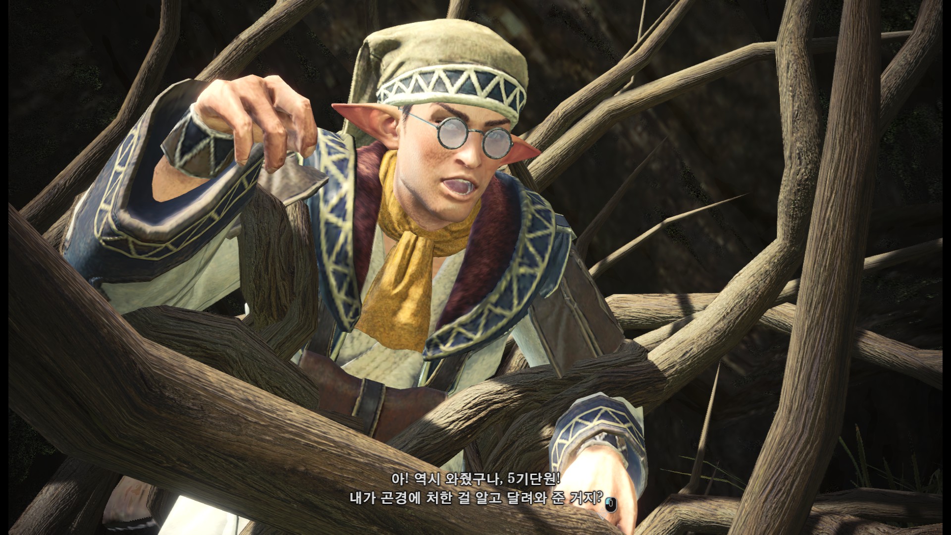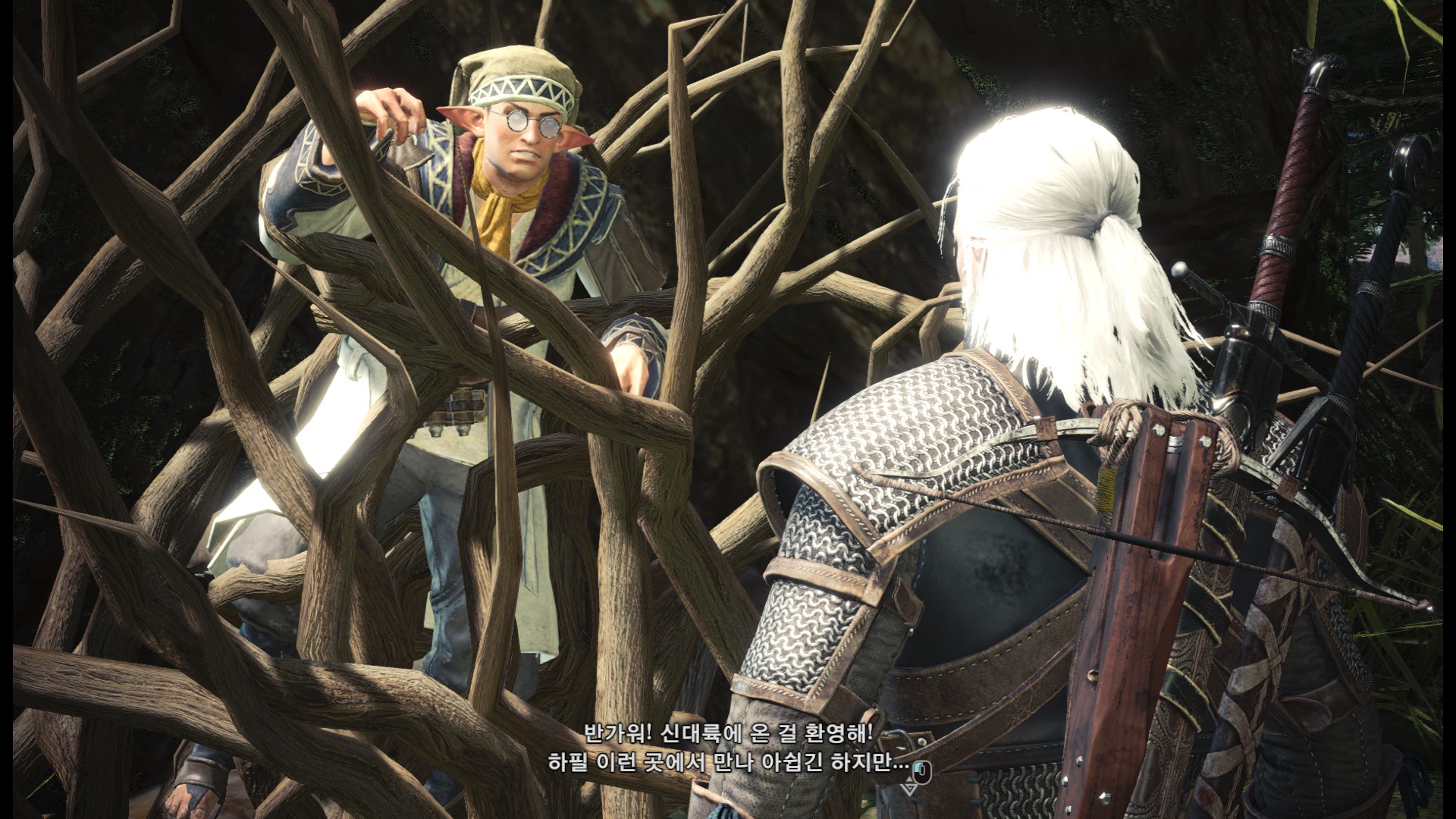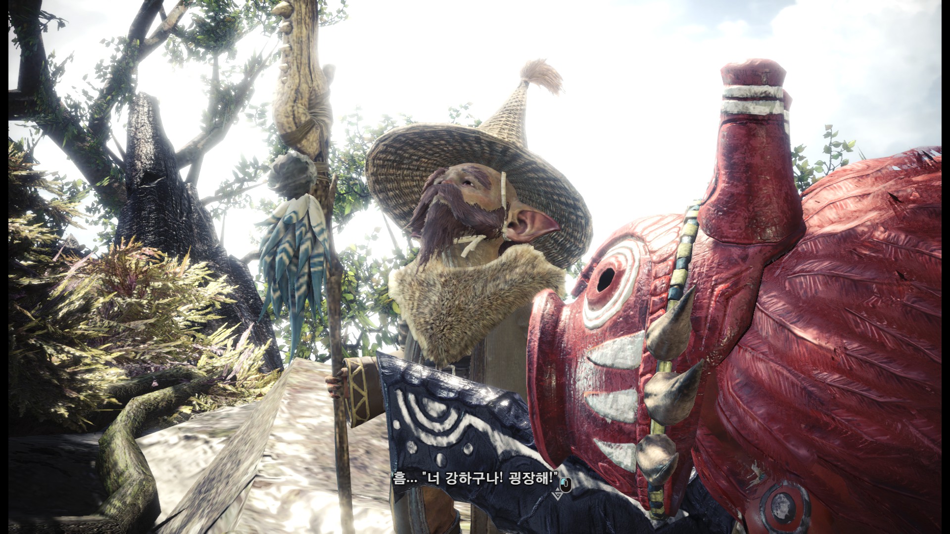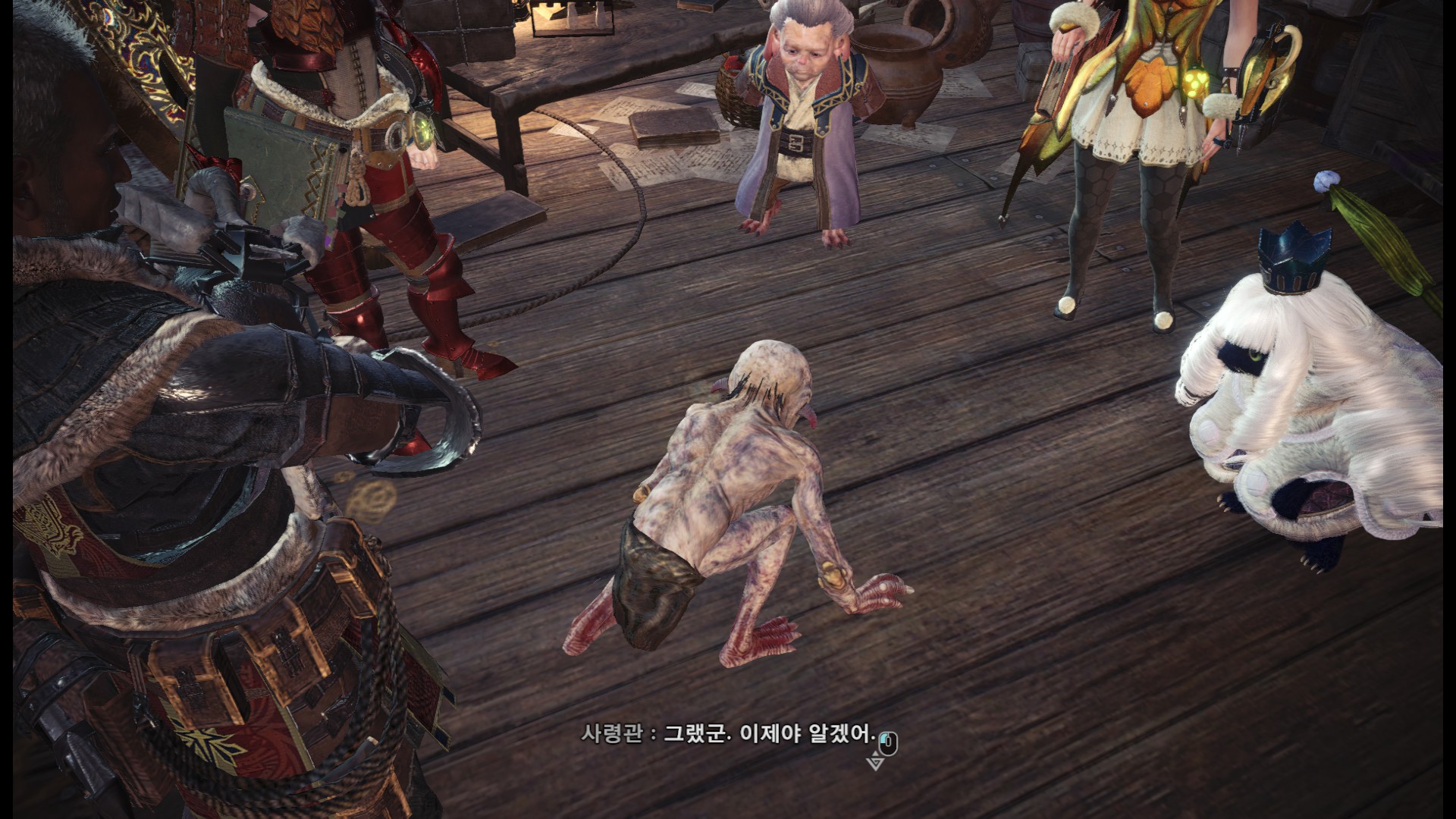 표식을 다 조사한 후에는 올라가서 수인족과 대화를 합니다.