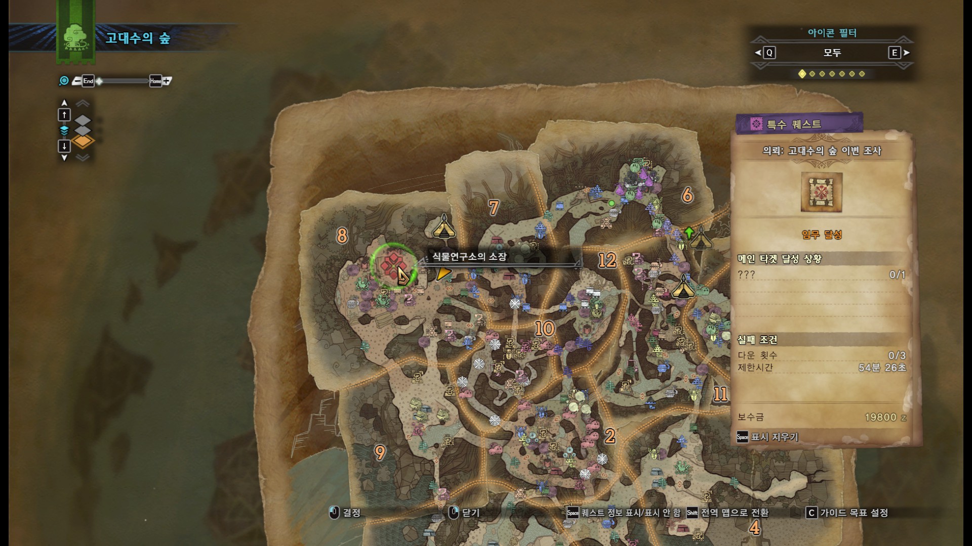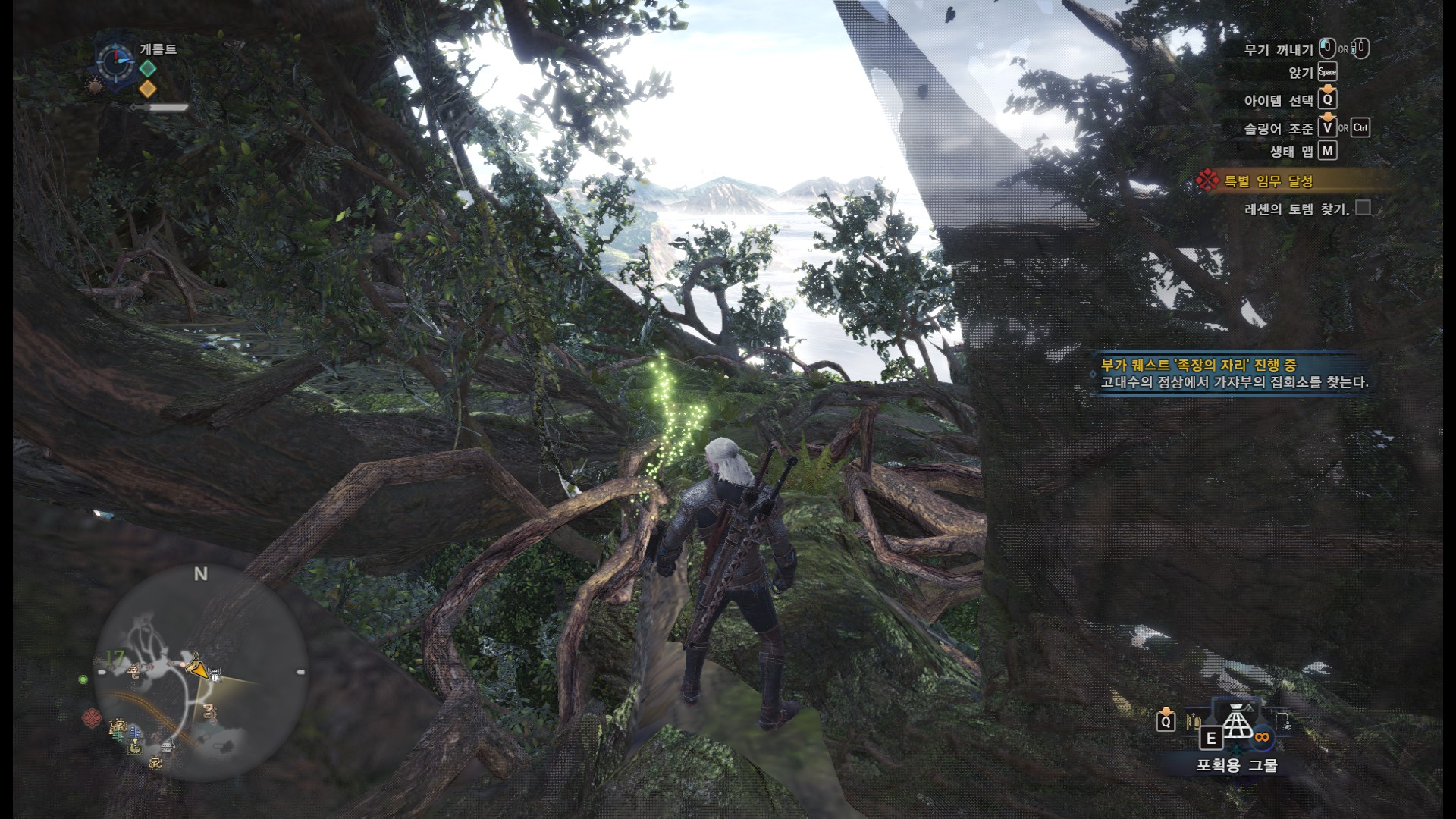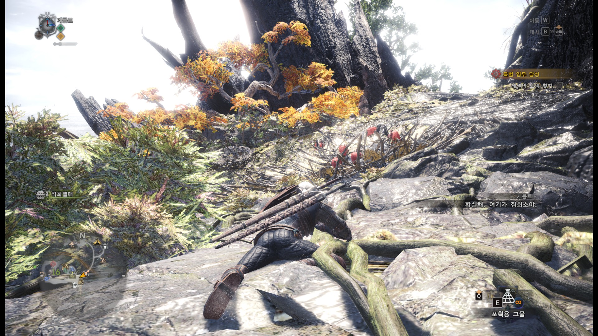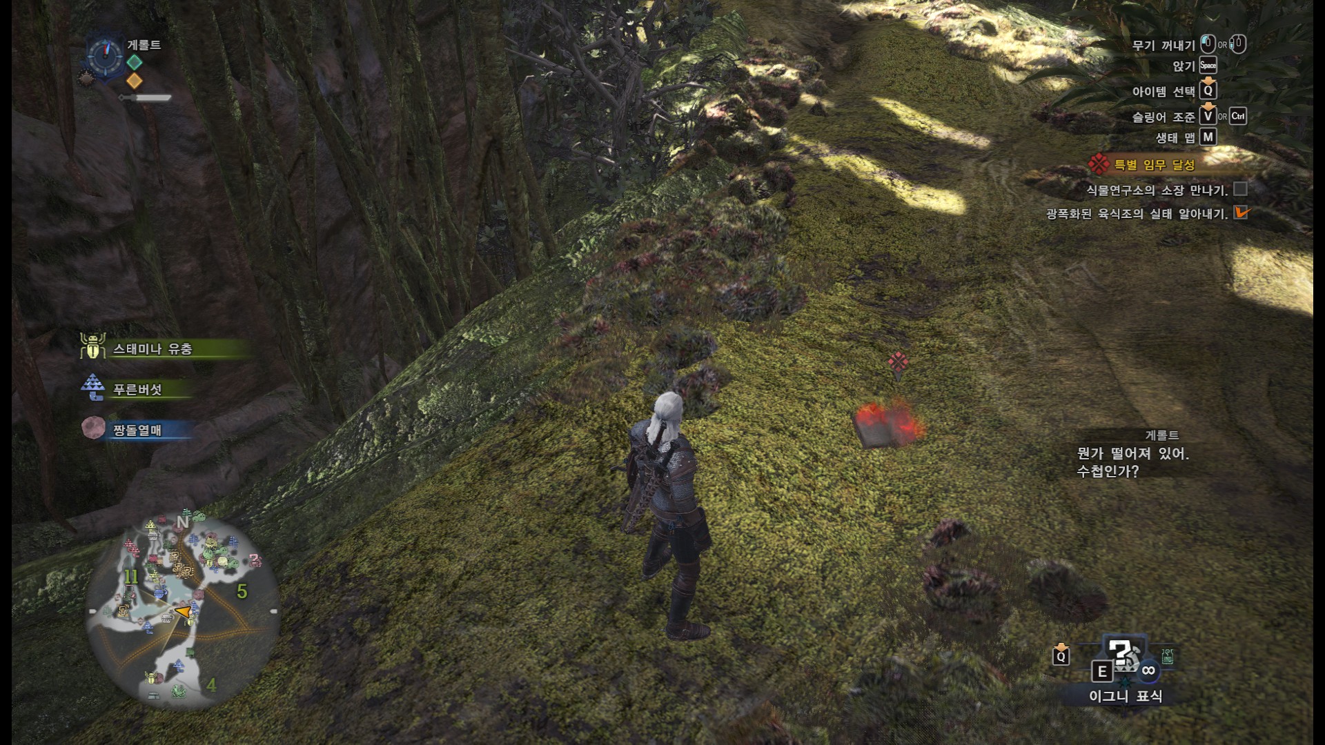 스샷에 붉은 나뭇가지는 가까이 가면 조사가능.