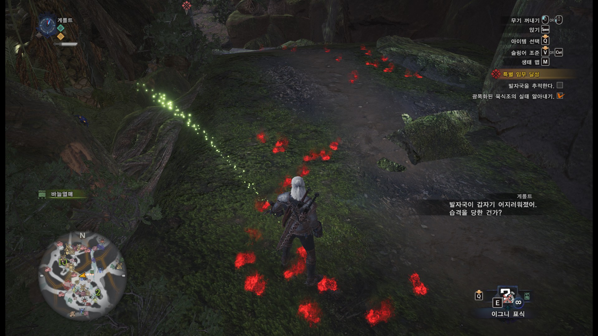 위쳐를 해보신 분들이라면 위쳐3 방식 그대로, 흔적만 쫓아가시면 됩니다.