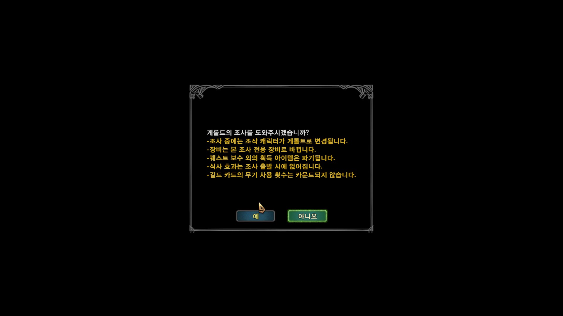 가다보면 조사단원과 만나게 되고 간단한 대화 선택지가 나옵니다.