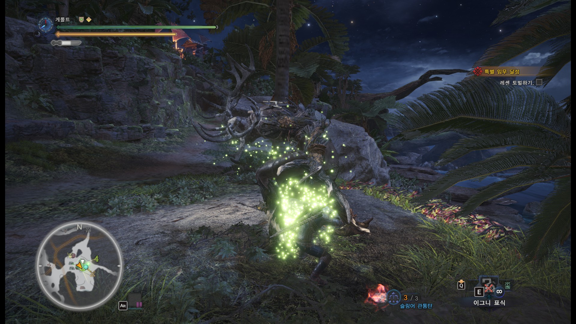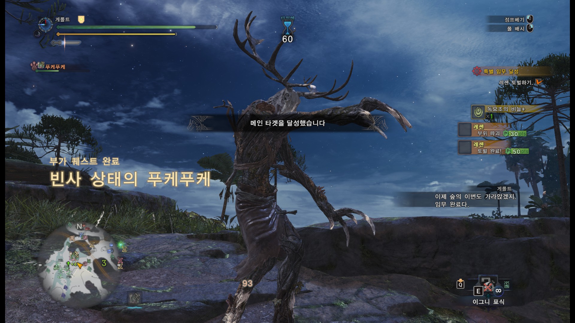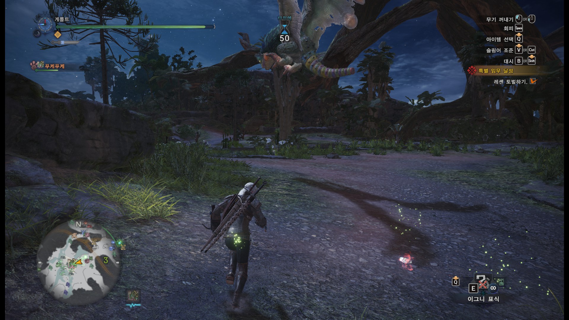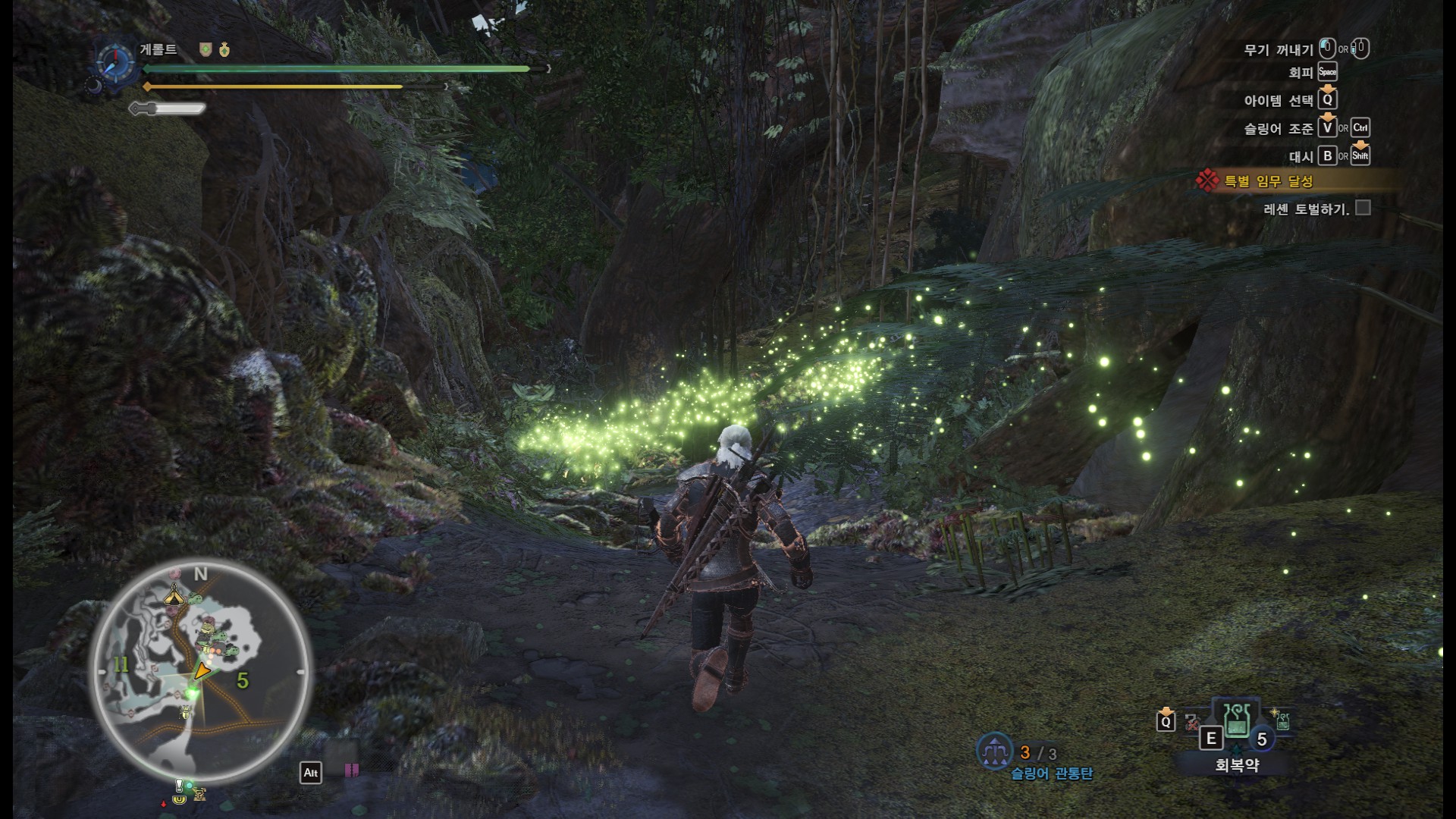 사견으로 메인 퀘스트와 두가지 부가 퀘스트를 한꺼번에 진행하면 시간이 오래 걸리기도 하고, 여러번 깨야 하는 퀘스트기 때문에 처음에는 메인퀘스트와 부가 퀘스트 한개만 진행하시는게 좋을 것 같습니다.(단, 부가퀘스트 2개를 한꺼번에 클리어 할 시에만, "와일드 헌트" 칭호를 받을 수 있습니다)