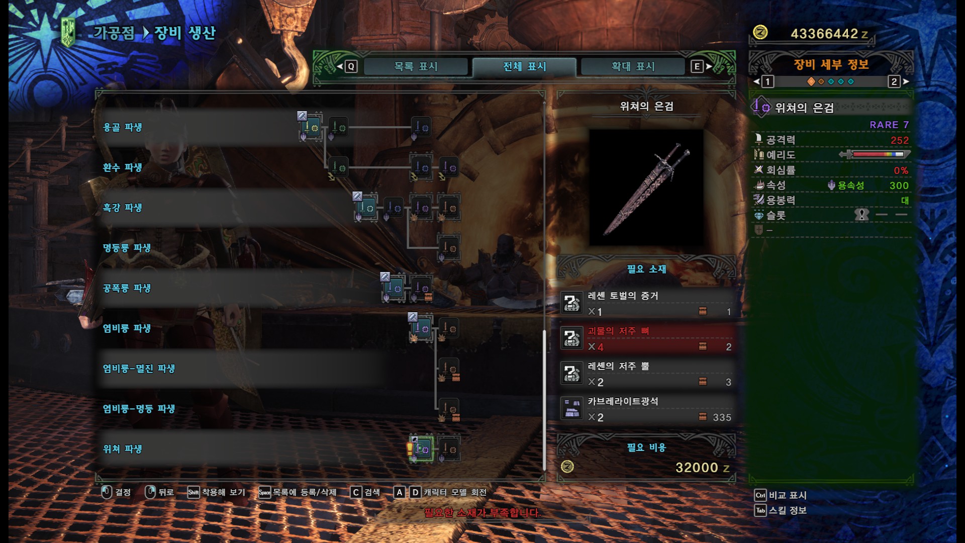위쳐의 은검 제작 등에 필요합니다. 운 좋으면 재료를 한번에 다 얻는 경우도 있을 것 같긴 합니다만, 최소 2번은 잡아야 되는 것 같습니다.