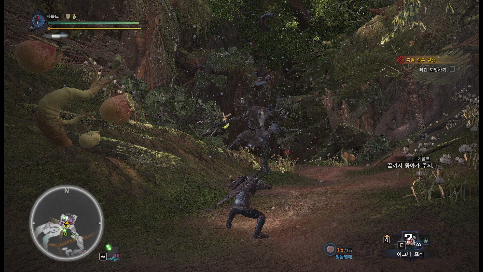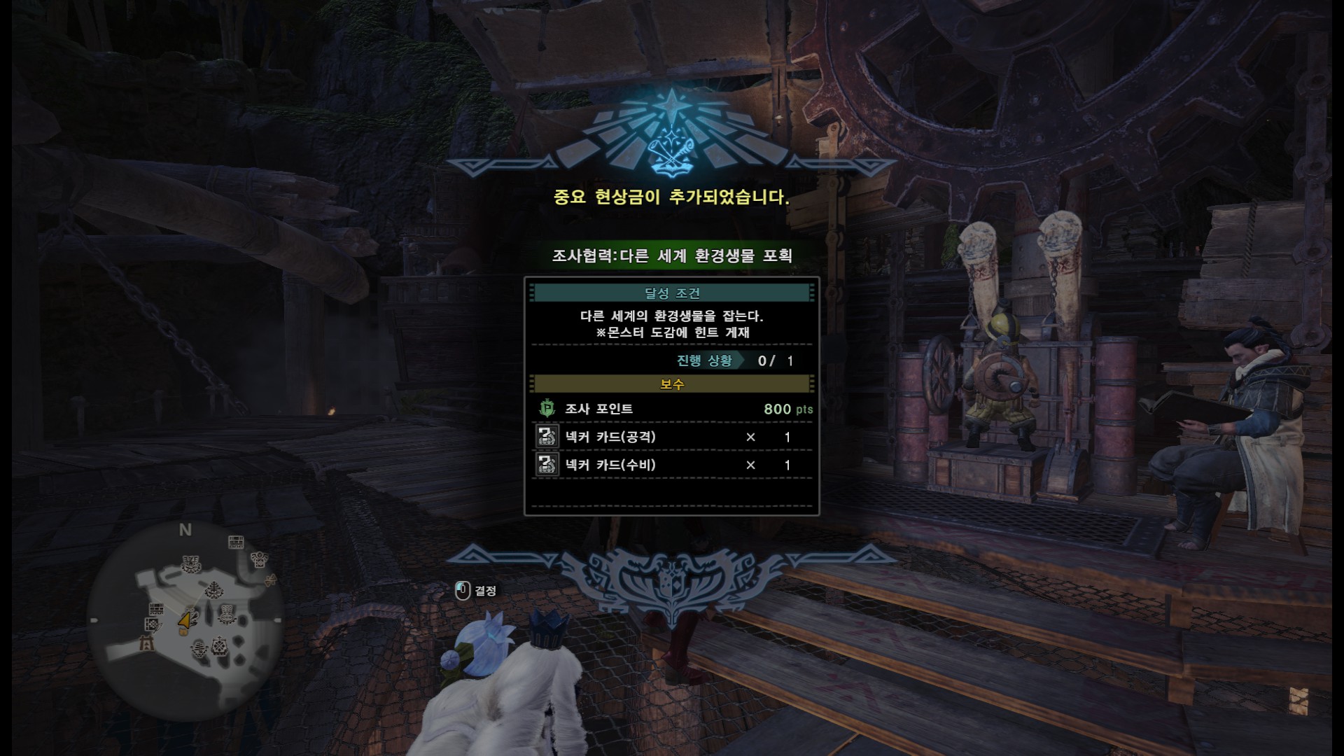 이후 조사거점으로 가서 누님과 대화를 하면 환경생물 "넥커 포획 의뢰"를 합니다.