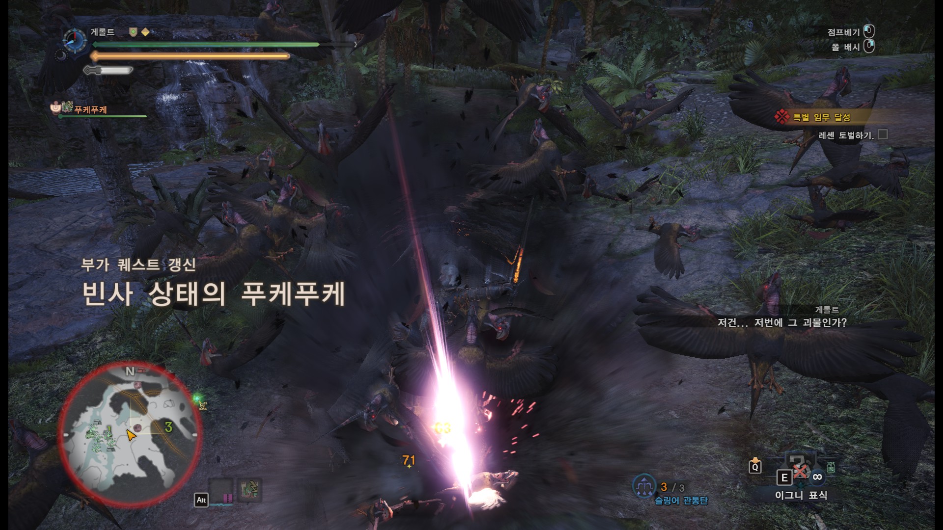 섬광탄 3발을 다 써버린다면 나중에 푸케푸케 합류전에서 위험할 수도 있기 때문에, 1,2발만 쓰시는거 추천.