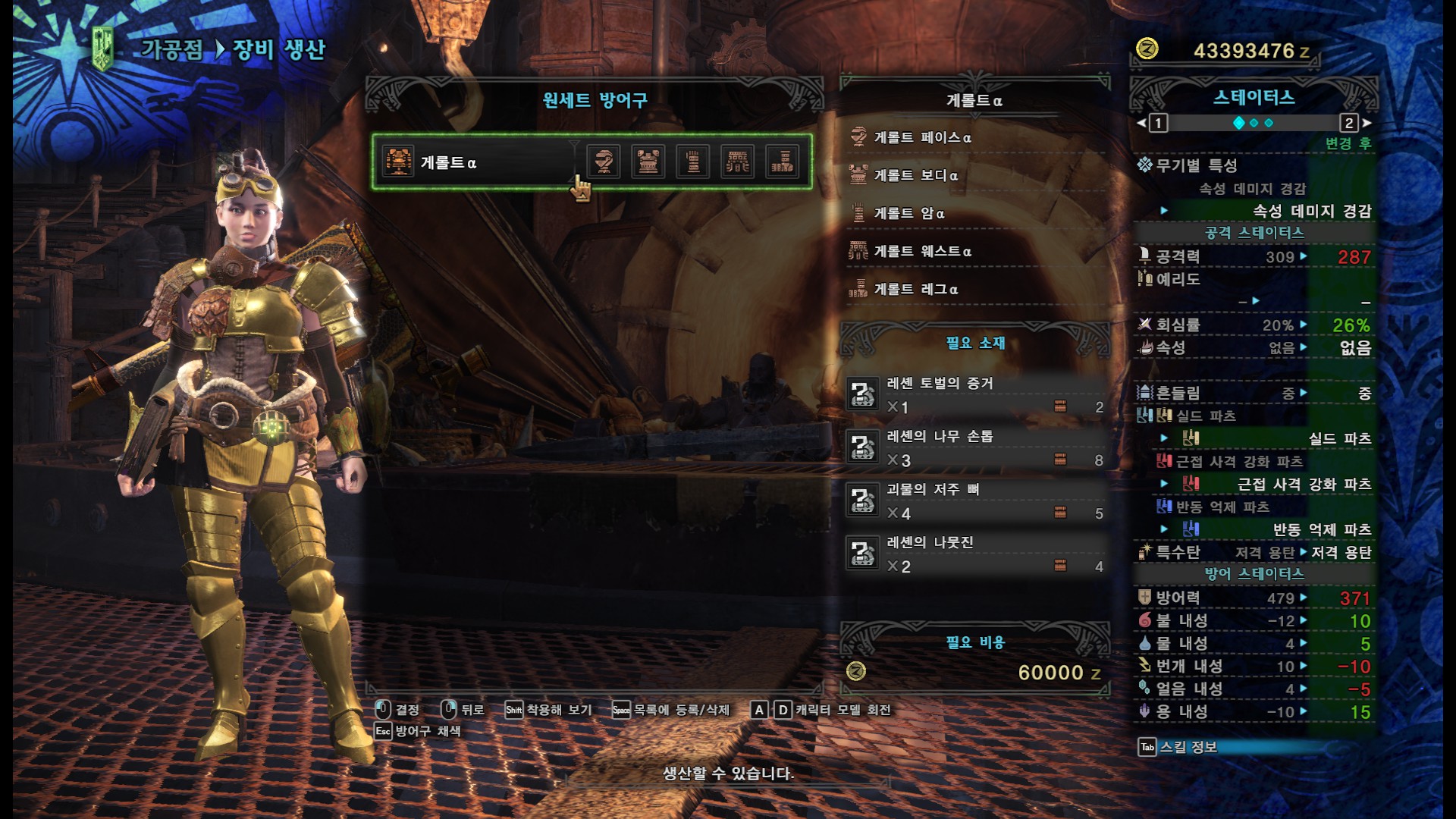 공방에 가면 원세트 방어구도 만들 수 있습니다.