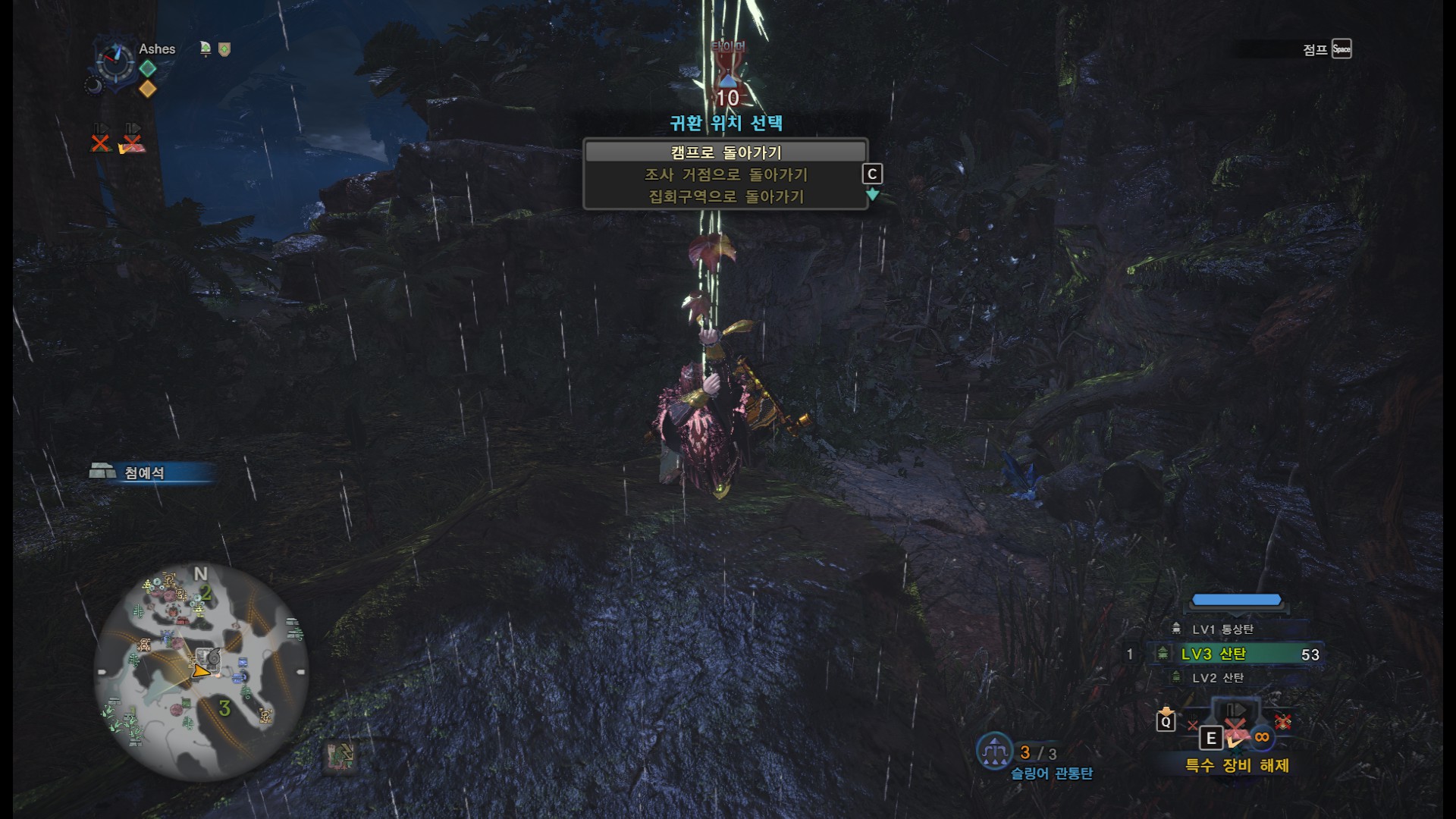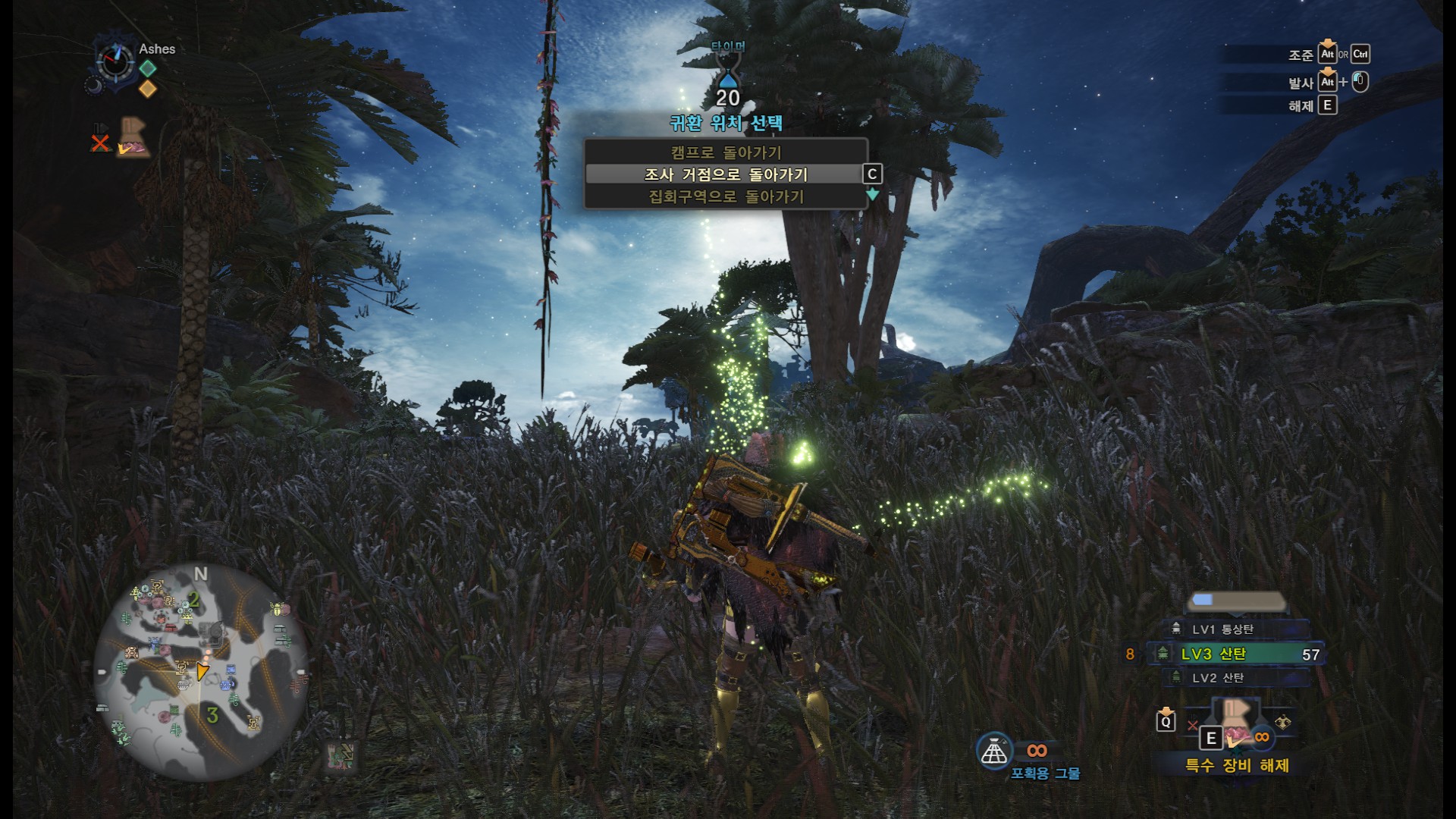 조사거점으로 가도 됩니다만, 비료가 터지지 않는다면 캠프로 귀환해서 몇번 더 하셔도 됩니다.