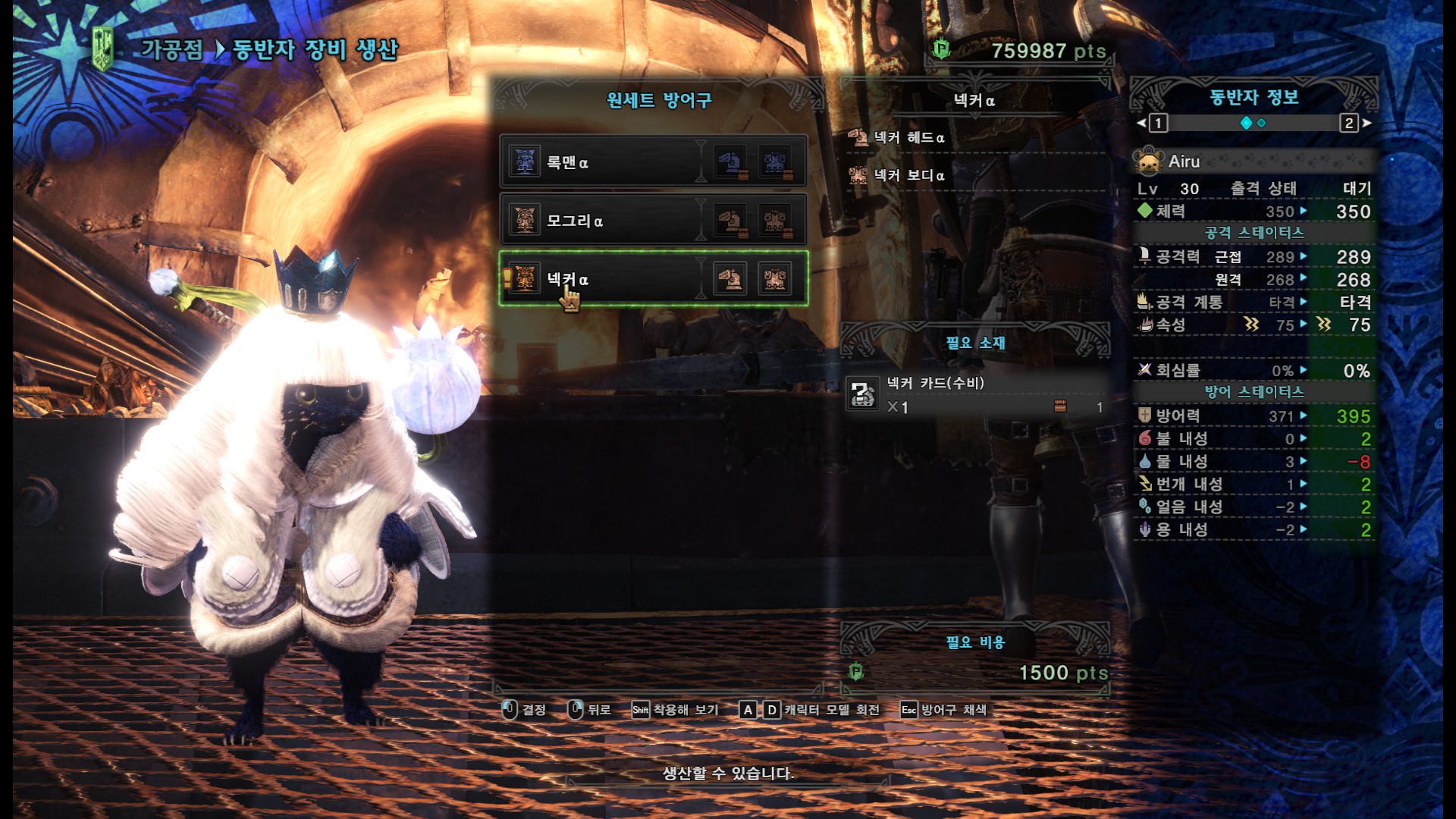 동반자 방어구 넥커 알파셋도 만들 수 있습니다. 만들어...볼까요?