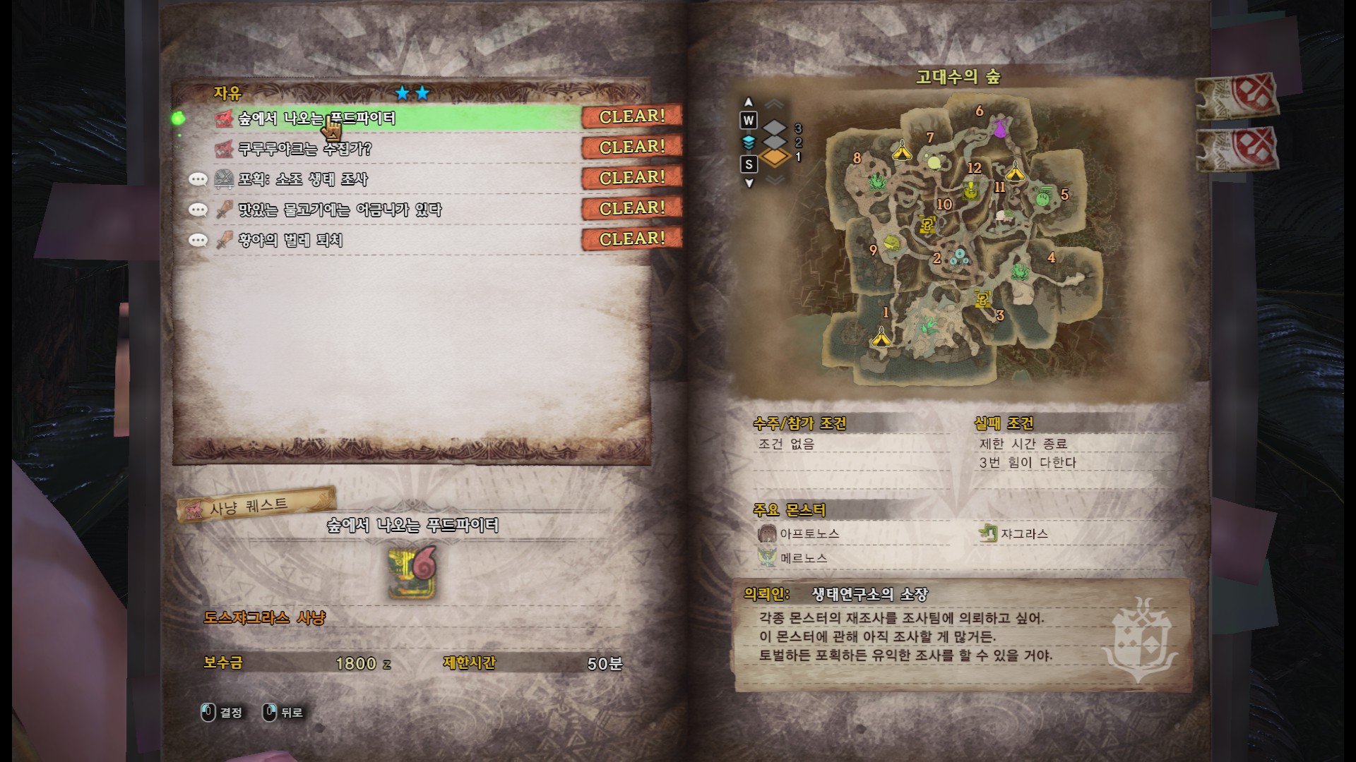 자유퀘나 조사퀘나 상관없는 것 같지만, 조사퀘 목록 중에 쟈그라스 퀘가 없어서 자유퀘로 수주를 해보았습니다.