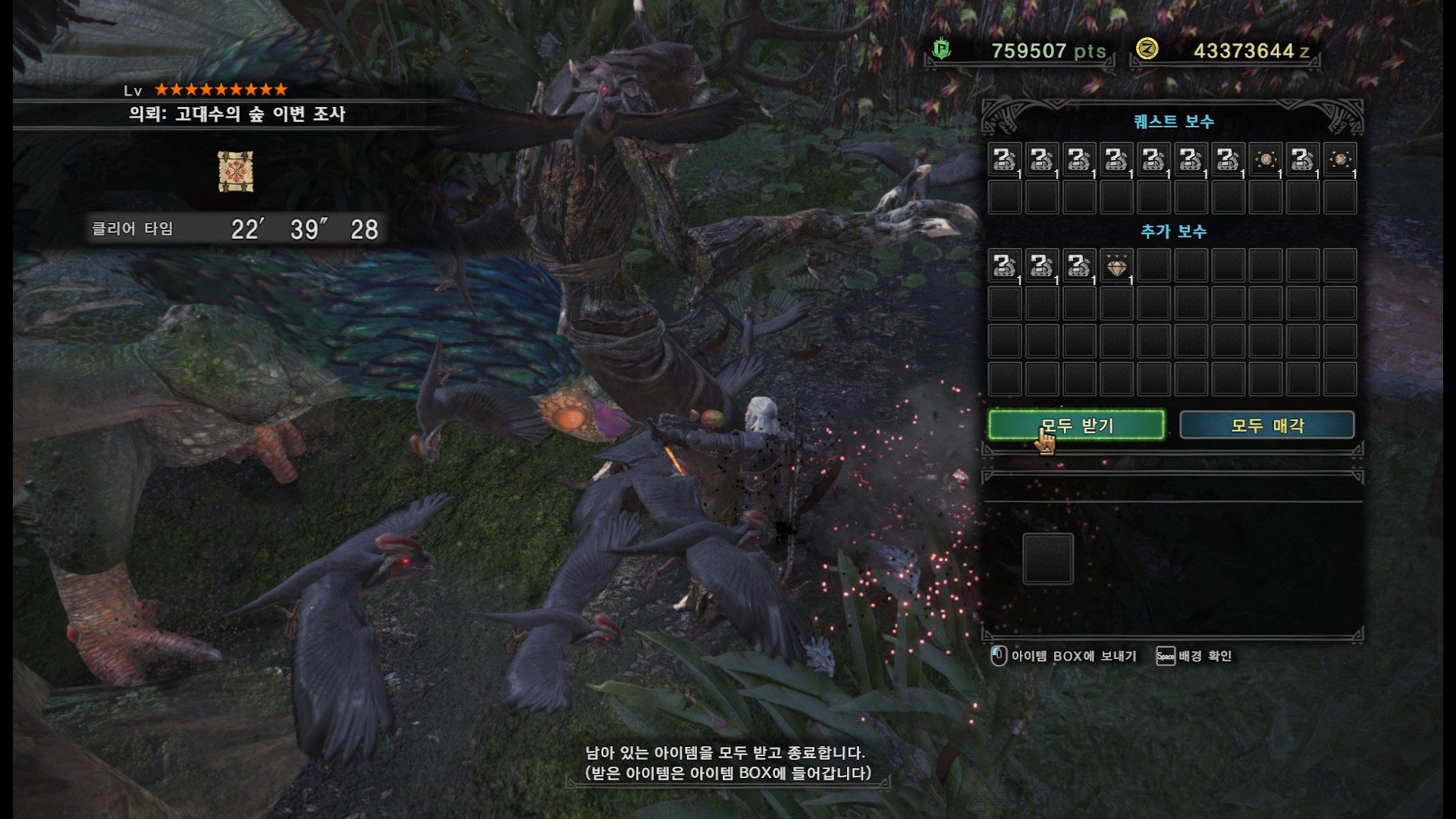례셴만 잡는데는 대충 15분 안팎이 걸립니다. 낙석을 맞추면 좀더 빨리 끝나겠지만 퀘스트 시간이 은근히 오래 걸려서 첫 시도때는 부가 퀘스트는 한개정도만 병행하시는게 덜 피곤할 것 같습니다.