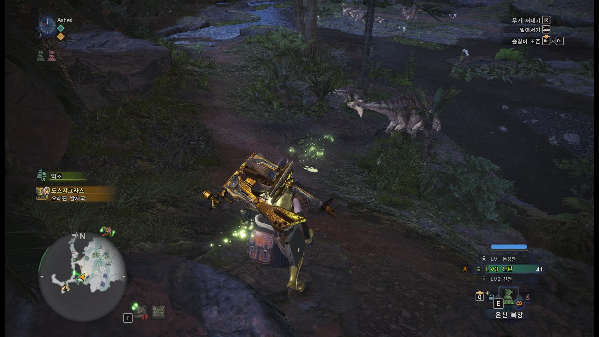 가끔 저 초식동물 사이에 뜸부기들이 숨어 있는데(처음에는 땅바닥에 있다가 나중에 등에 올라타는건지 모르겠는데 저 위치에서 내려가자마자 뜸부기들의 뺙뺙 대는 소리만 들린 후 사라지는 경우가 종종 있음), 서서 걸어가면 보이기도 전에 튀기 때문에 숙여서 지켜보거나 처음부터 은신복장을 입고 시작하는 것도 좋습니다.