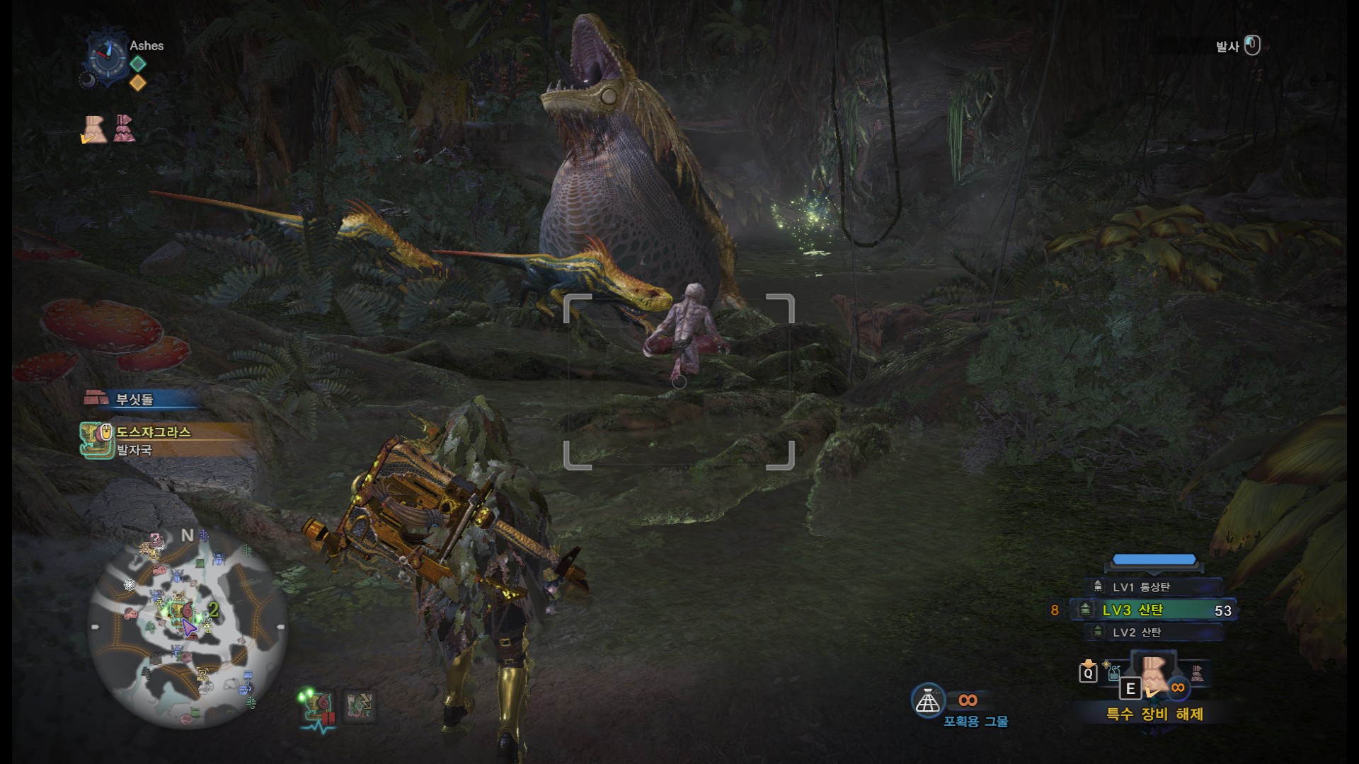 쟈그라스의 시야 밖에서 섬광을 쏘면 쟈그라스가 빨리 달려오긴 합니다만, 이후 루트가 기괴해질 수 있기 때문에 비추천합니다.