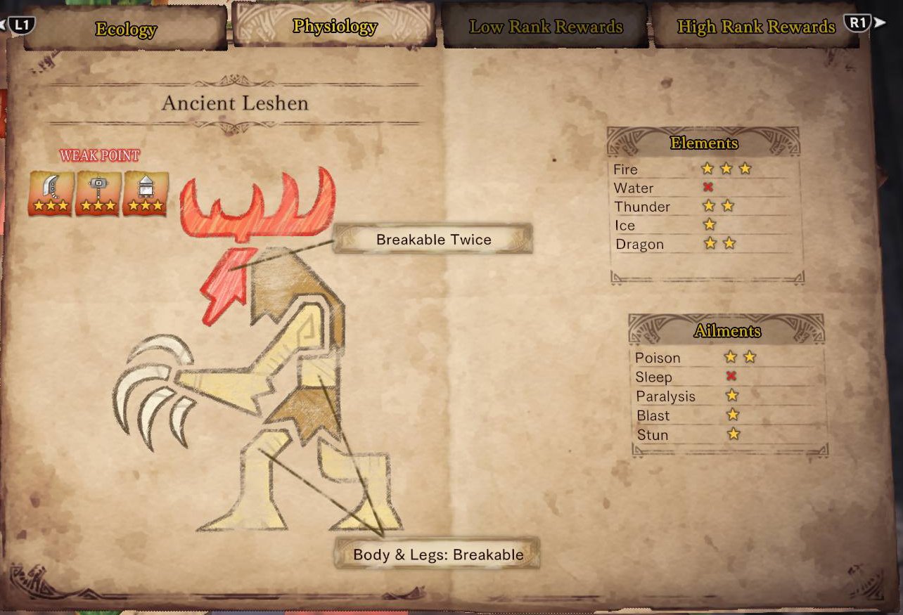 약점은 머리라고 봐야겠군요.(참격, 타격 무기는 전부위 육질이 45 이상이기 때문에 약점특효가 유효, 원거리 무기는 머리 제외 약점특효가 발동되지 않음)