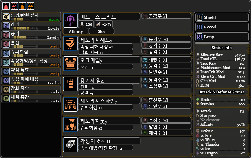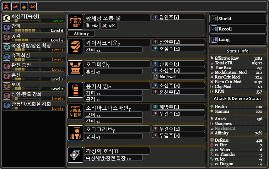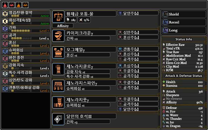 운빨 명등룡을 버리고 장전확장을 챙긴 커스텀. 회심은 위 커스텀보다 살짝 낮습니다.