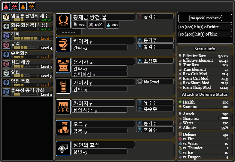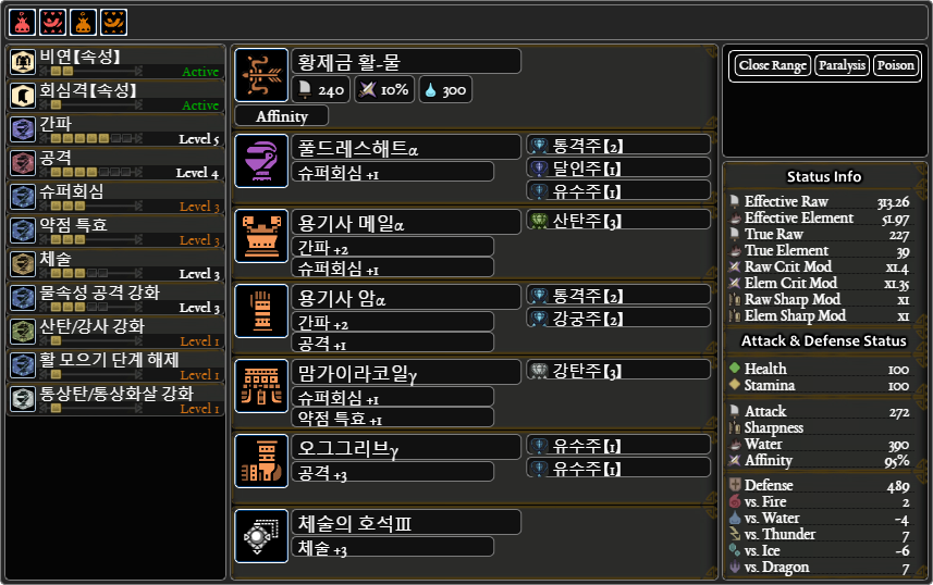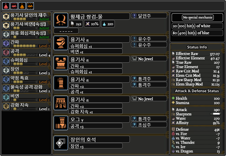 100% 회심은 아니지만 공4를 챙긴 물활 커스텀입니다.