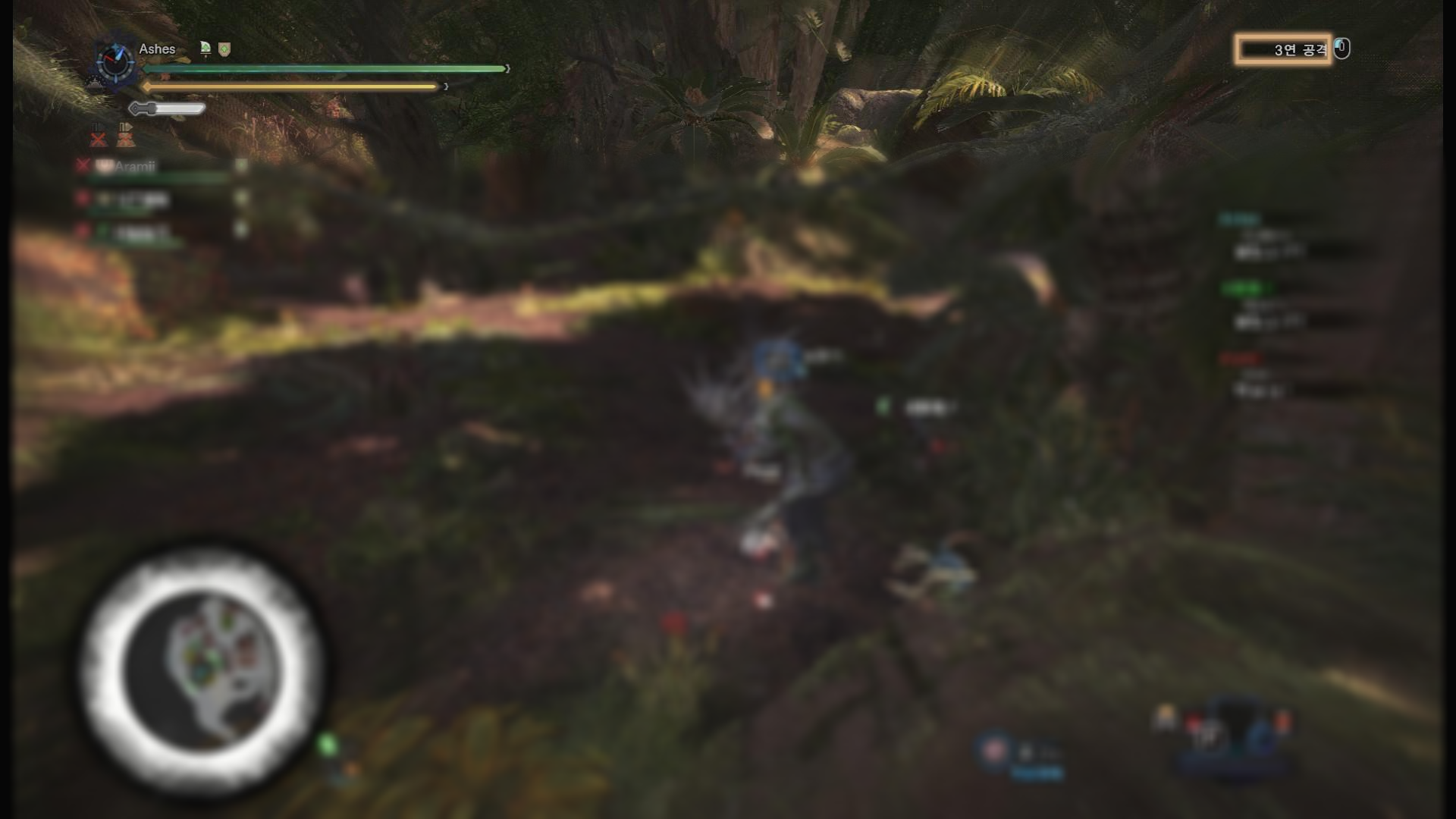 같이 나오는 쟈그라스는 체력이 어마어마해서 쌍검으로는 긁어도 잘 안죽습니다. 서폿이 있다면 섬광 발사 후, 대형폭탄g로 처리해주세요.