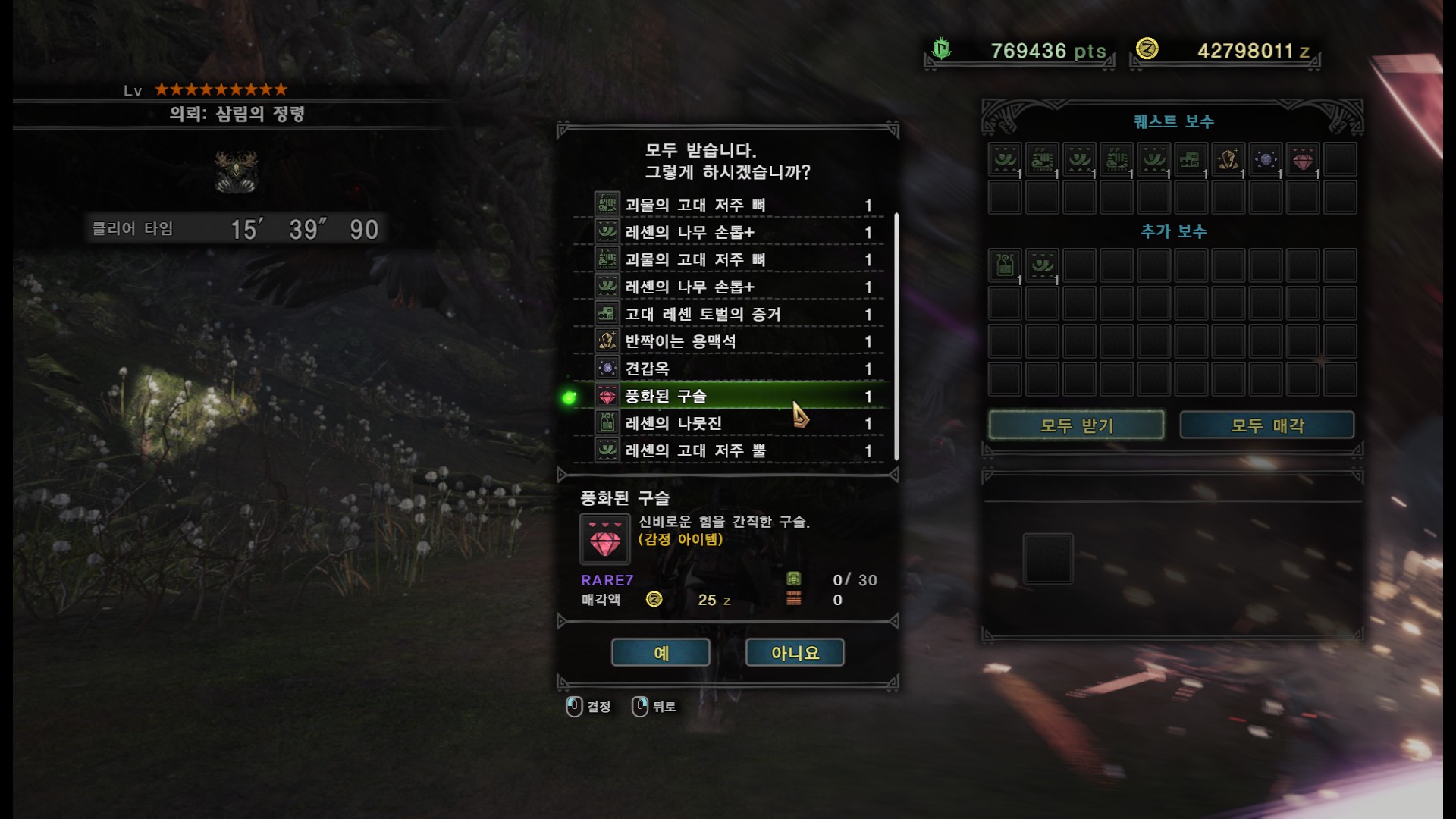 선행 퀘스트 특별임무, "고대수의 숲 이변조사"를 클리어 했다면 위쳐의 룬스톤을 모두 갖고 계실겁니다.