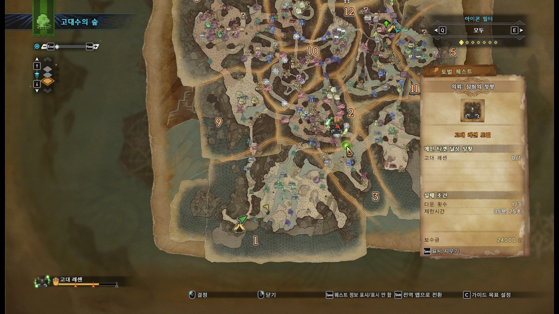 반대로 5번루트로 진행할 경우 마비두꺼비가 있긴 합니다만(5번>4번>2번순으로 진행), 나무때문에 시야에 제한이 생겨서 전투가 길어집니다. 마지막 페이즈인 2번 지역은 전투 장소도 좁고 5번만큼 시야가 협소해서 싸우다가 개빡치는 상황이 자주 발생합니다.