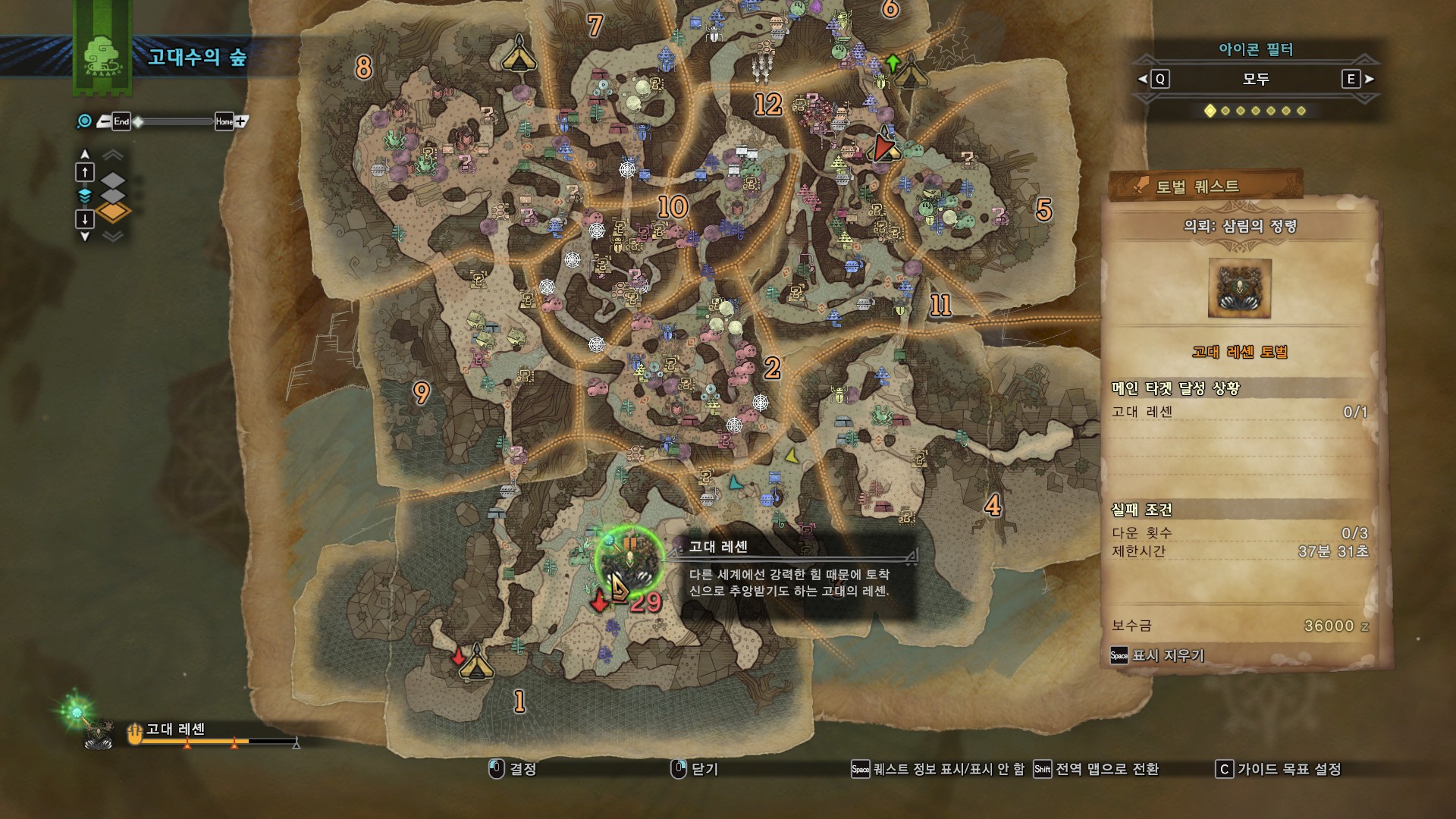 고대 레셴 전투는 12번 지역에서 시작합니다. 12번 지역과 가까운 캠프로 이동, 슬링어를 주운 후 가자마자 낙석을 맞출 시 고대레셴과 쟈그라스에게 데미지를 줄 수 있습니다.