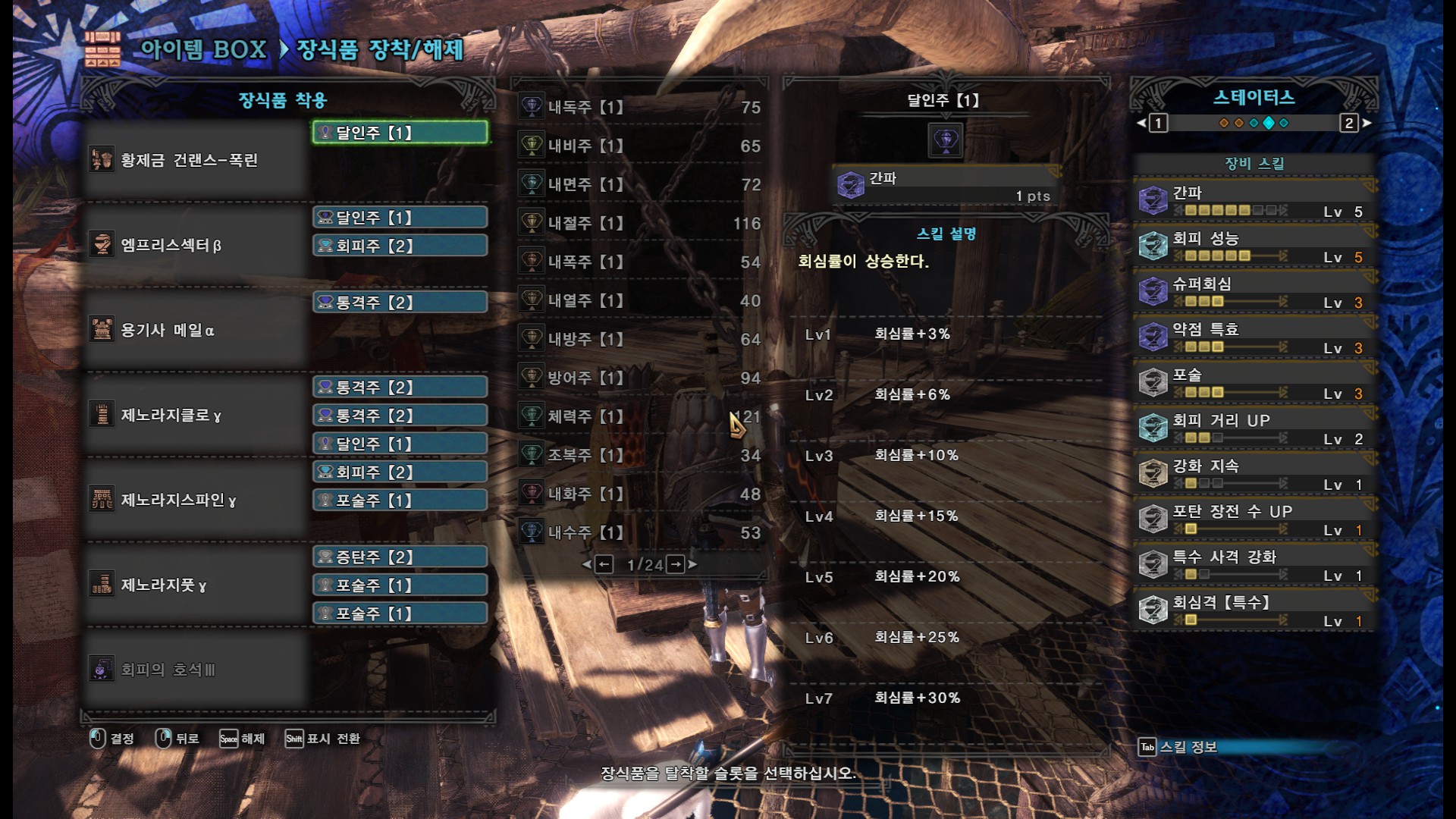 귀마개1 + 이동 납도 > 더 낭낭하게 긴급회피 성공
