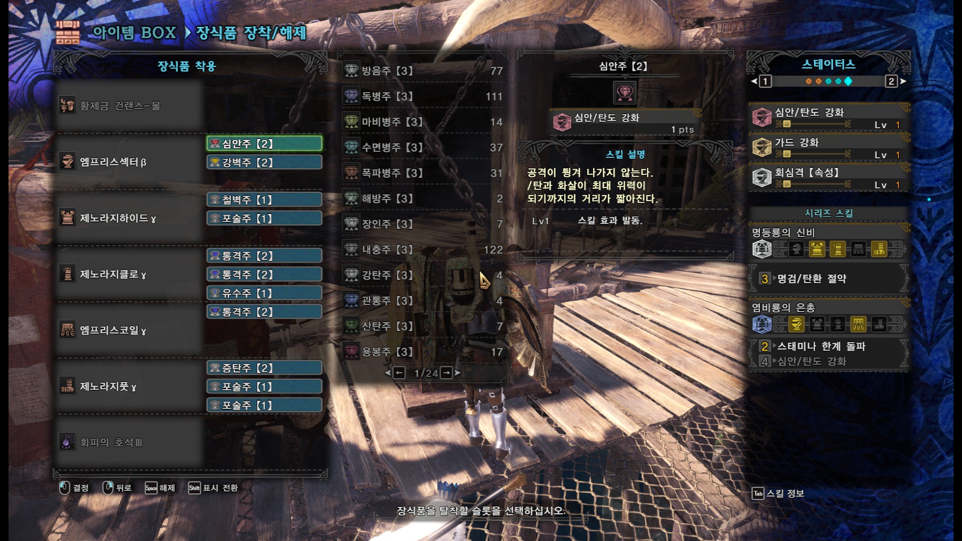 흰가시 파괴가 어렵다면 심안도 좋습니다. 심안이 있으면 검은가시>튕김>짭파극>사망 이런 사태는 안나옵니다.