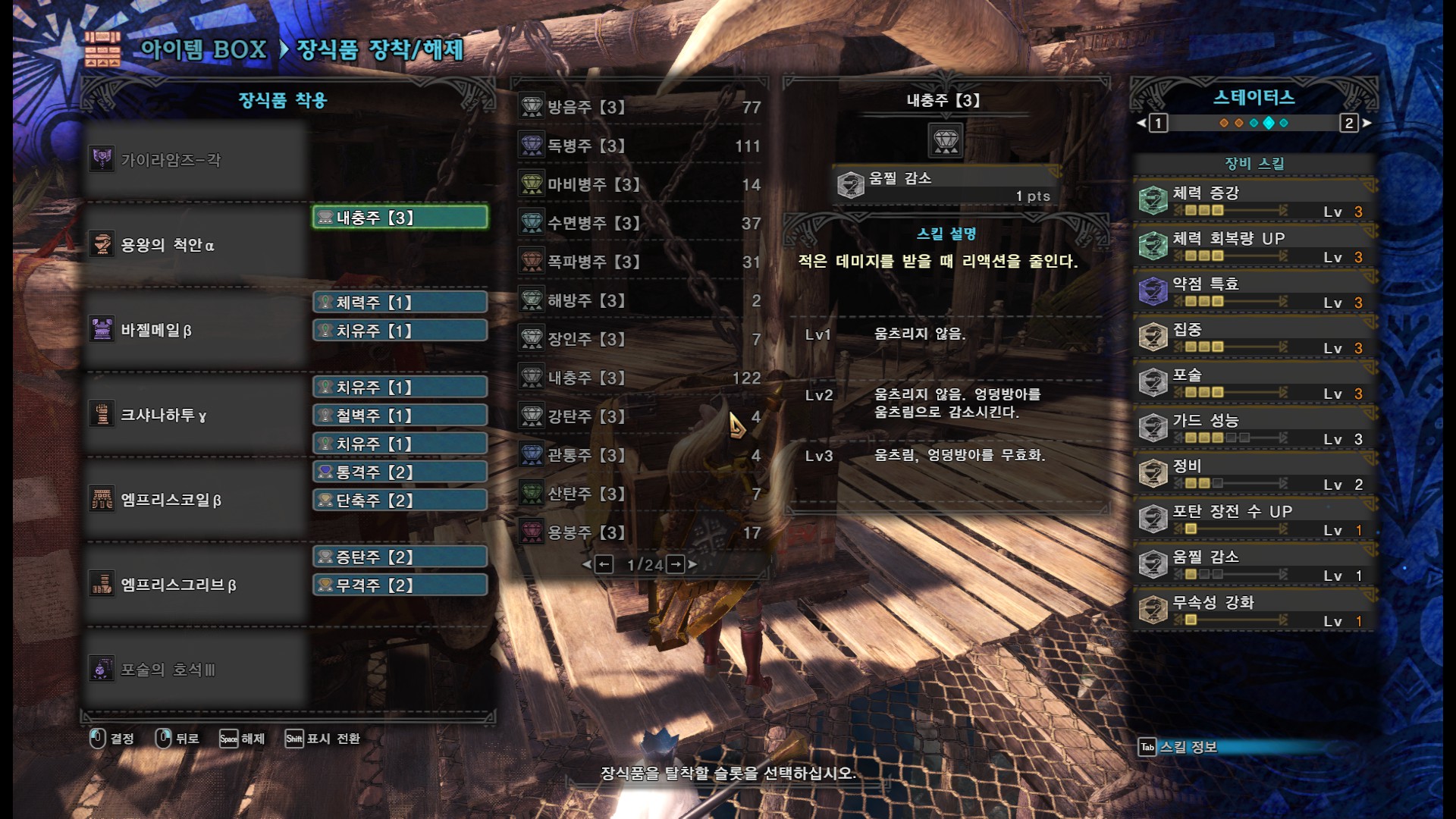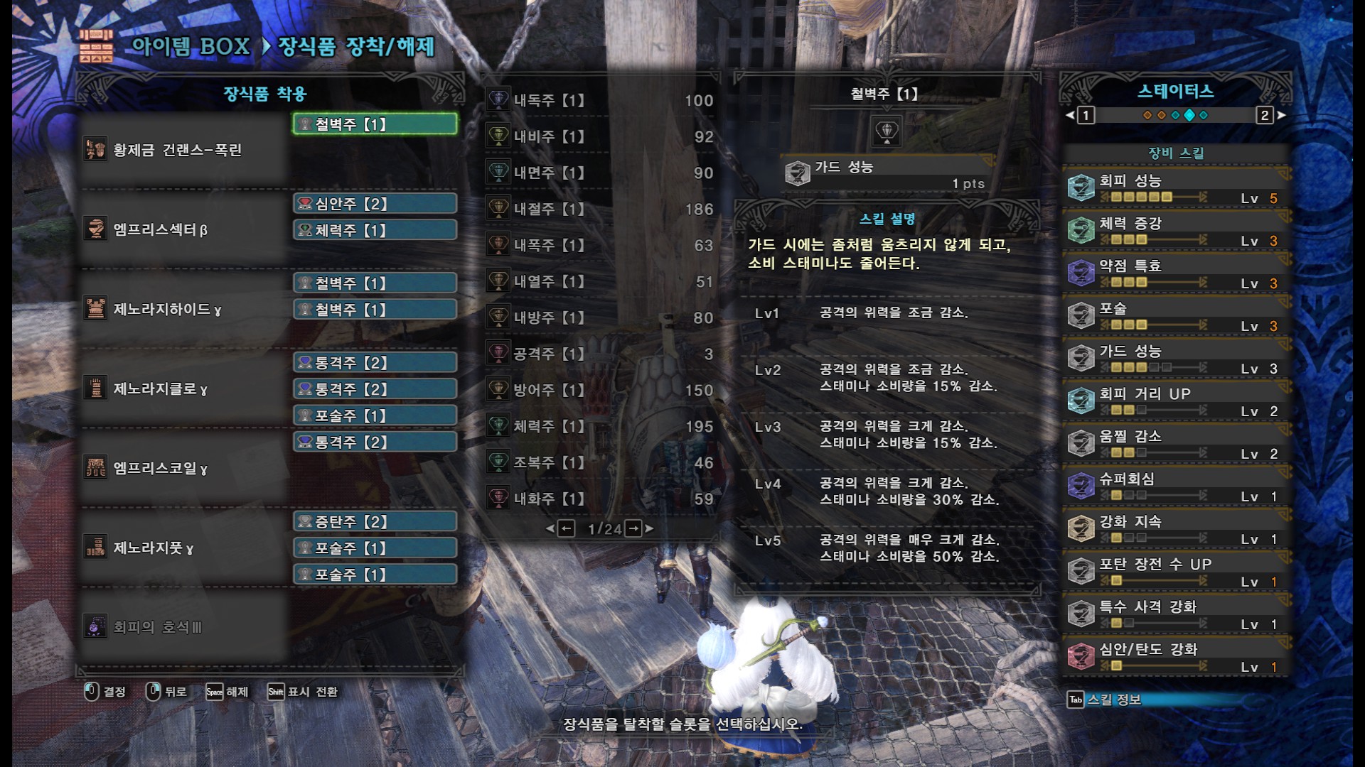 차액 가성1+방패강화+가포 혹은 그냥 가드만 해도 그럭저럭 막을만하지만 랜스 건랜스보다는 피가 많이 까이고, 스태미너도 많이 소모되니까 미리 상태를 체크하세요.