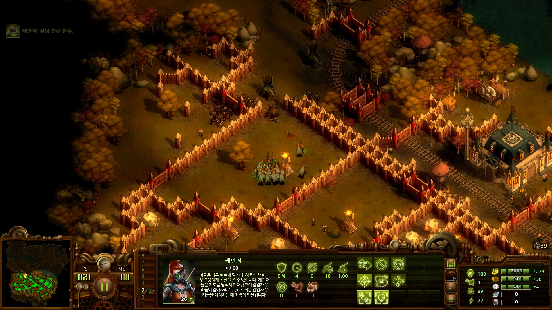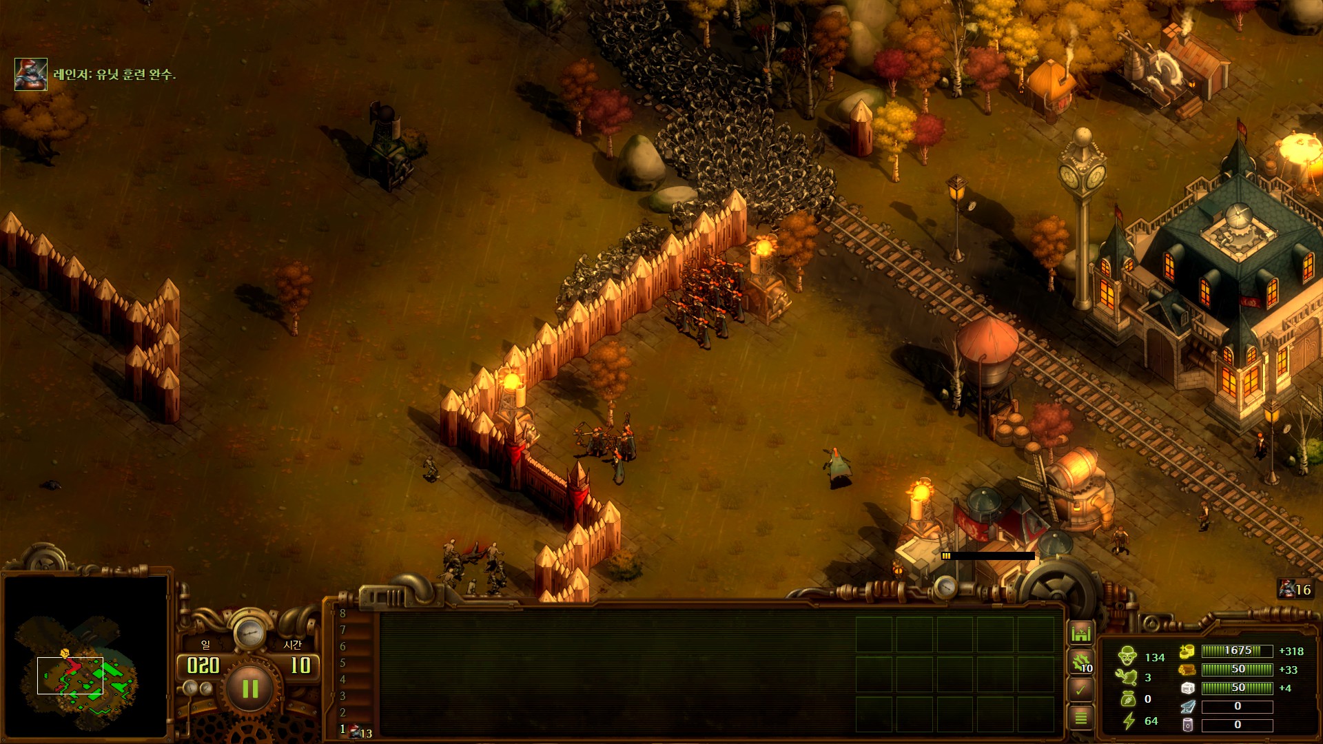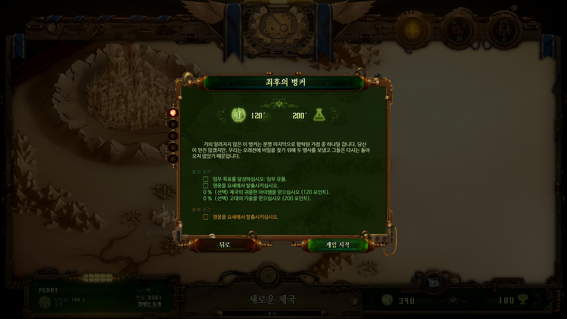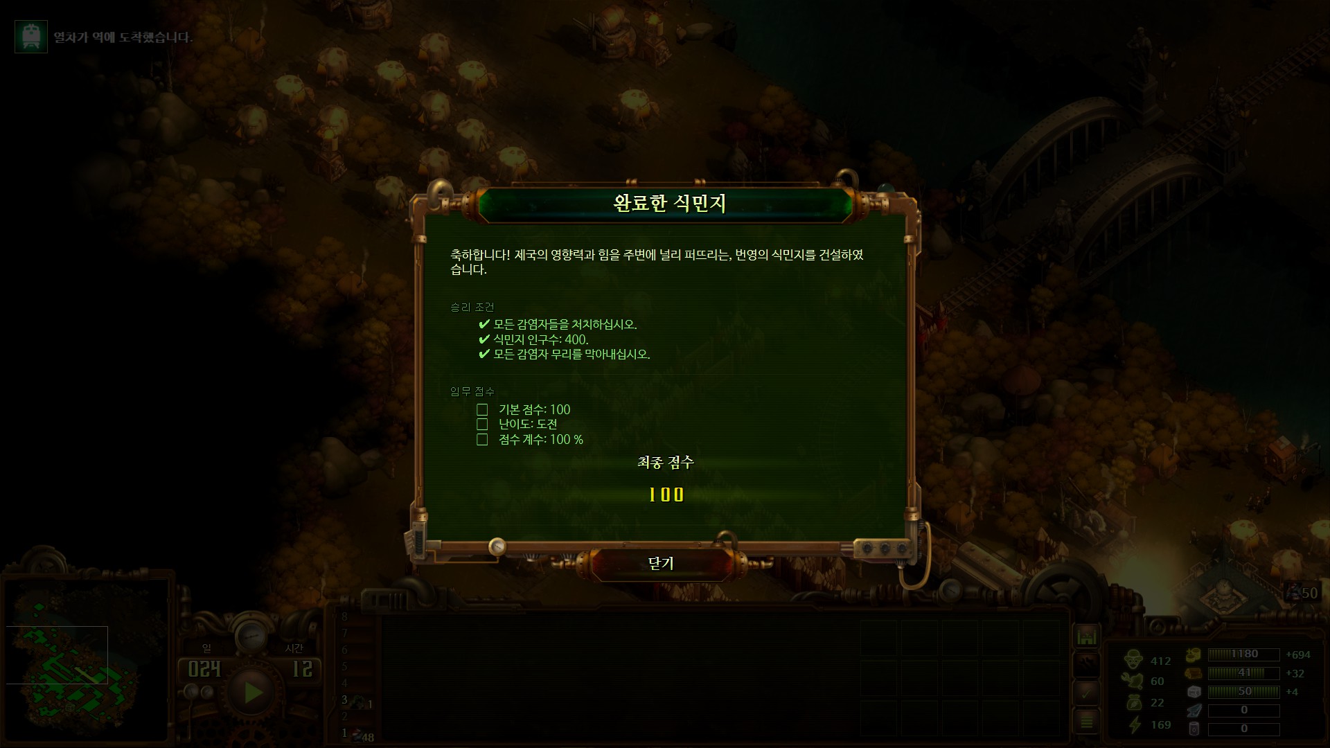 임무성공 조건이 여러개, 식량조달이 빡세서(초반이라 그런지 모르겠지만 사냥꾼의 오두막, 낚시터? 그 외 필드에서 루팅하는거 외에는 식량 생산이 안됨) 생각보다 게임이 어렵네요. 첫번째 캠페인에서만 2번 미션실패 하는 쾌거를 이룩.(1번은 구멍 뚫려서 멸망, 2번째판은 승리조건 1개를 달성 못해서 자동패배)