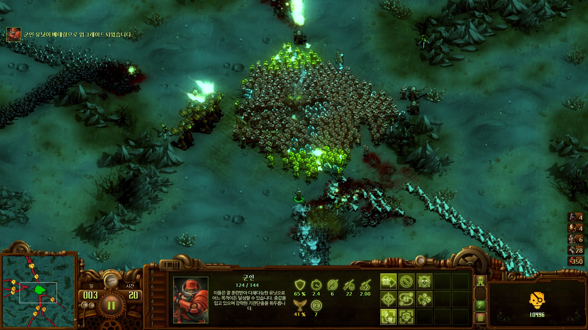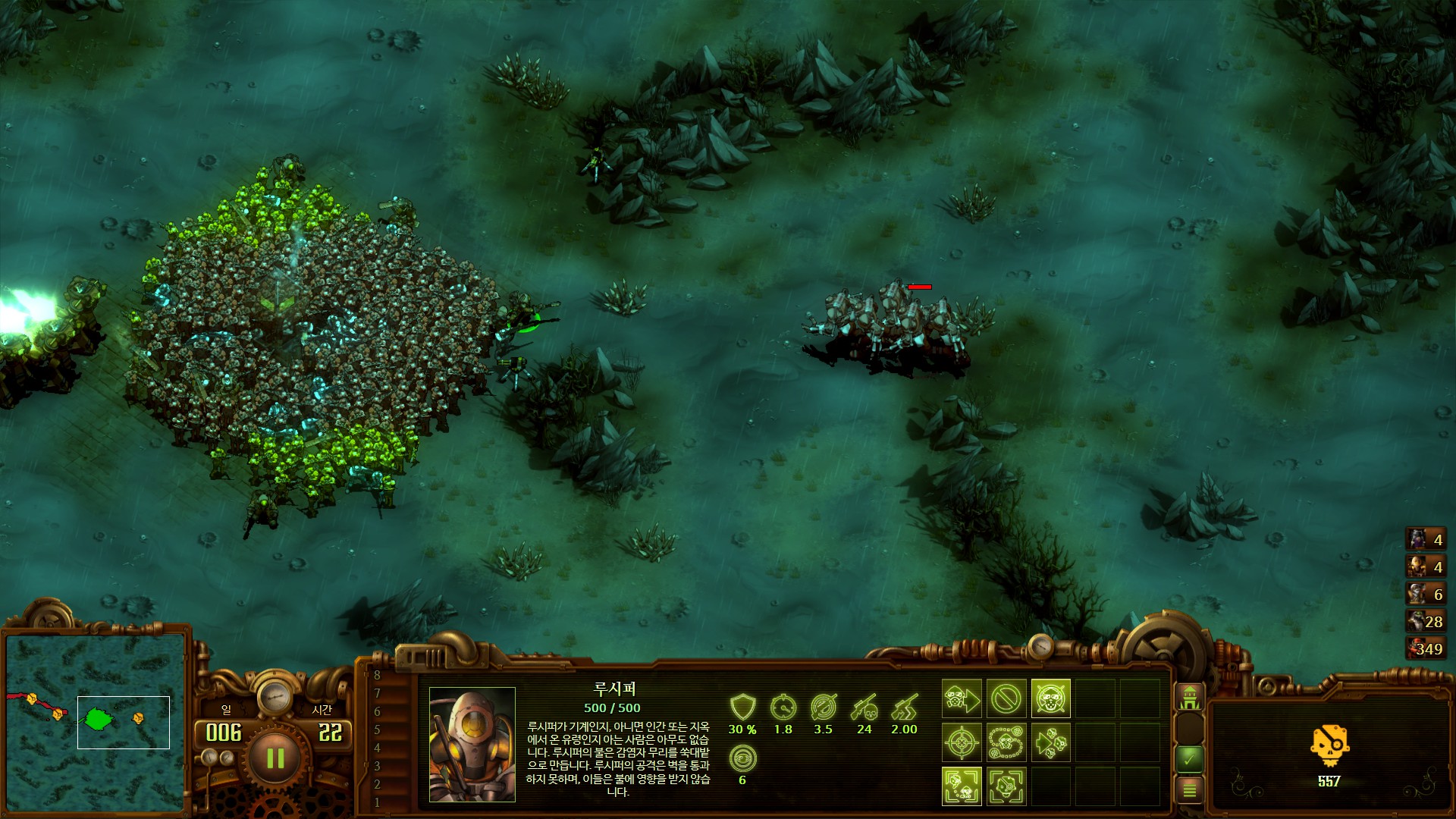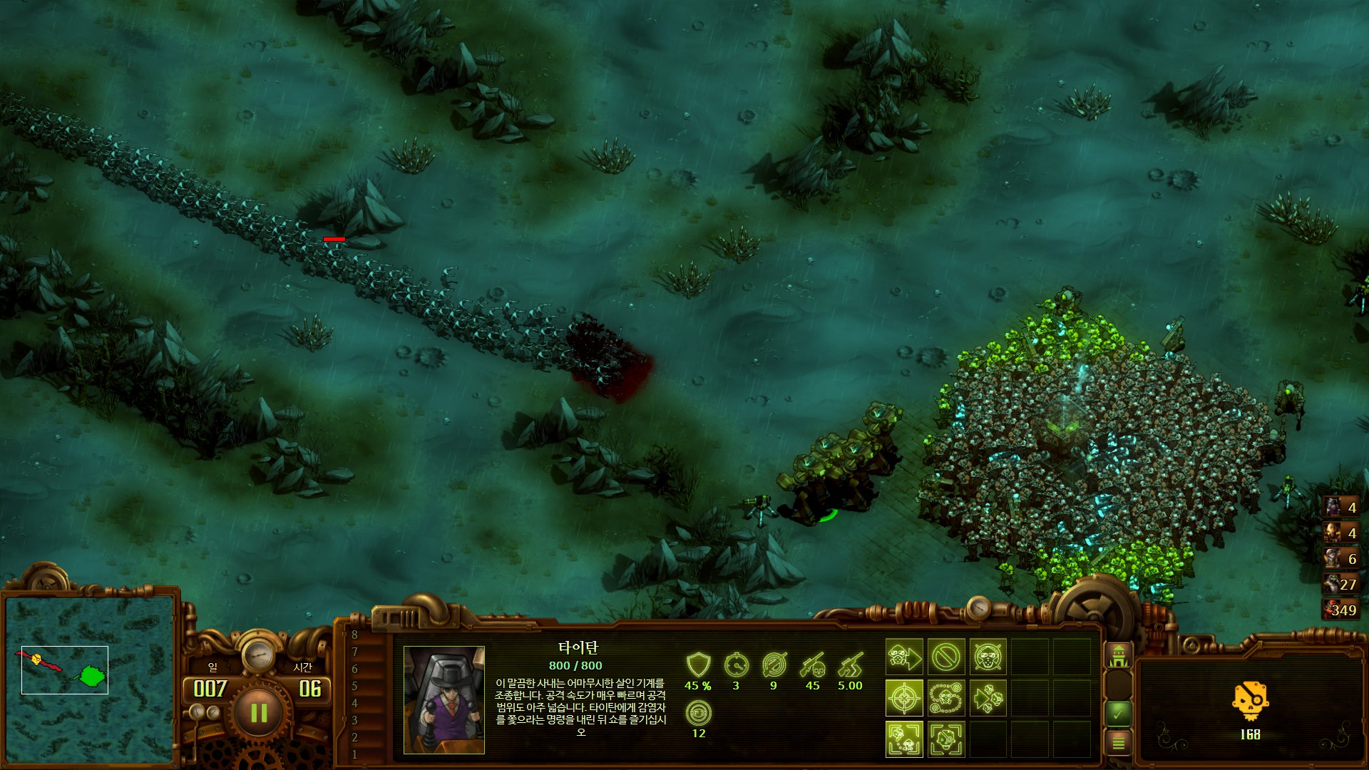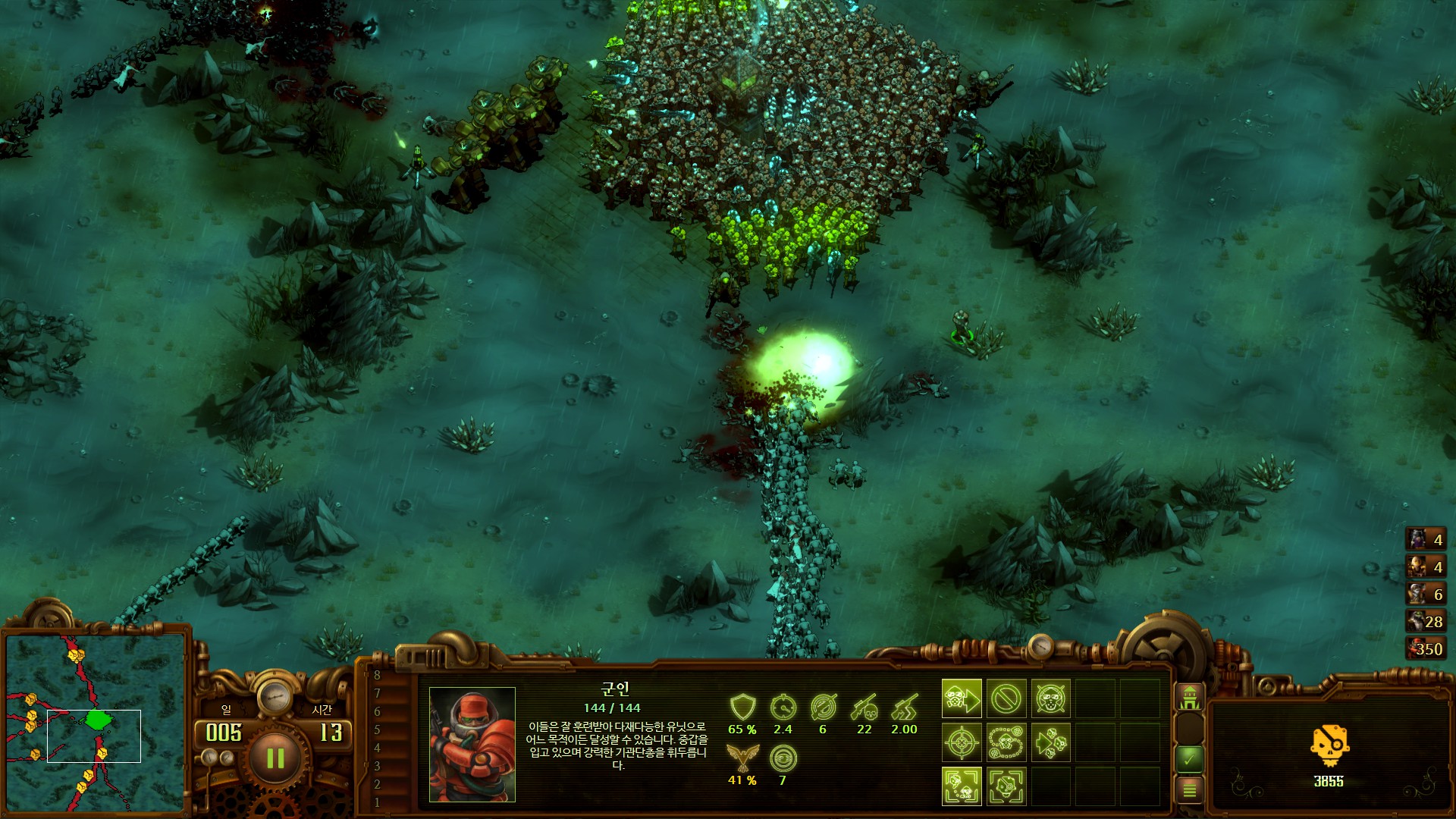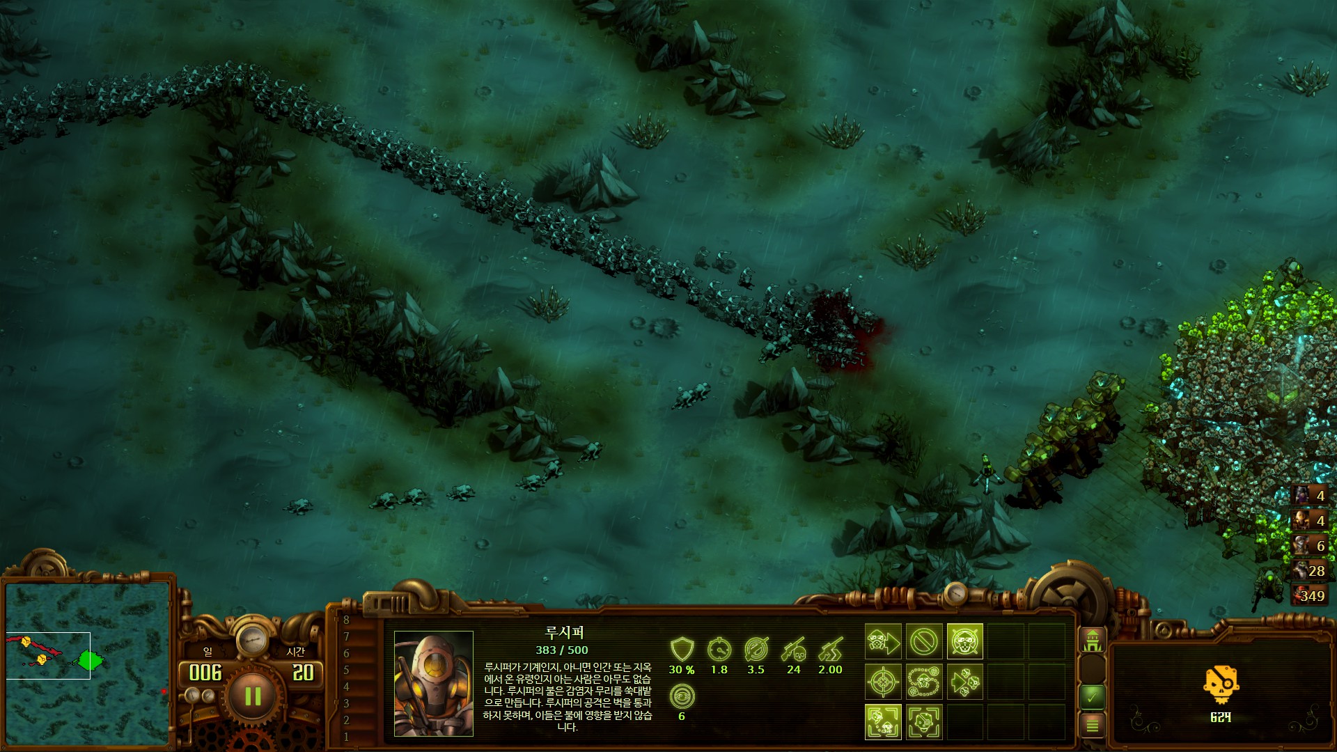 병력이 많아질때마다 느끼는거지만 인공지능이 너무너무 구려요. 이동을 찍었는데 유닛에 비비기만 하는 바보천치 인공지능은 90년대 rts에서도 못봤던 것 같은데...