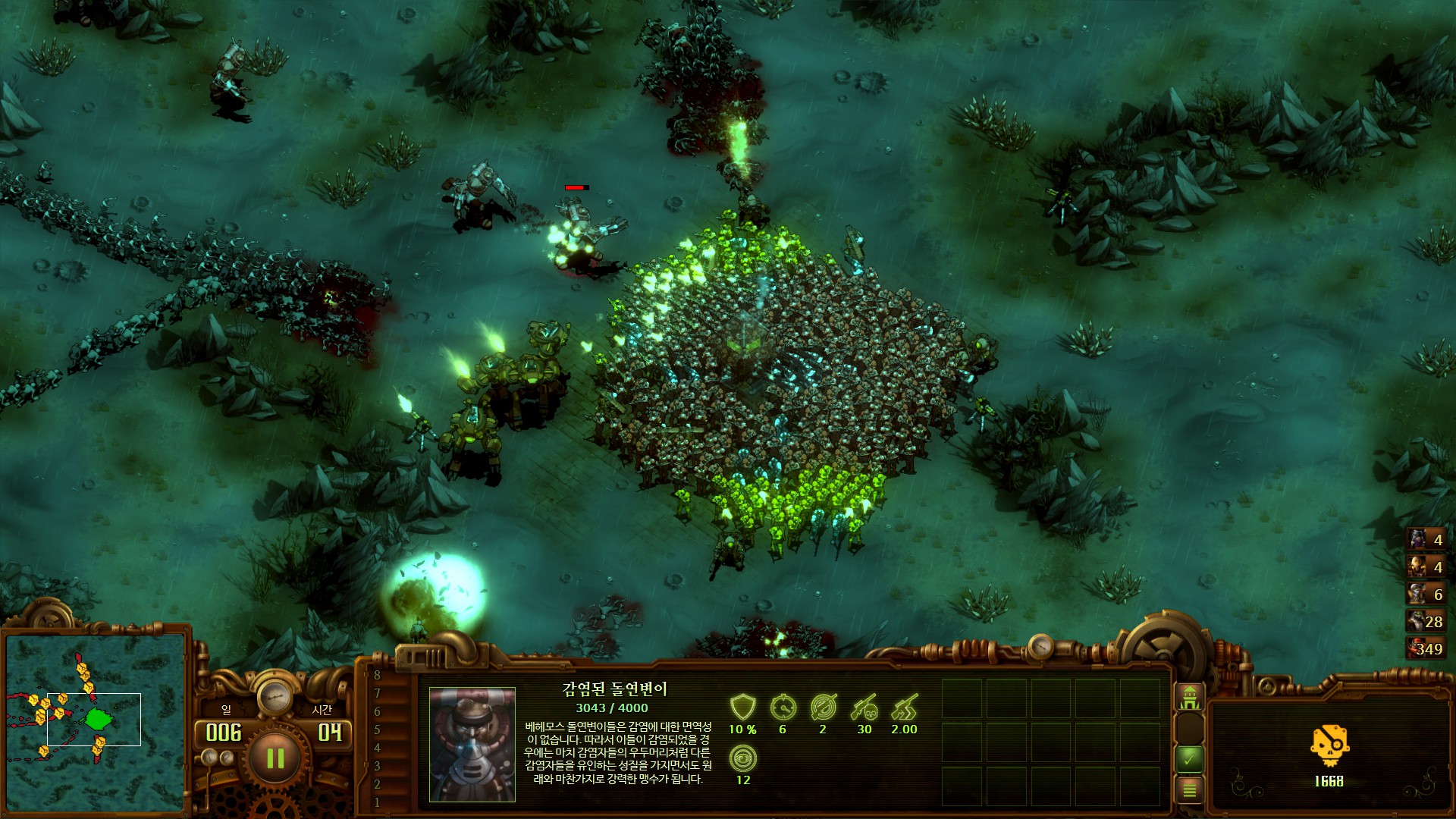 웨이브 막바지에는 희대의 쓰레기 유닛 돌연변이가 달려옵니다.