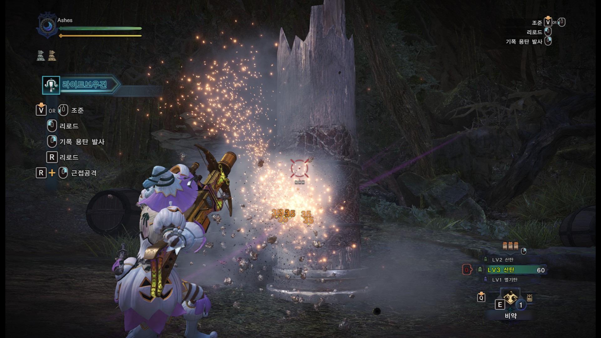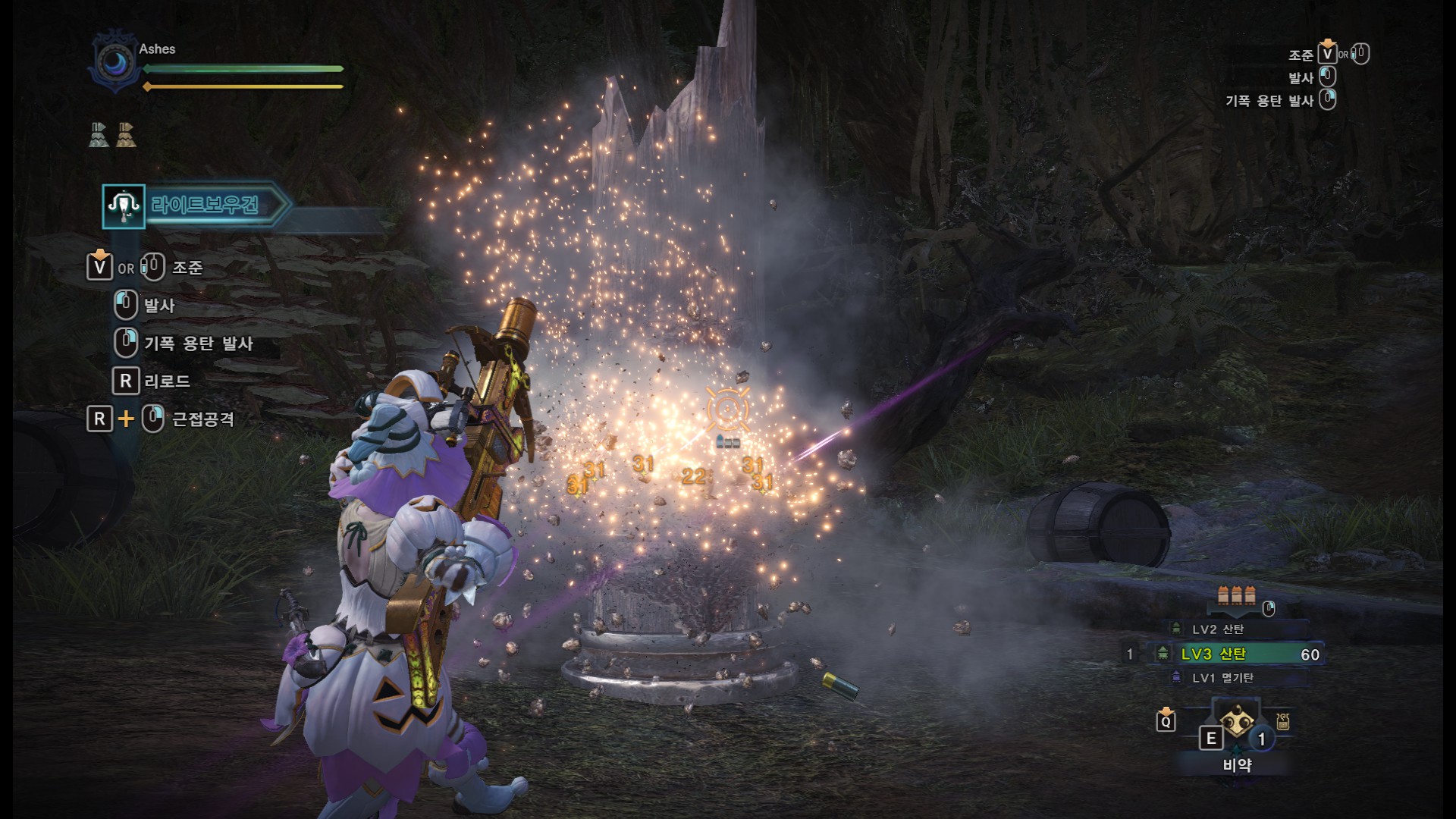 반반근 기준 통나무 딜은 31, 22가 뜹니다. 사격라보는 무빙샷이 불가능.