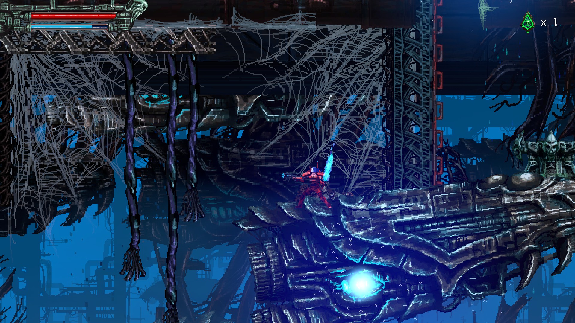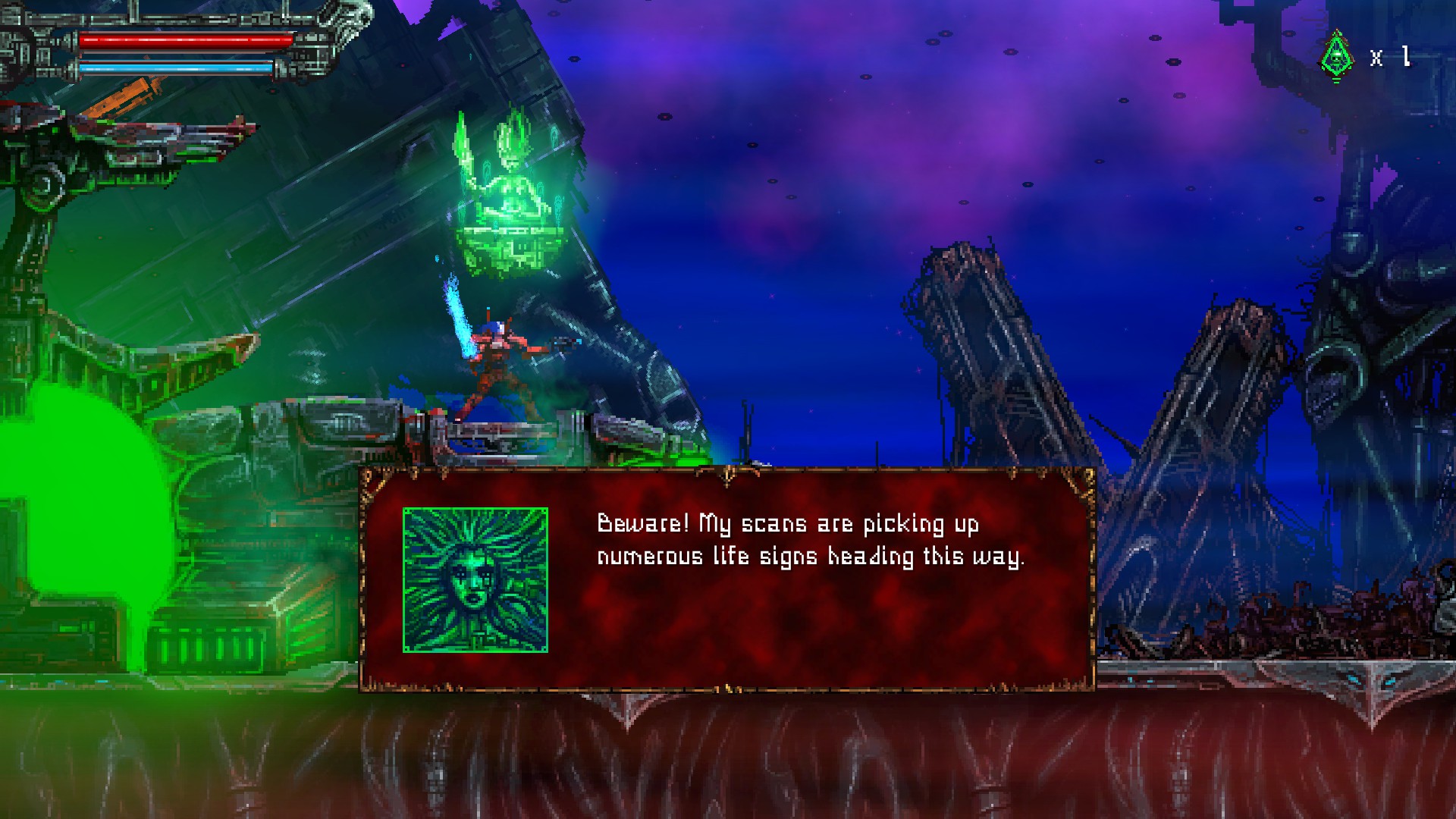 혜자스러운 체크 포인트. 체크포인트에서는 세이브 뿐만 아니라 장비 업그레이드도 할 수 있습니다.