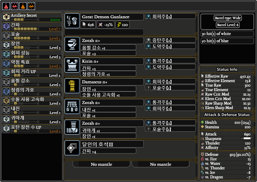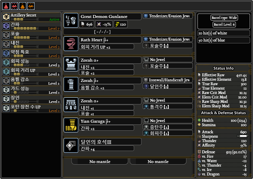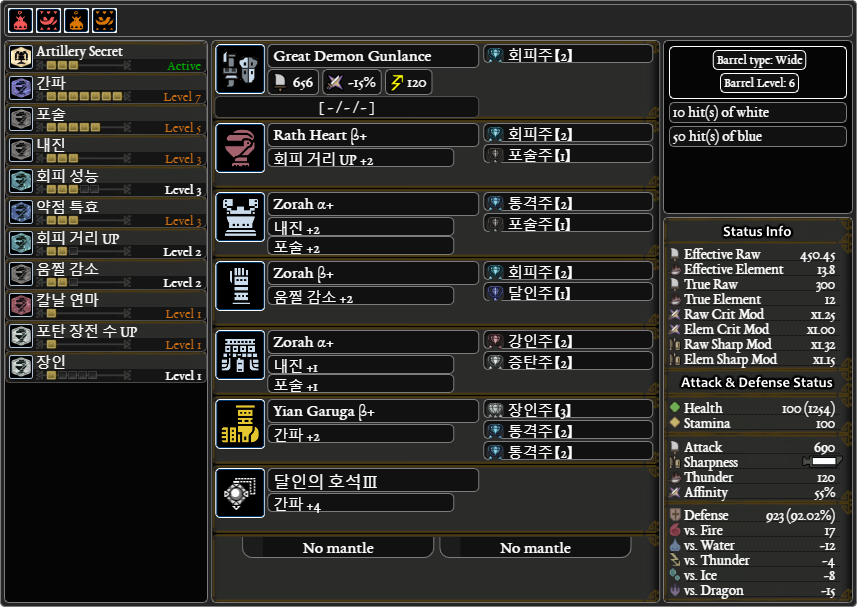 아이스본 건랜스는 조라3셋이 강제되다보니 슬롯에 여유가 없고, 잡스런 스킬이 많이 붙네요. 그나마 도움 될만한 건 숫돌사용 고속화 정도?