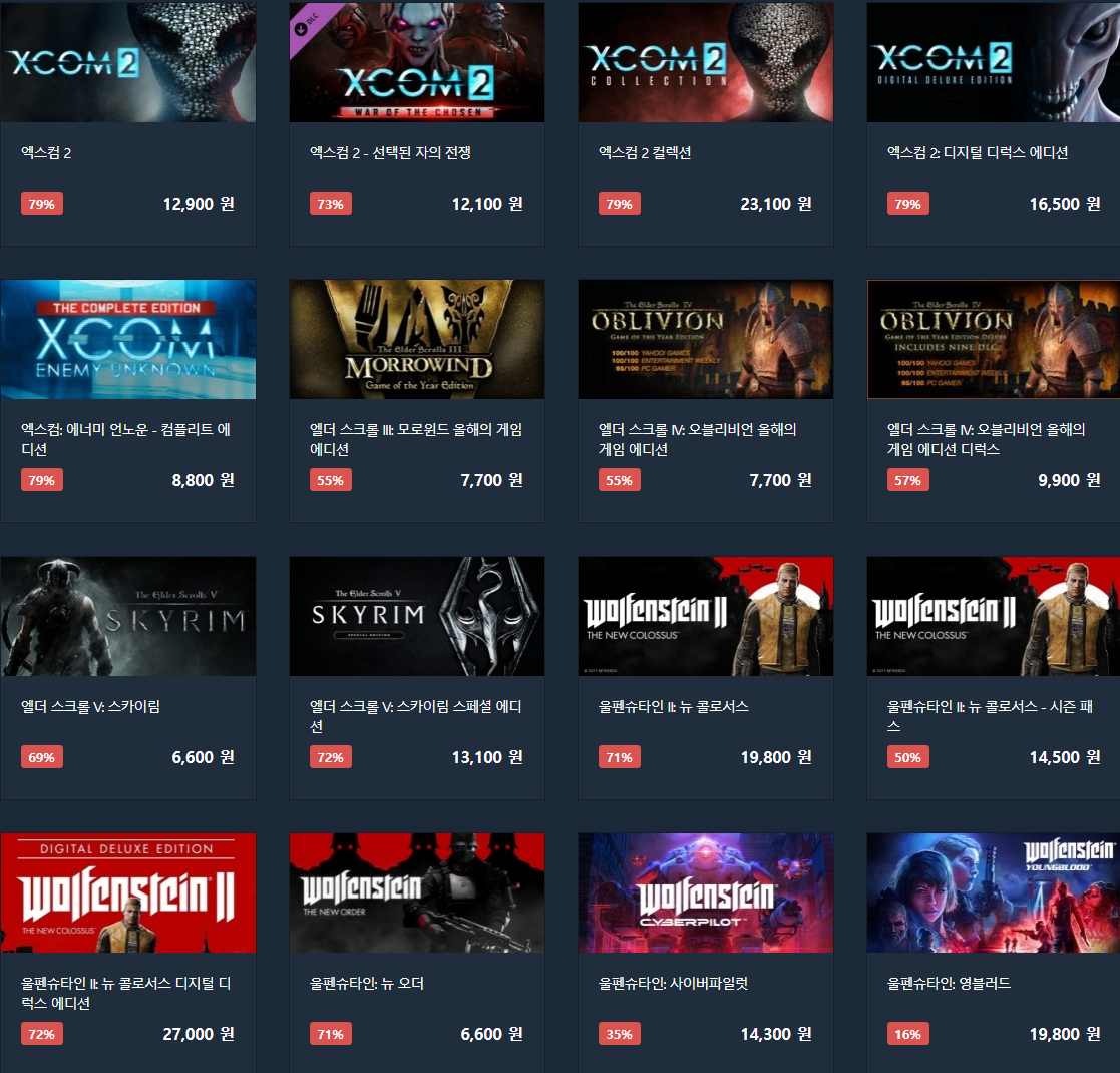 여러가지 게임들을 할인하고 있지만, 할인율이 유의미한 게임이 몇개 있네요.