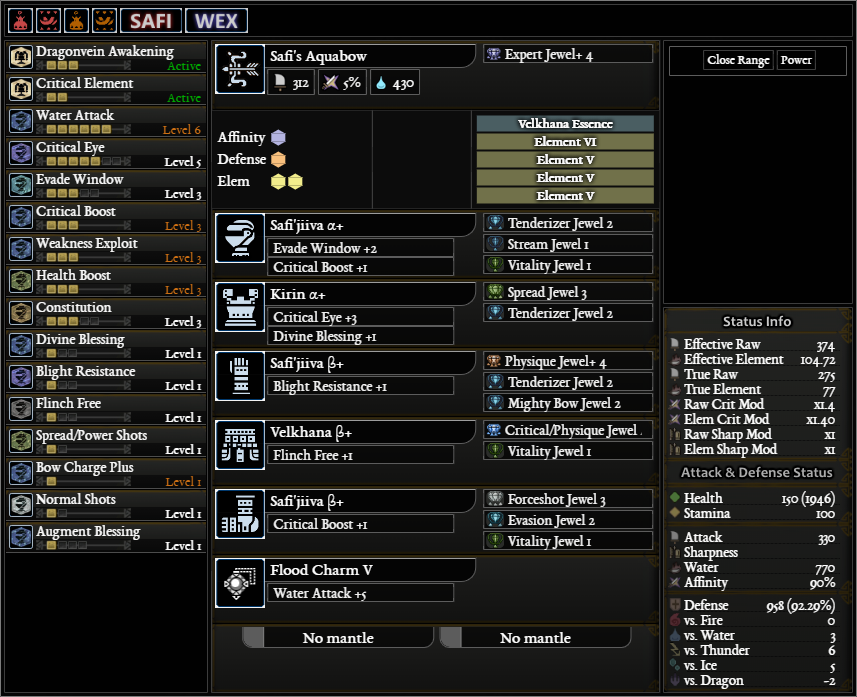 대충 무기는 회심, 속강, 방어 커강, 각성무기 강화??는 벨카나 에센스, 4속강 때리니까 속성수치가 770까지 나옵니다.