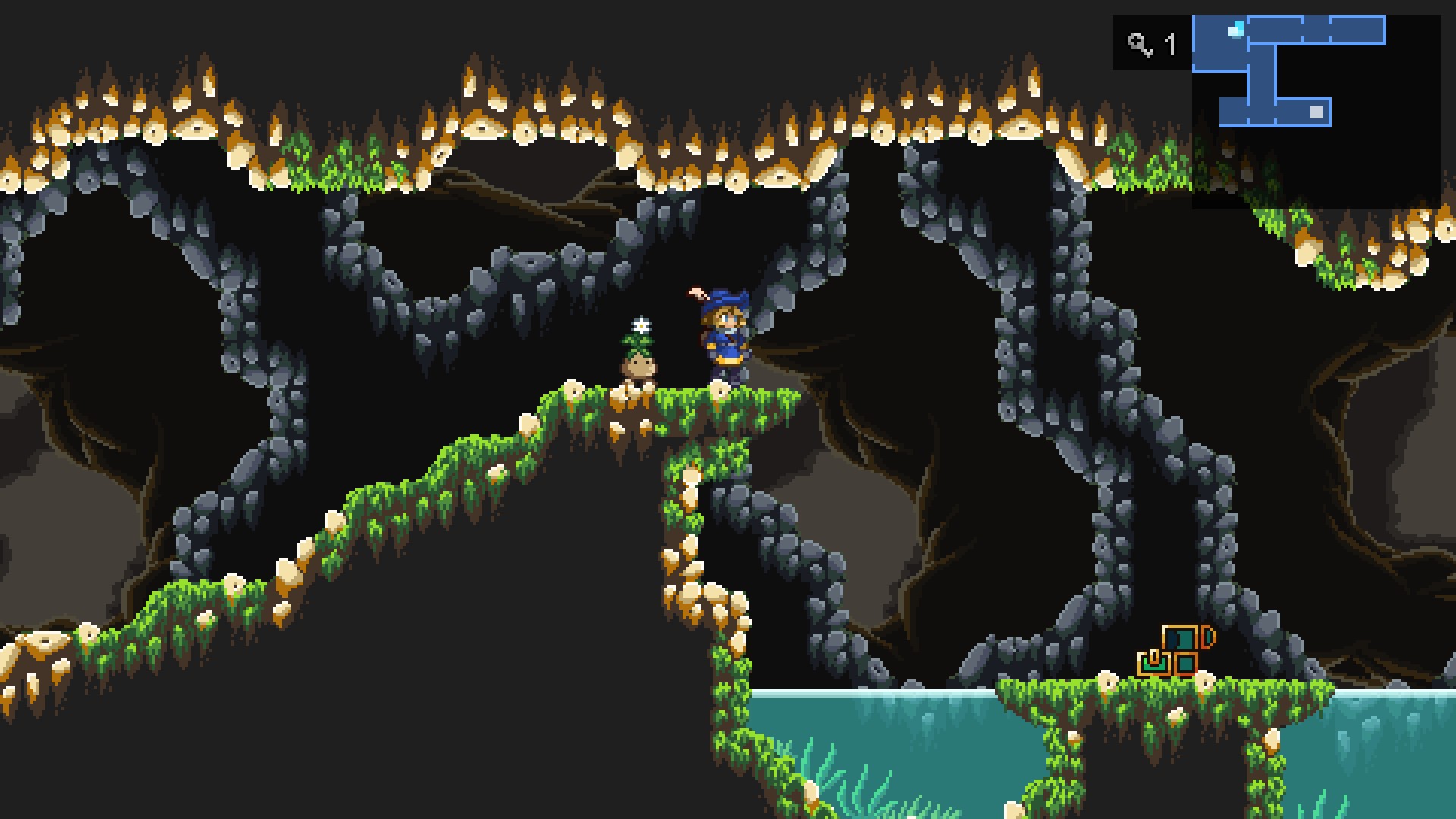 스샷에 보이는 상자에서 드디어 더블 점프를 먹을 수 있었습니다. 더블 점프가 없어서 개답답했는데 역시나 메트로배니아다운 구성..