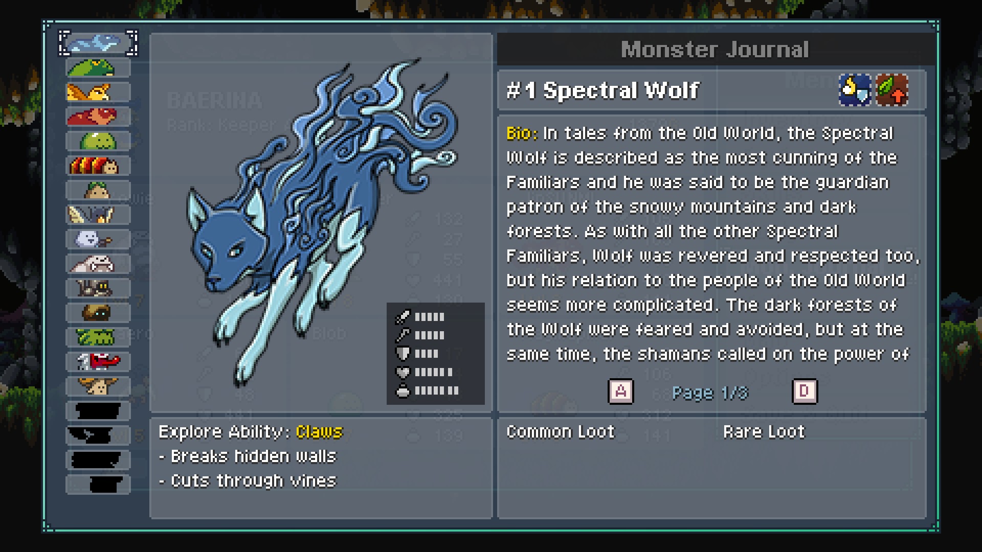 심심해서 저널을 열어봤습니다. 이것저것 몬스터의 생태와 도트로 만든 일러스트가 눈에 띄네요. 저해상도에서 제작한 후에 확대한 것 같은 비쥬얼입니다. 무자식들 세밀하게 좀 찍을 것이지.