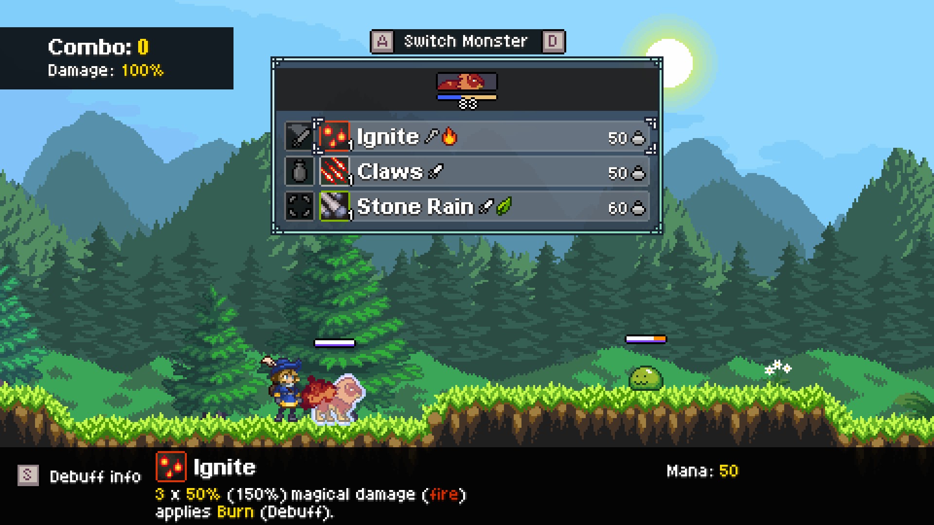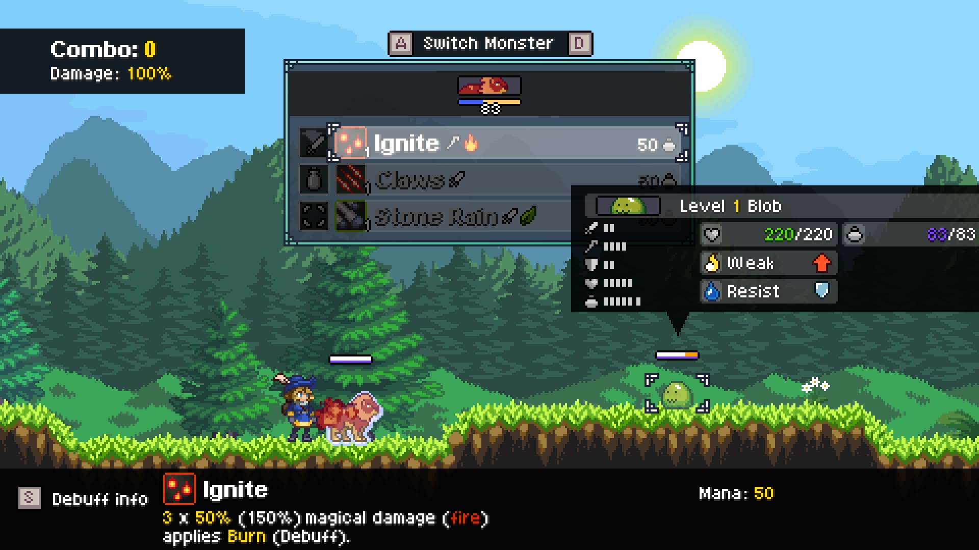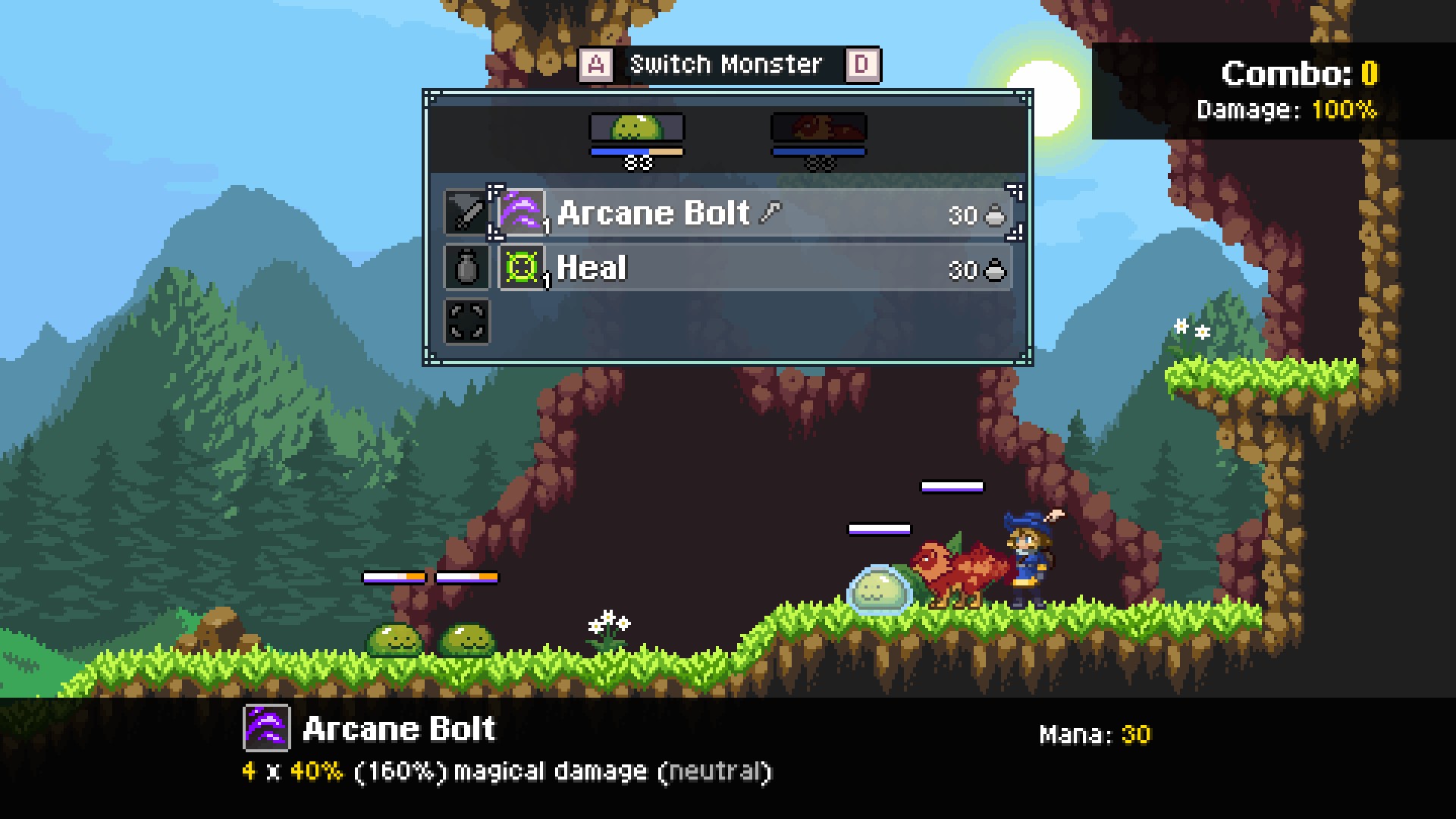 몬스터 생추어리는 몬스터 배틀을 근간으로 매트로배니아 요소를 섞은 게임이라고 보시면 됩니다.