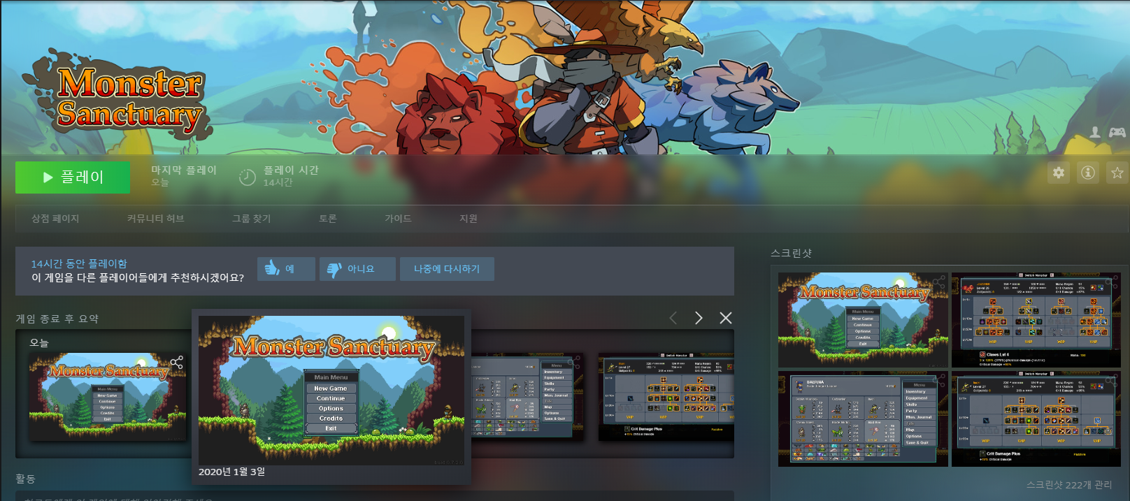 몬스터 생츄어리(이하 몬생)는 몬스터 키퍼가 되어서, 자신의 파트너와 함께 성장해나가는 게임입니다. 어째선지 포켓몬스터의 오마쥬 느낌이 나죠? 설명을 들어보면 십중팔구 포켓몬스터를 떠올릴겁니다. 허나 몬생은 포켓몬에 메트로배니아 요소를 결합시켰습니다. 플레이어는 아기자기한 2d그래픽의 필드를 탐험하며, 새로운 지역, 새로운 몬스터들을 발견하고, 나아가서는 최강의 몬스터 키퍼가 되어야 합니다. 그러기 위해서는 중간 중간에 몬스터들을 강화하고, 챌린지 퀘스트도 깨고, 장비도 장만해야 하지요.