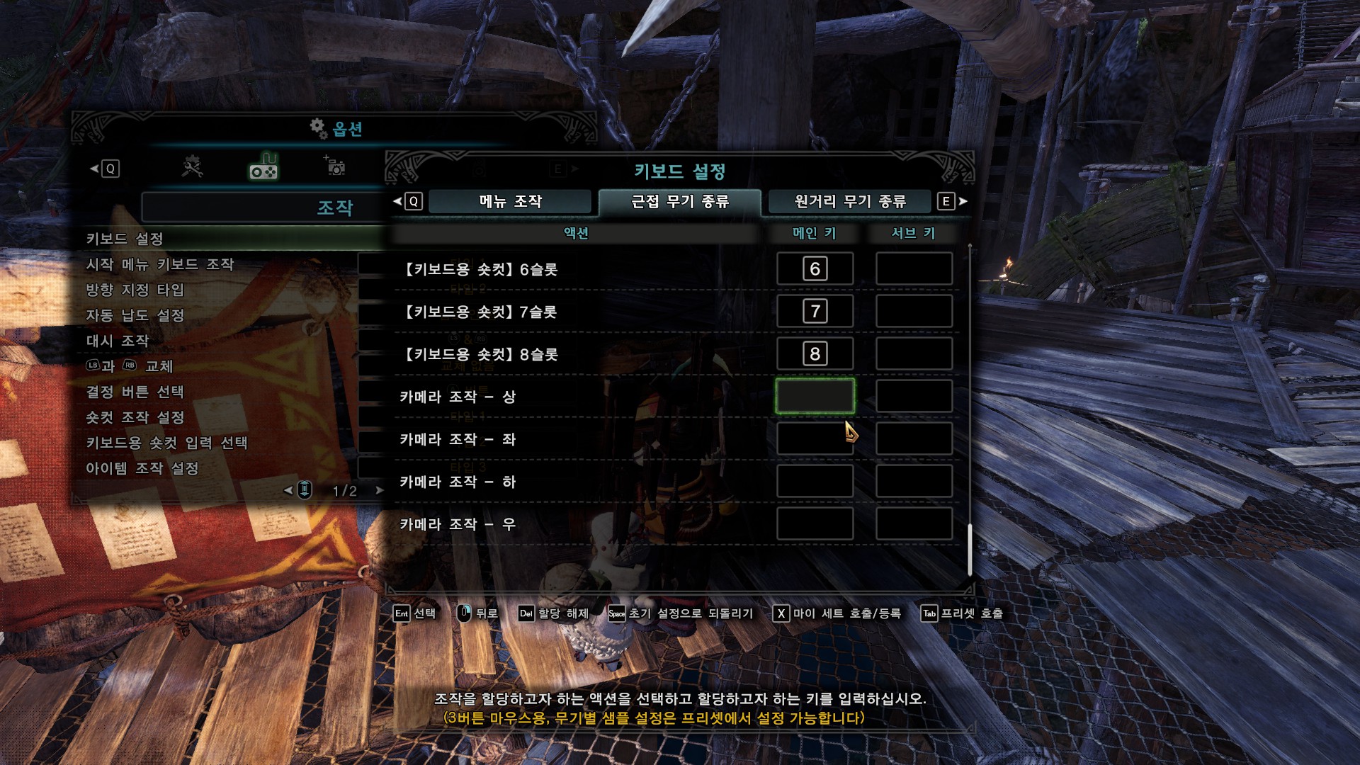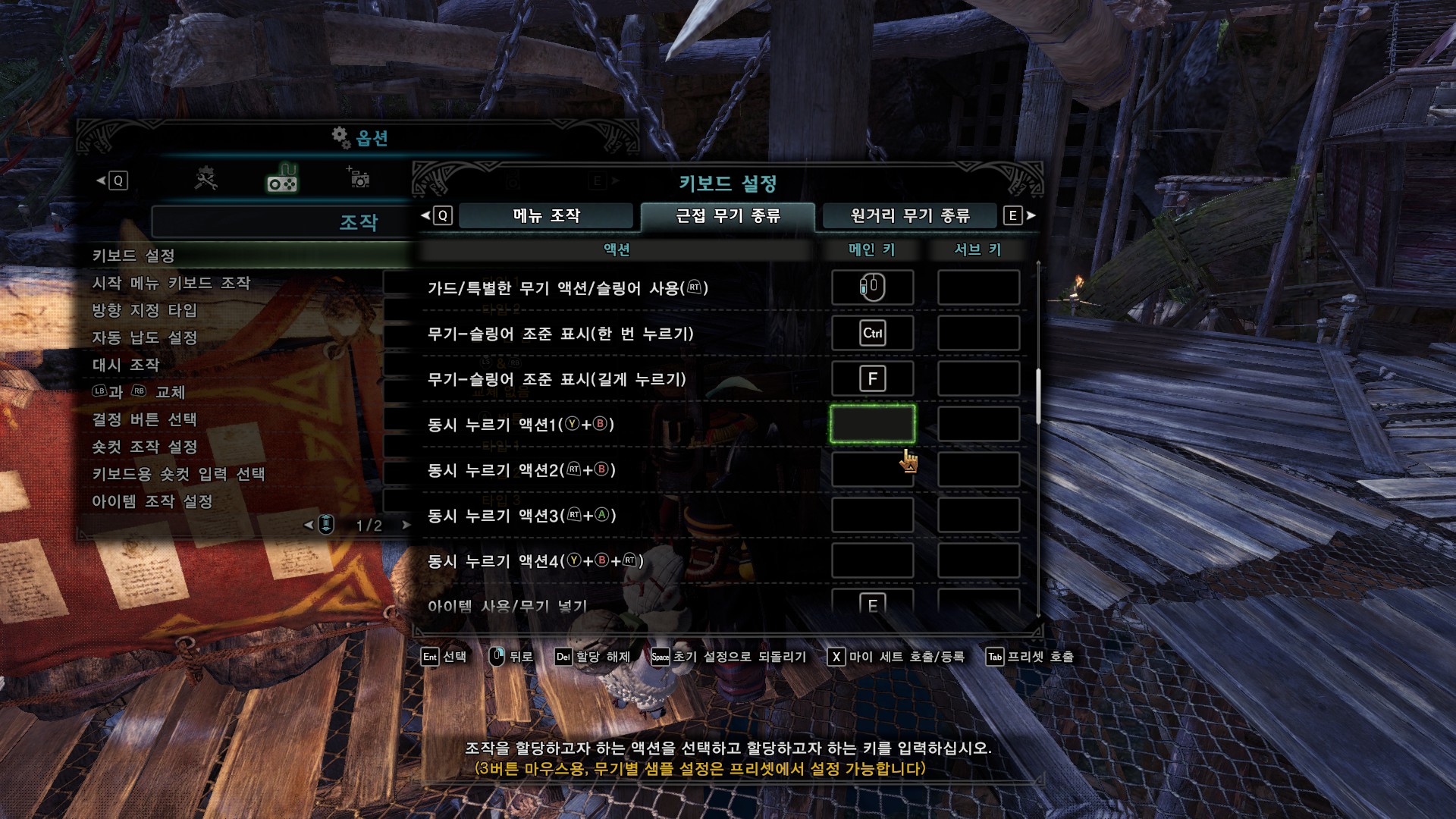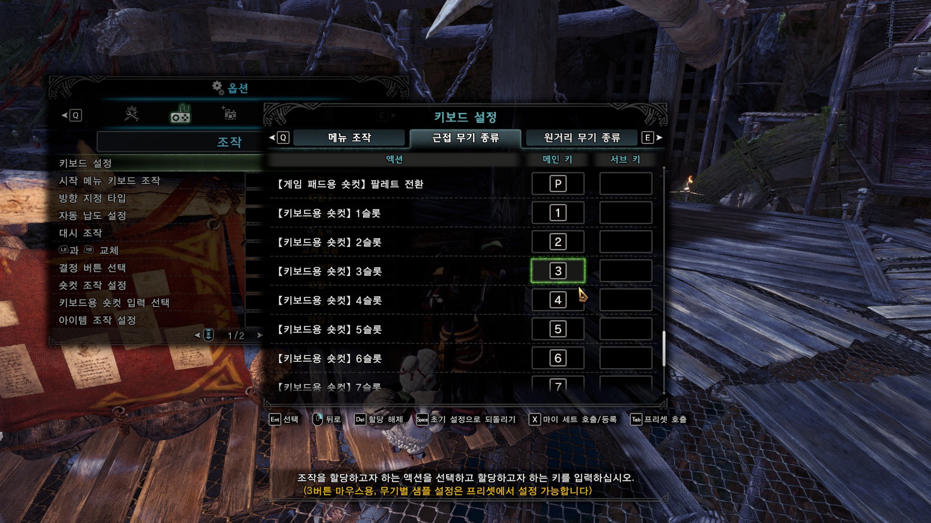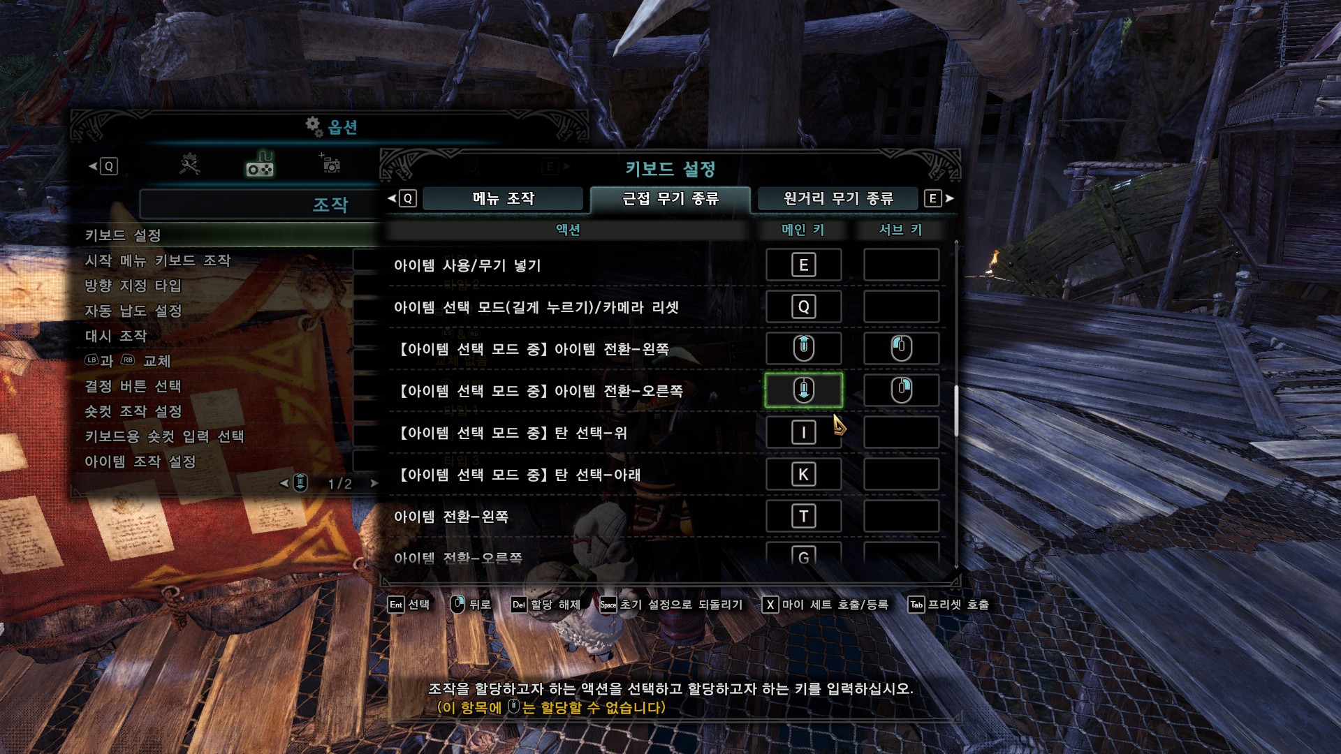 가장 중요한 건 숏컷 조작, 키보드용 숏컷 입력 선택, 아이템 조작 설정입니다.