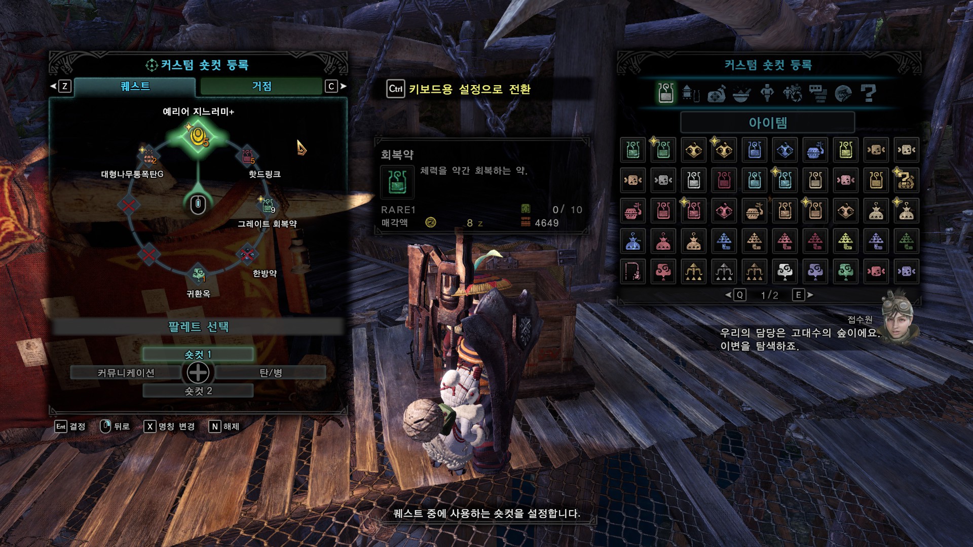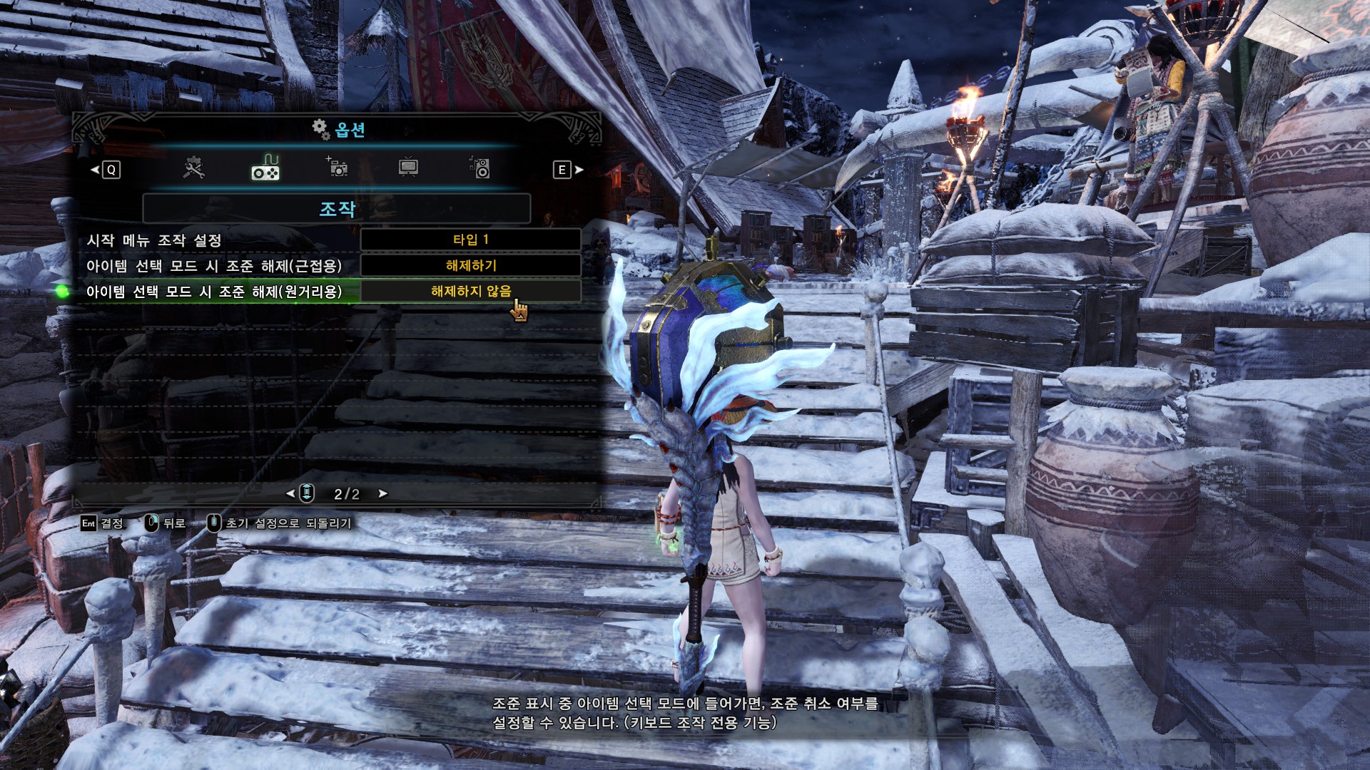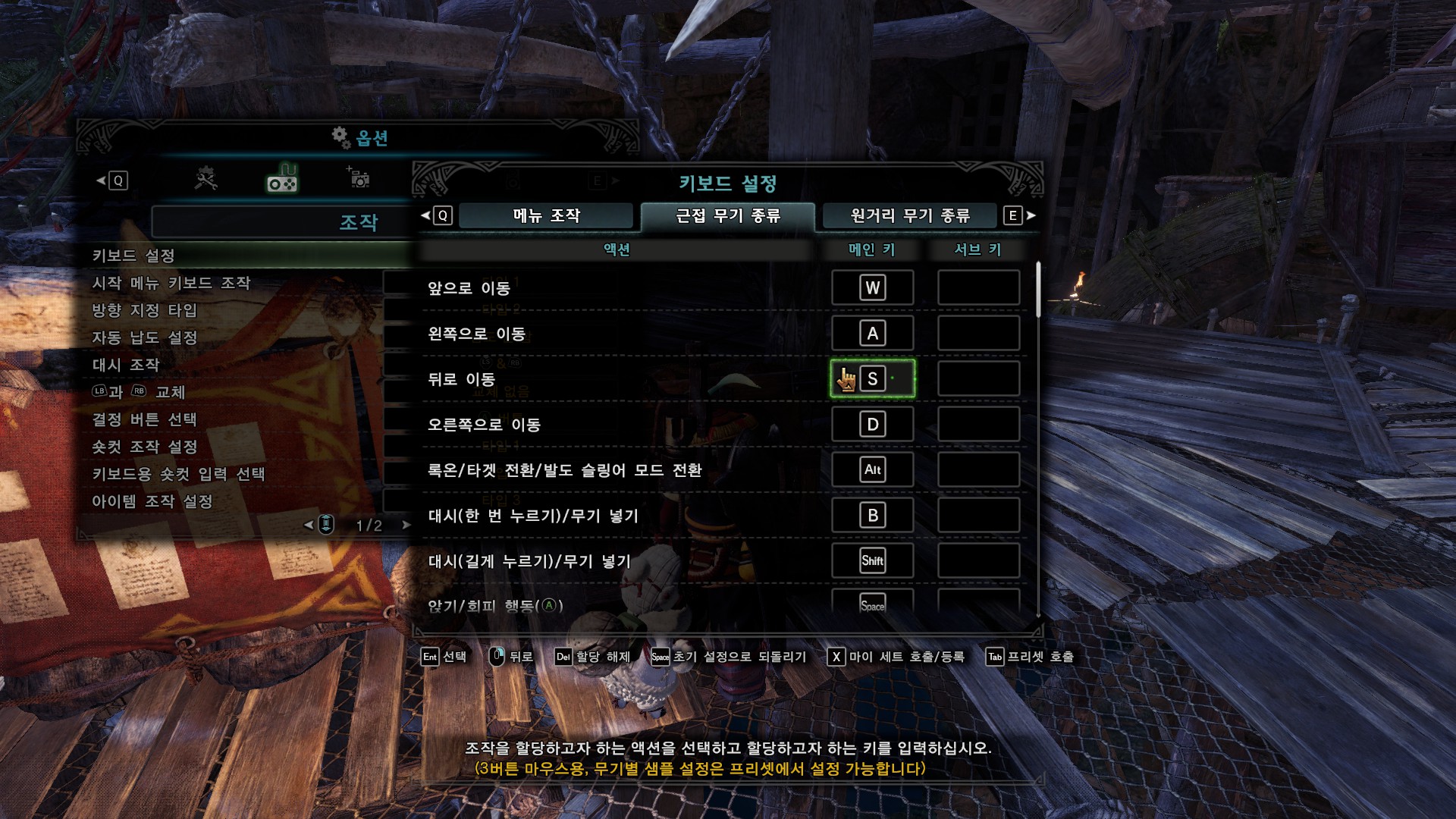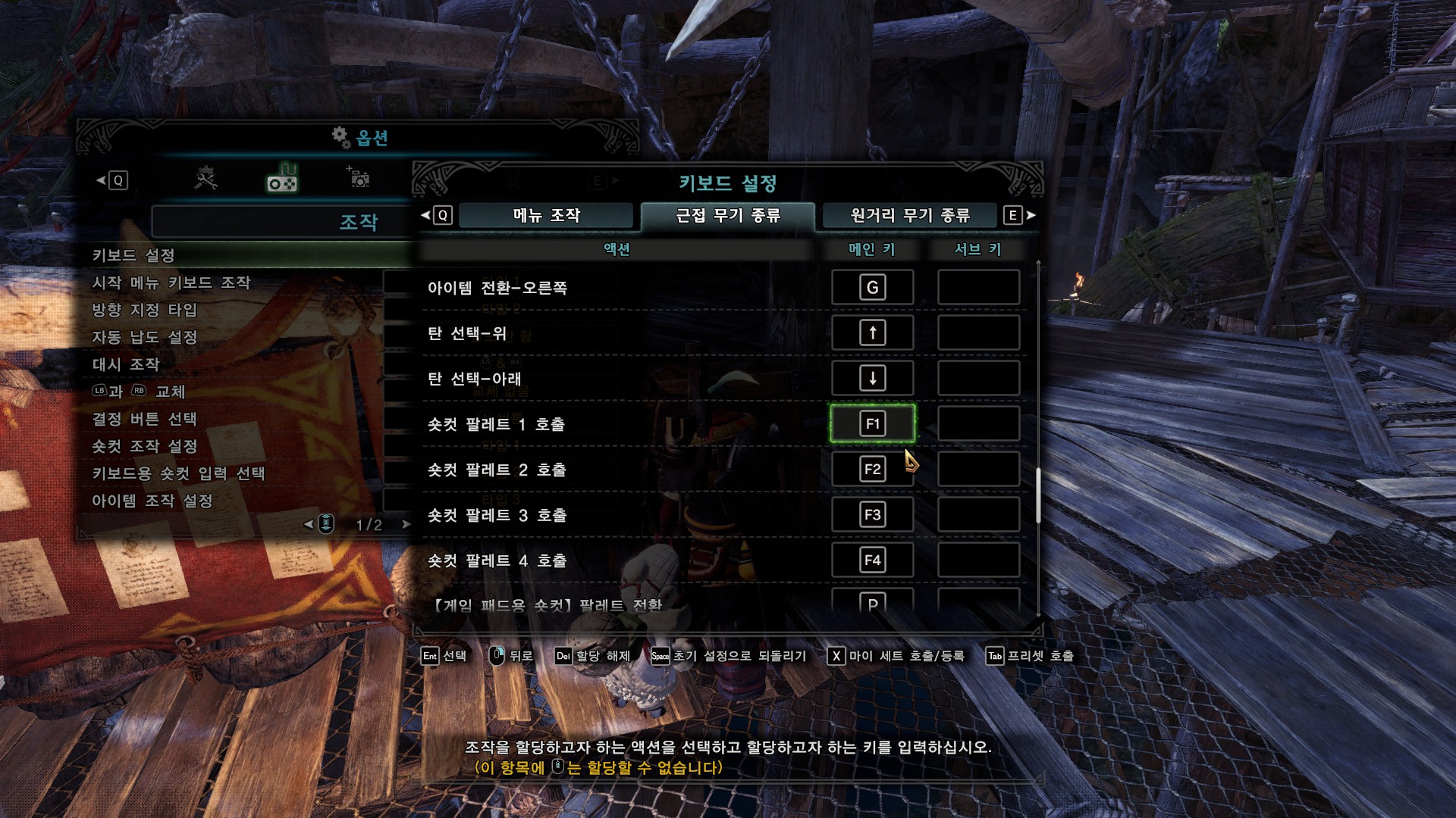 가장 중요한 건 숏컷 조작, 키보드용 숏컷 입력 선택, 아이템 조작 설정입니다.