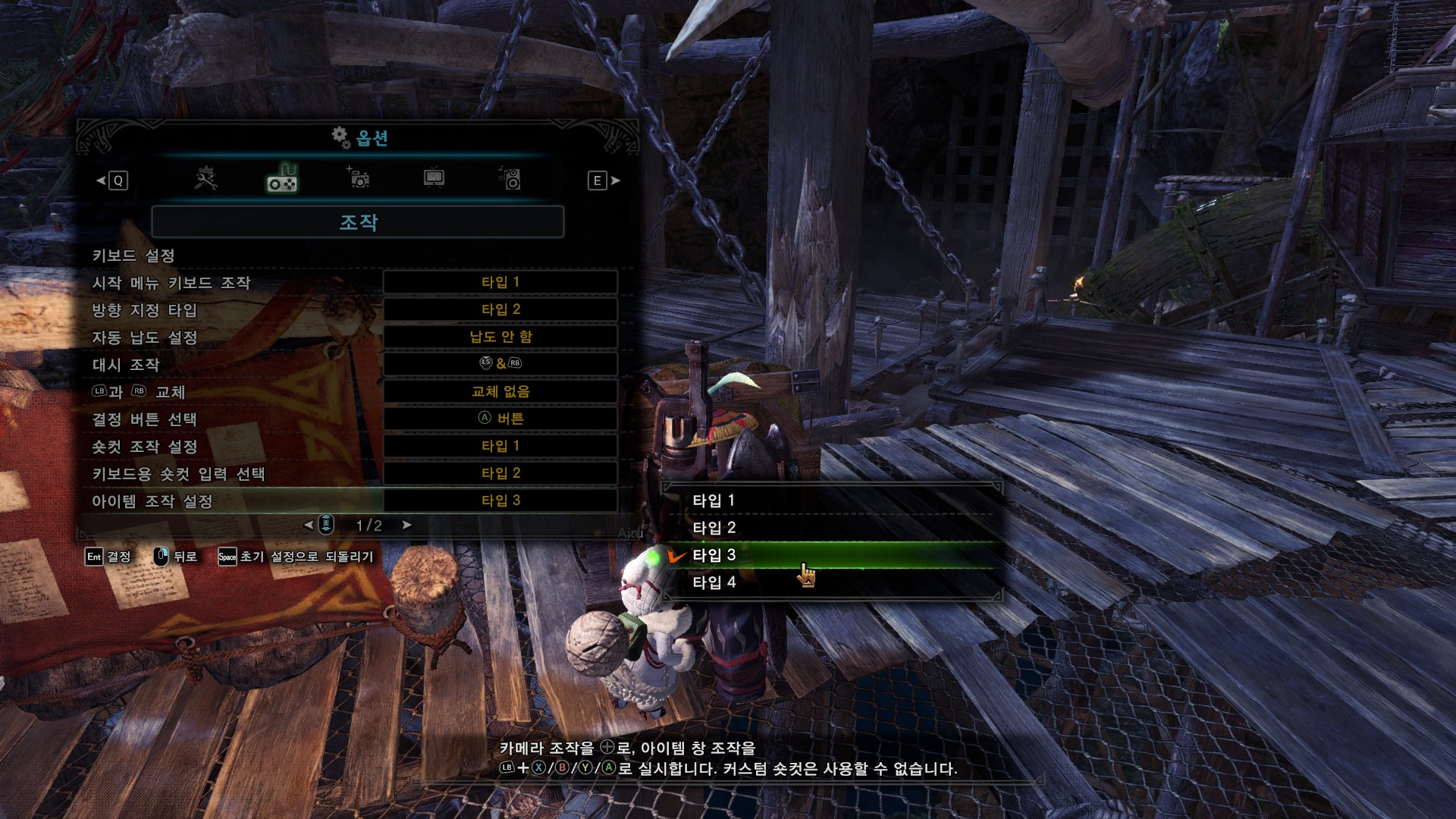 다행히 타입3으로 바꾸면 종전 월드와 같은 컨트롤이 가능해집니다. 설명은...? 무자식들이 카메라 조작을 엑박 패드 기준으로 써놨네요.(라잔 업데이트때 수정됨)