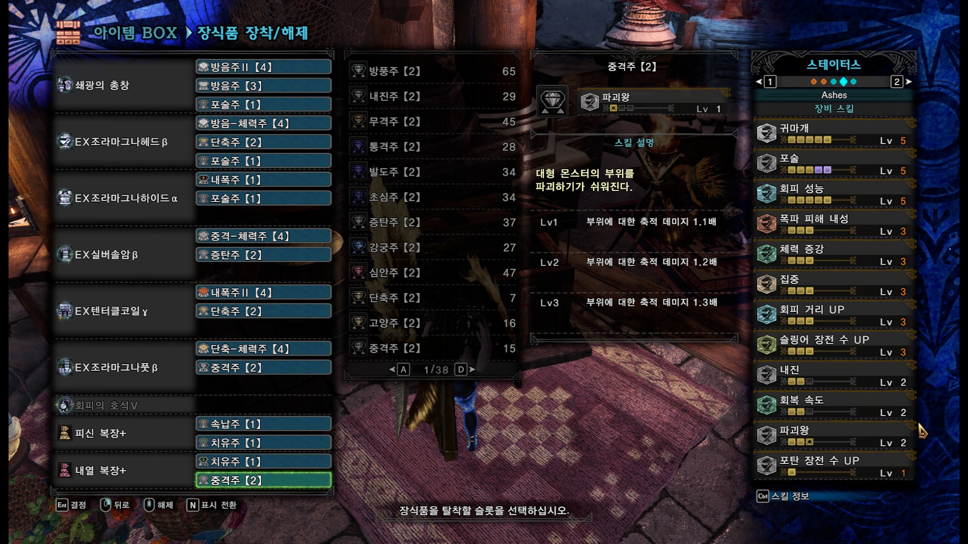 2슬롯 남는건 몬스터에 따라서 심안주, 강벽주 등을 바꿔서 들고 가시면 됩니다.