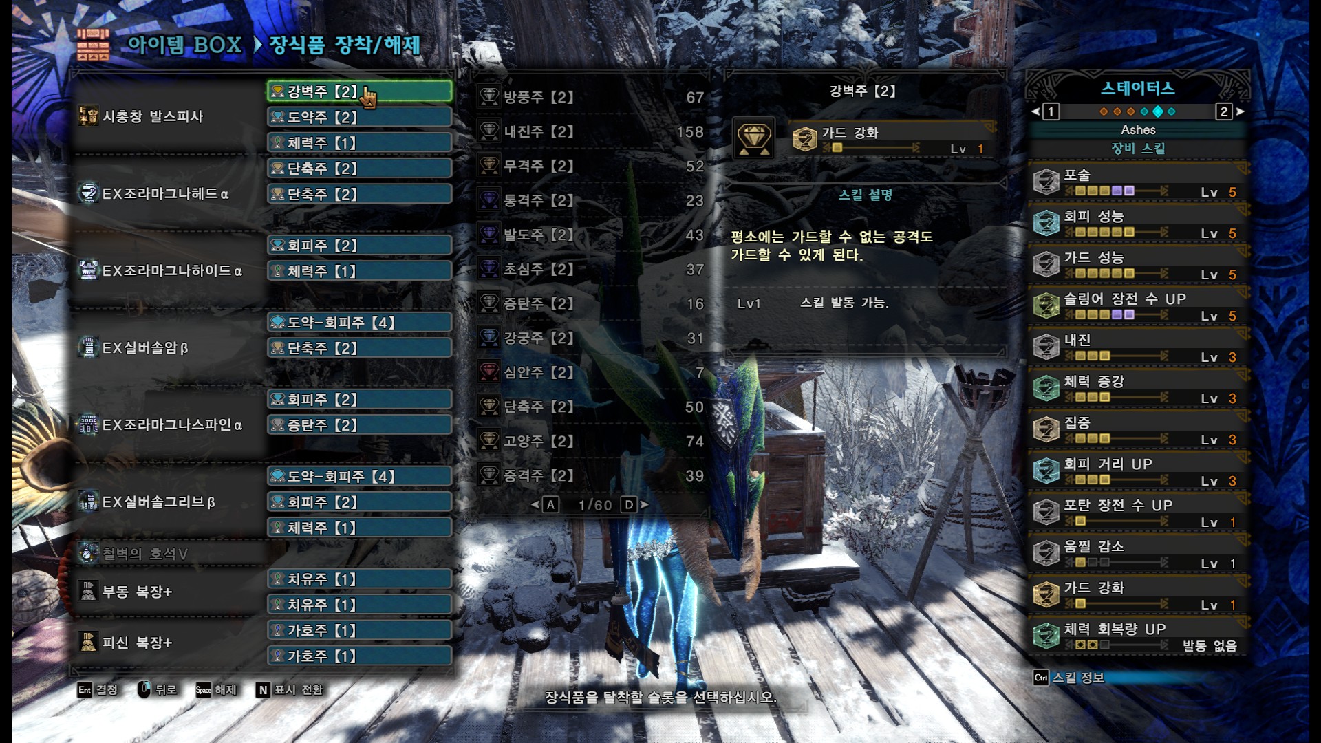 아이스본에 와서 월드에서 잘안뜨던 장식주가 비교적 잘뜨기 때문에 장식주 난이도가 상대적으로 낮습니다. 포술II 장식주도 은근히 잘뜹니다. 문제는 역시나 철벽의 호석V. 독기지대...독기지대를 조심하십시오.