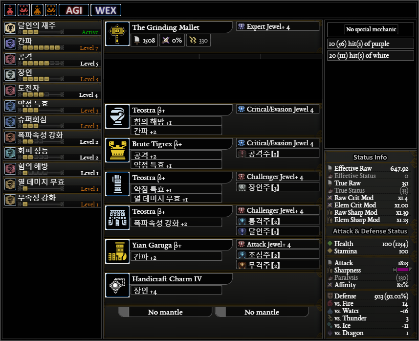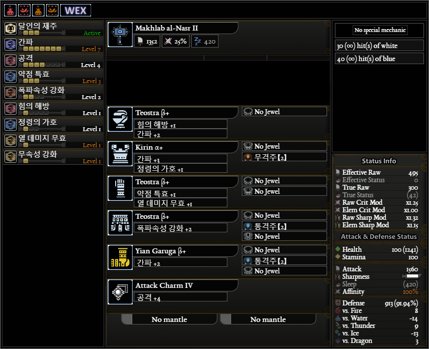 며칠전에 유참퇴보다 완충 넬기 해머가 표기공격력이 더 쎄다고 했었는데, 활 커스텀을 짜다보니 아무래도 시뮬레이터 오류 같습니다. 실전데미지는 유참퇴가 더 높을 것 같네요.
