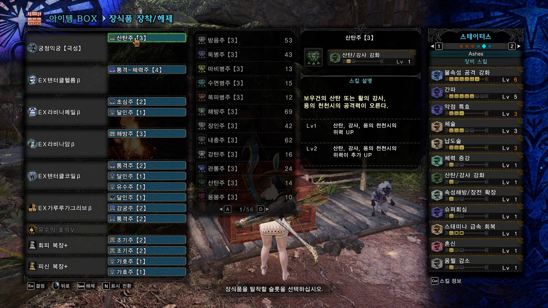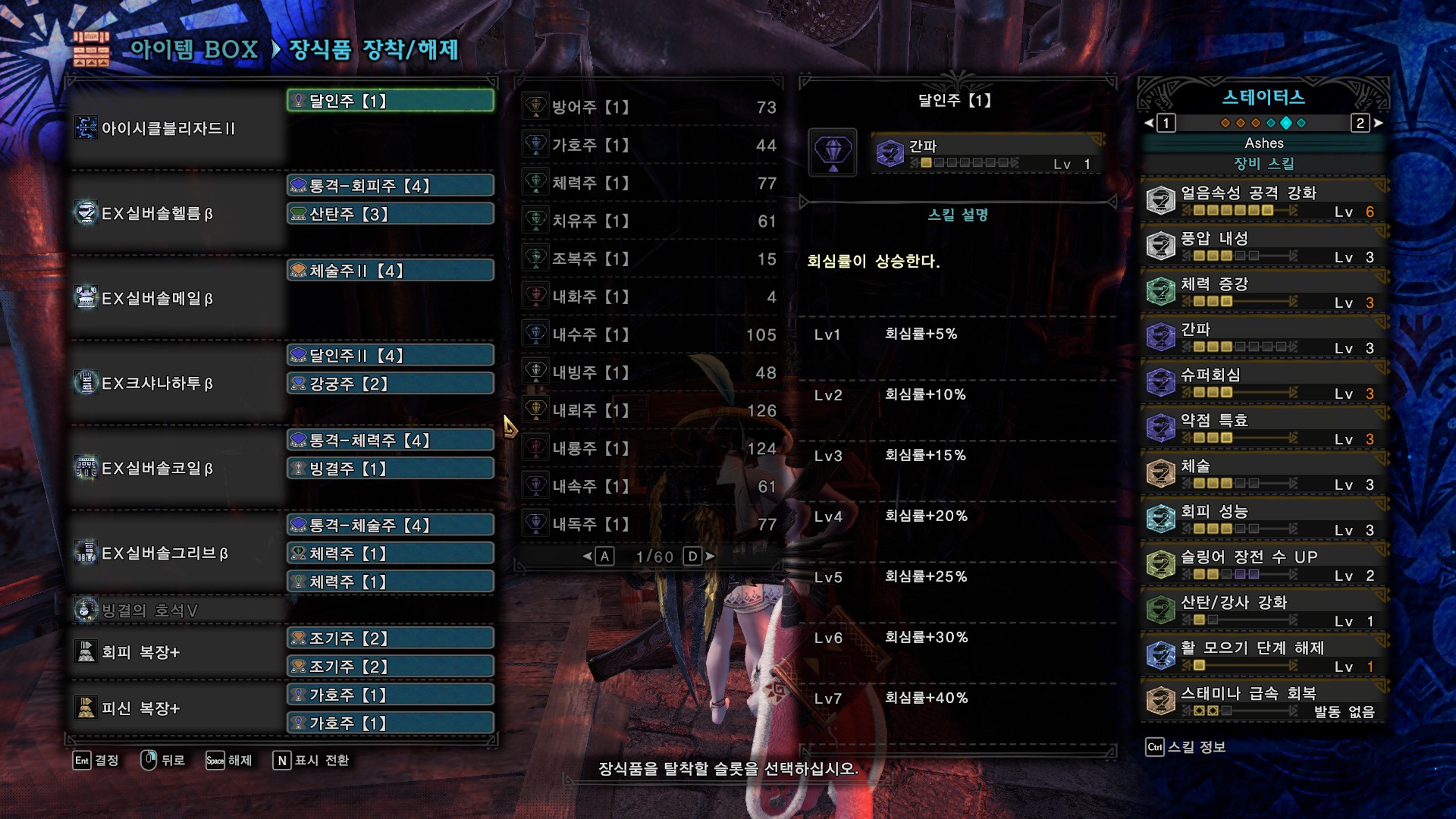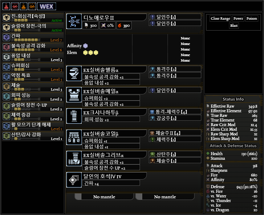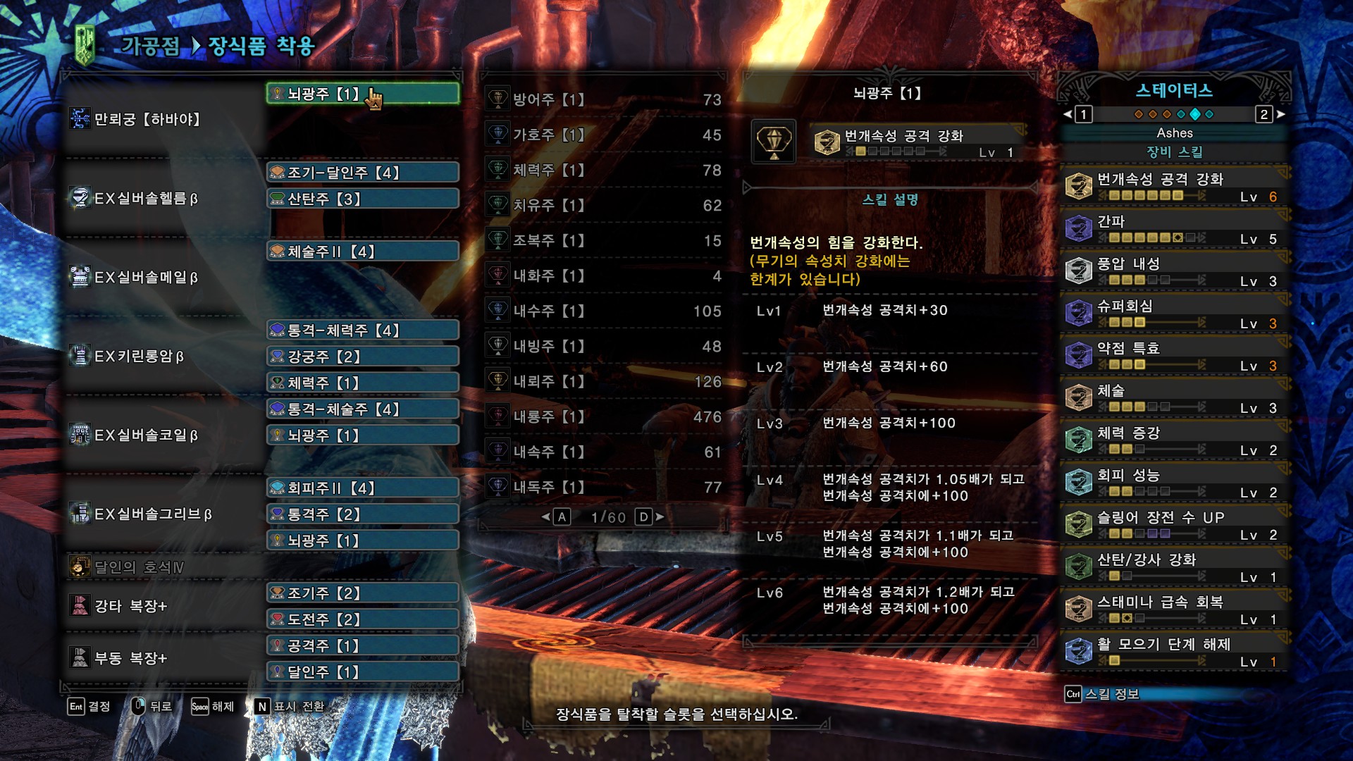 커스텀 강화 : 회심 1, 나머지 전부 속성상태이상 강화